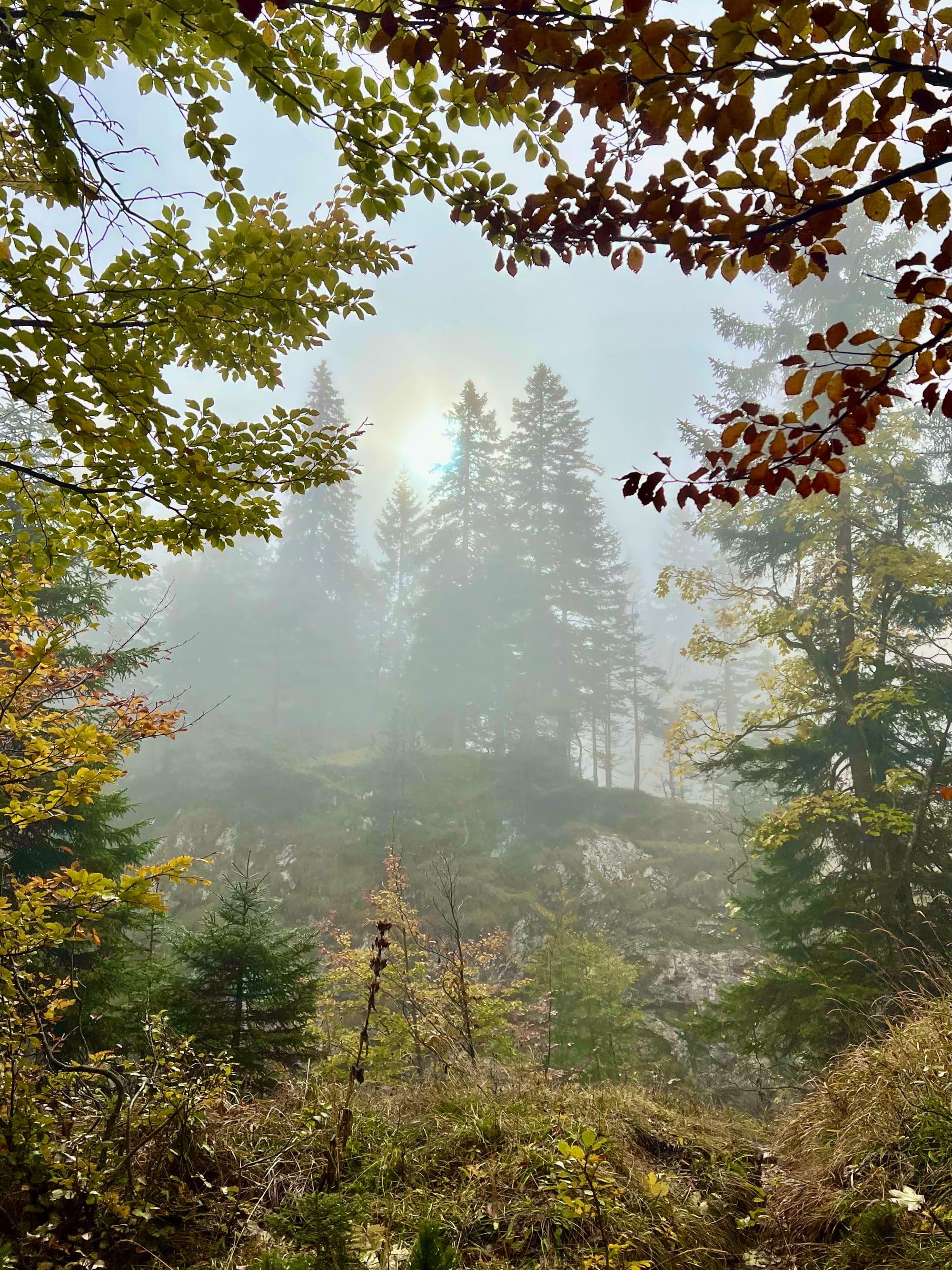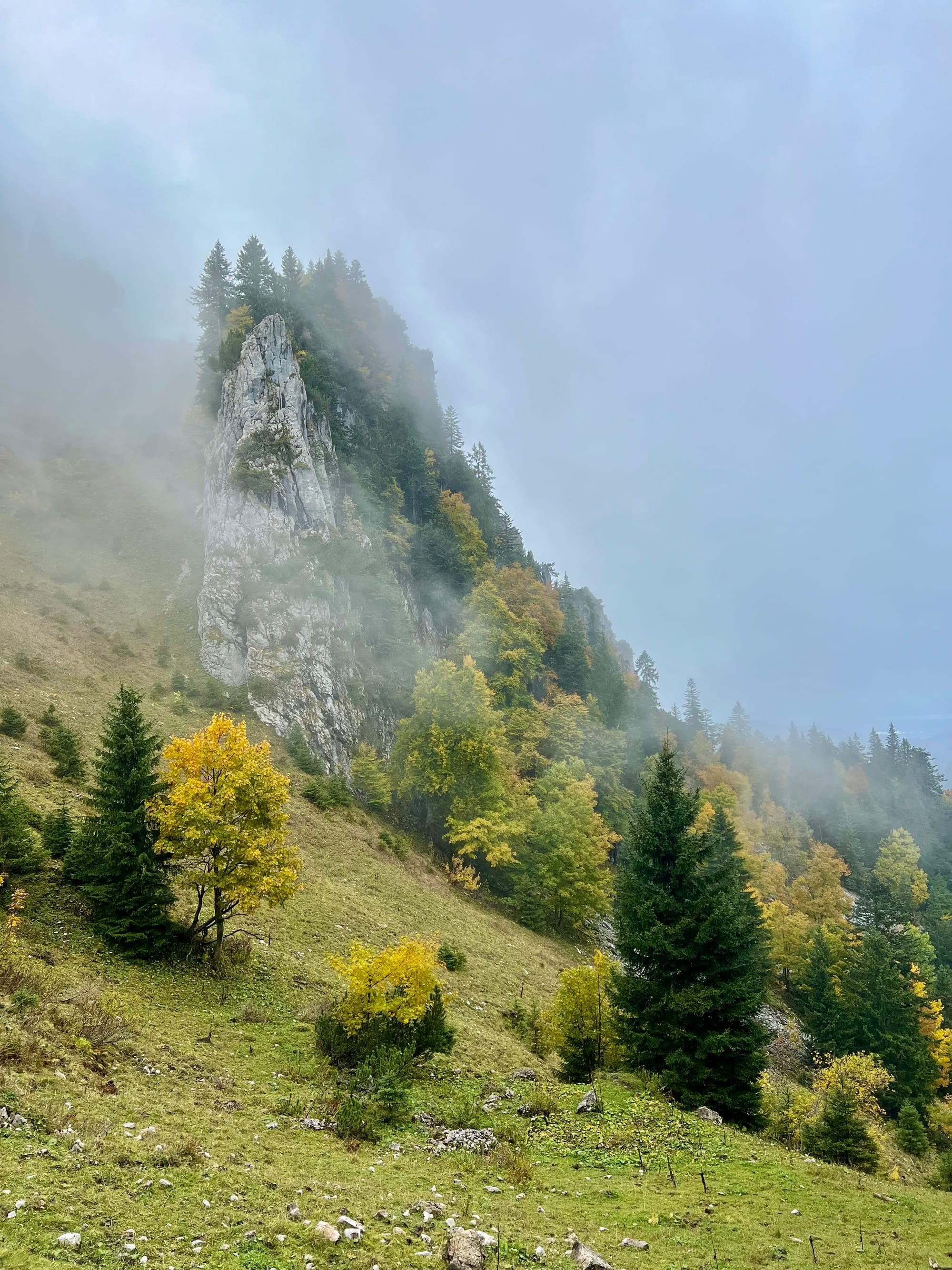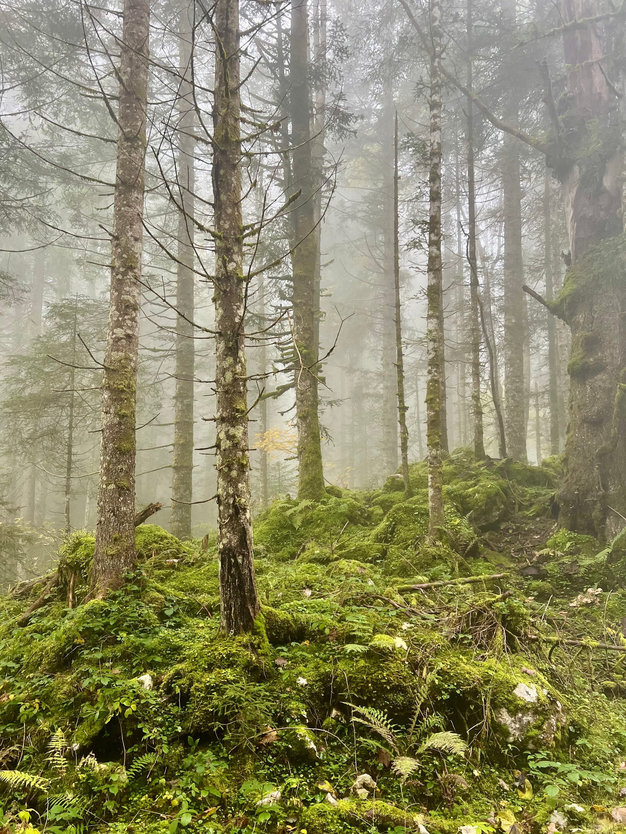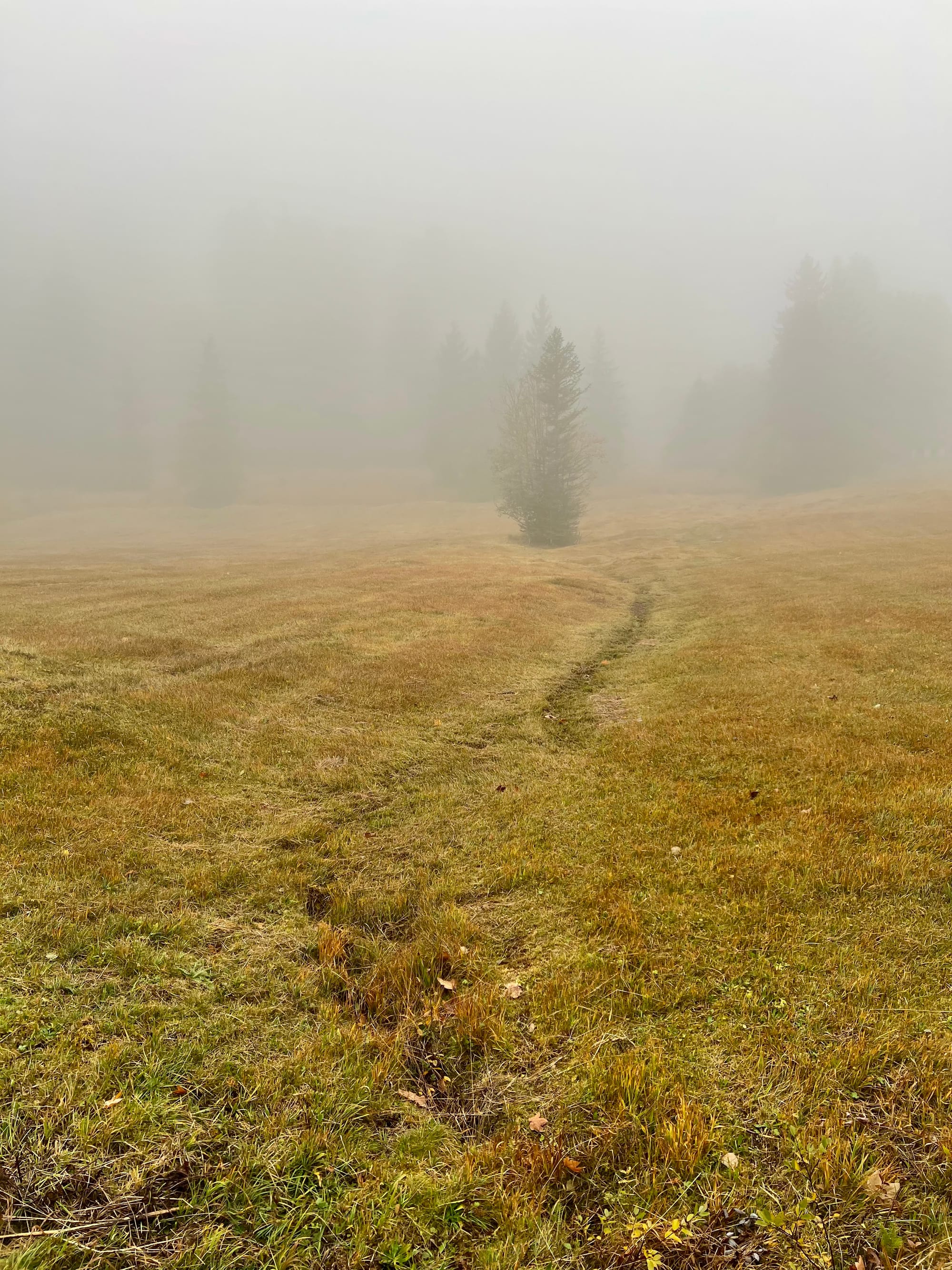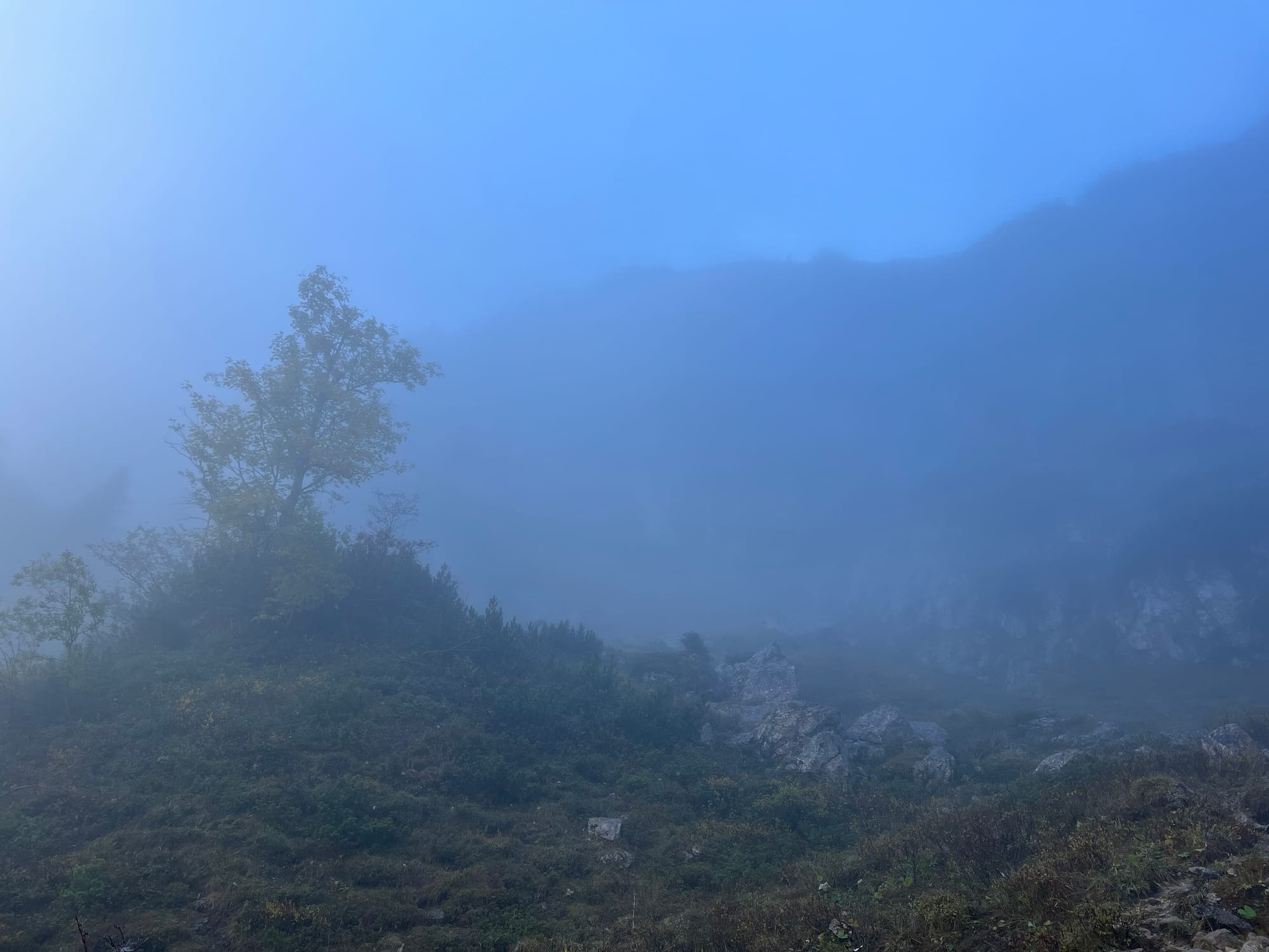 Wstałam, pojechałam, a im bliżej gór byłam, to tym większa mgła i jakieś chmury. Ale nic, zaczęłam iść dolina, słuchałam audiobooka, wszystko super, ładny las. Ale im wyżej wchodziłam, tym więcej się tej mgły robiło.
