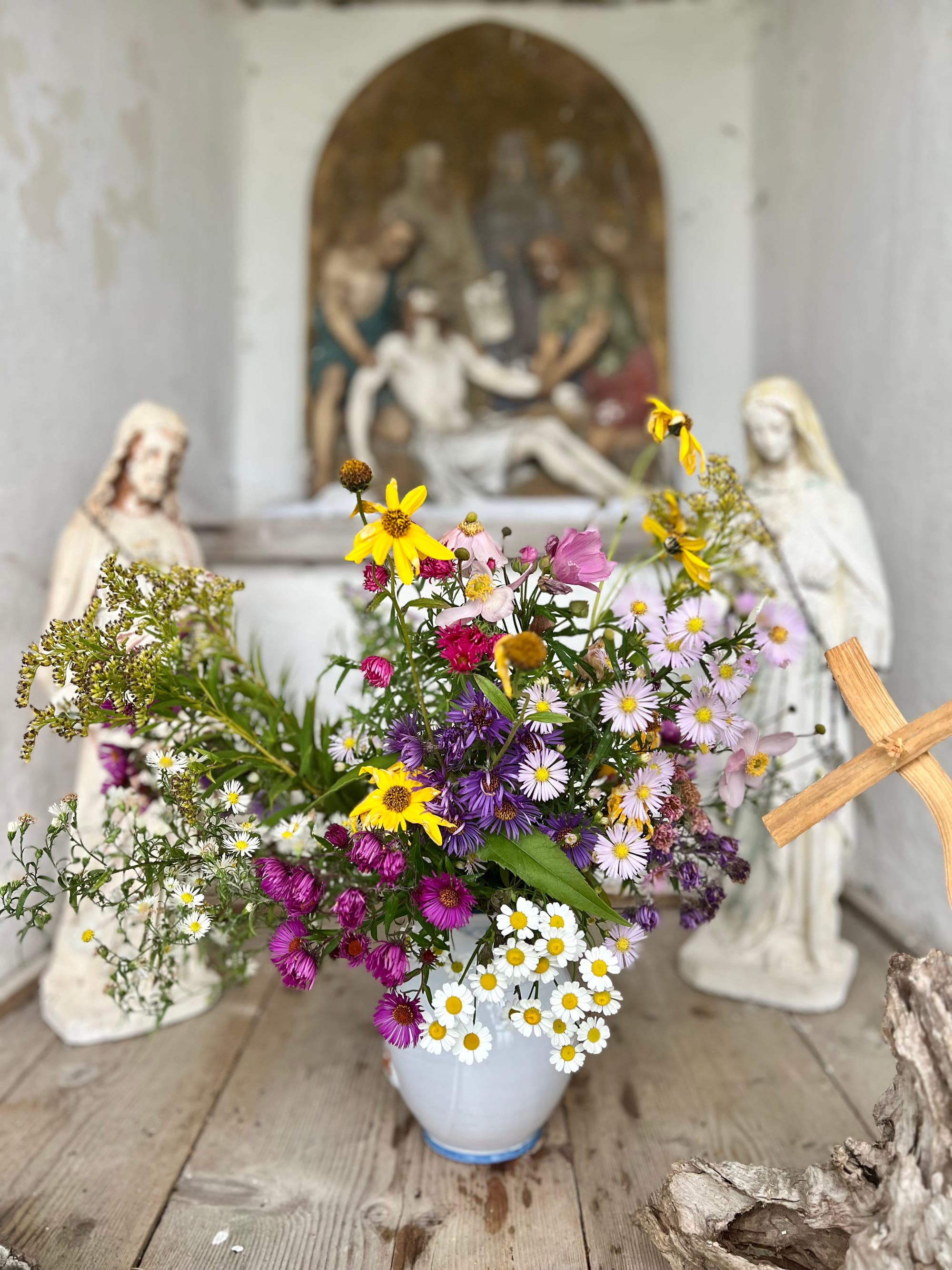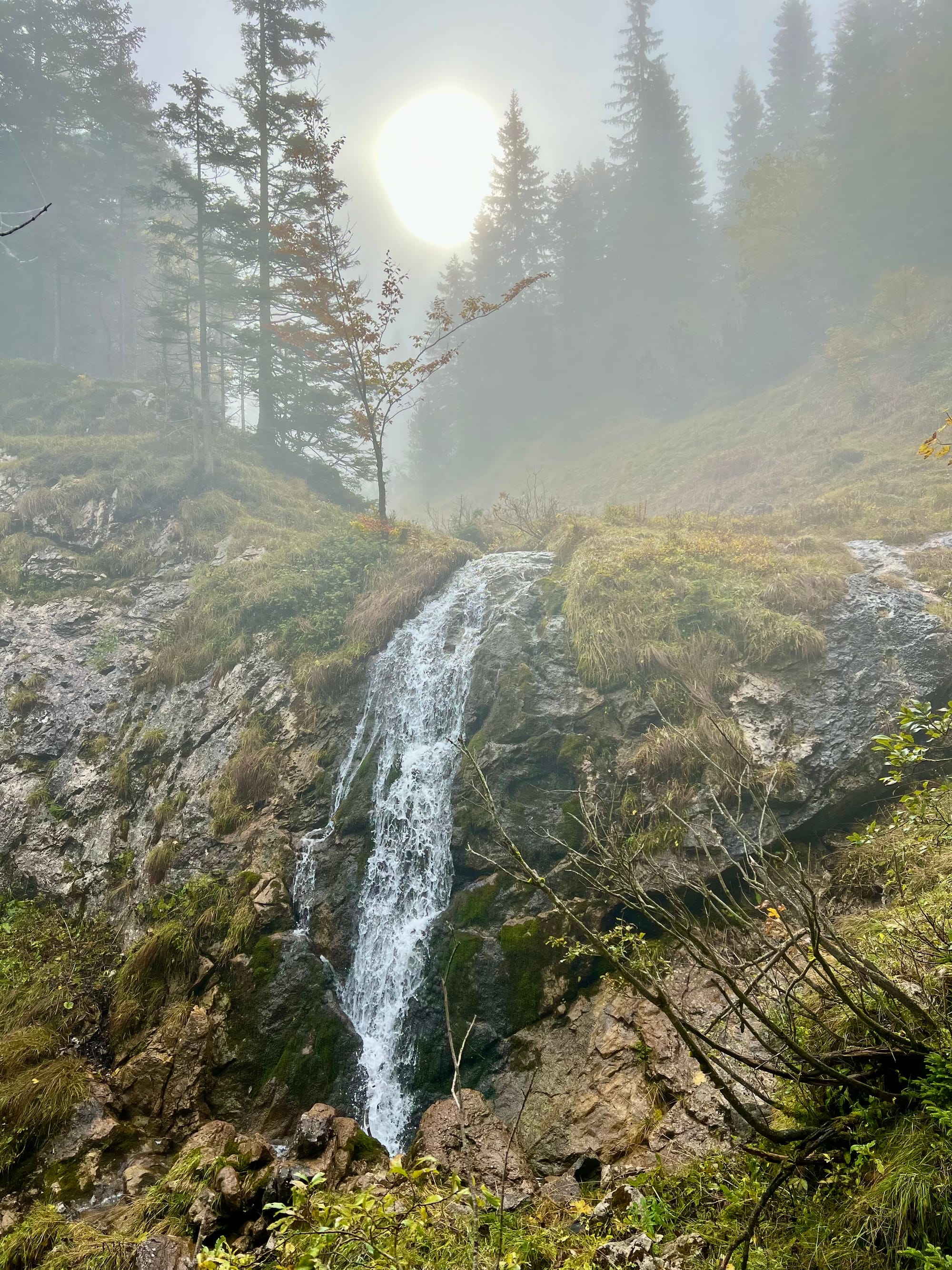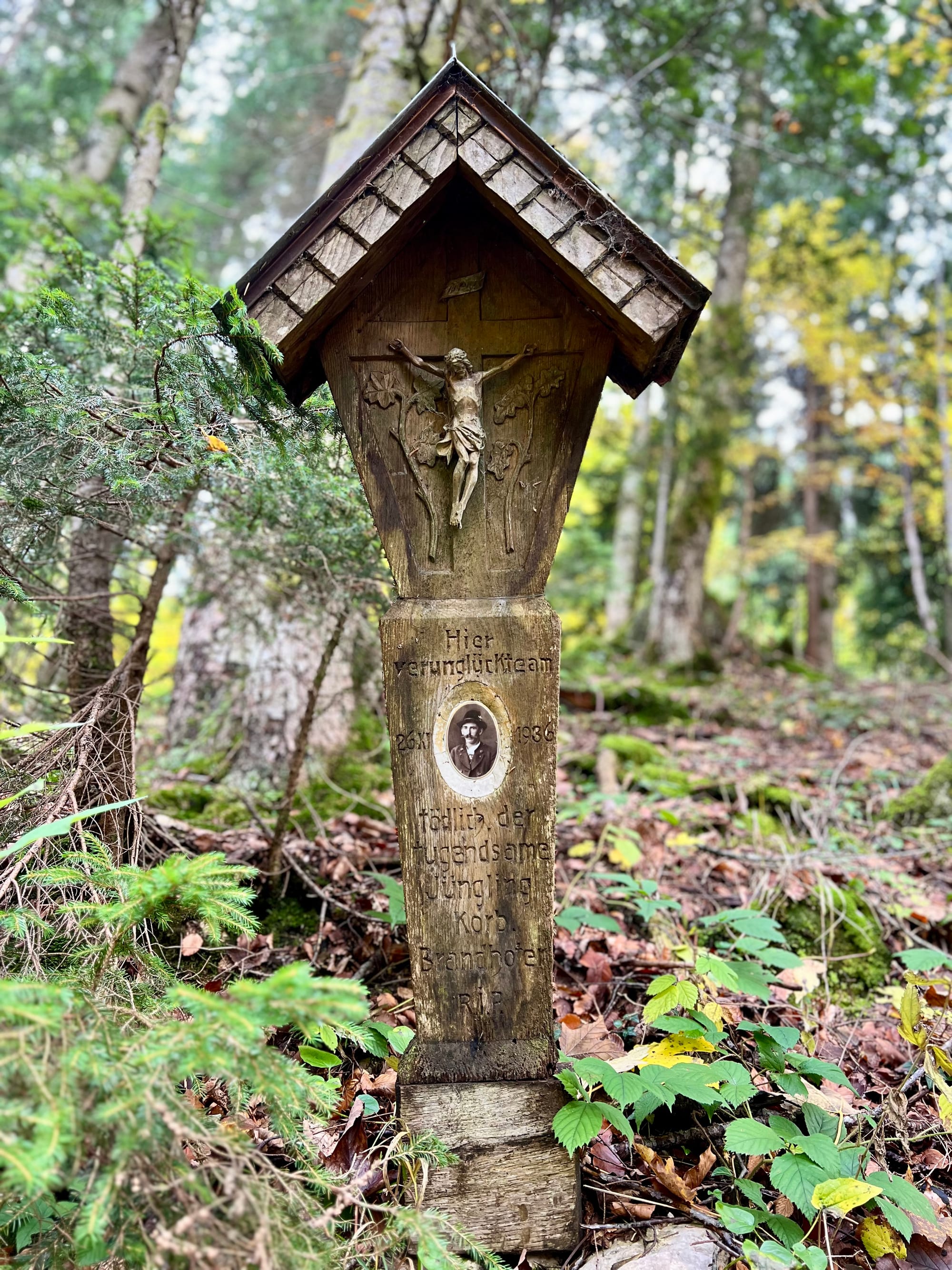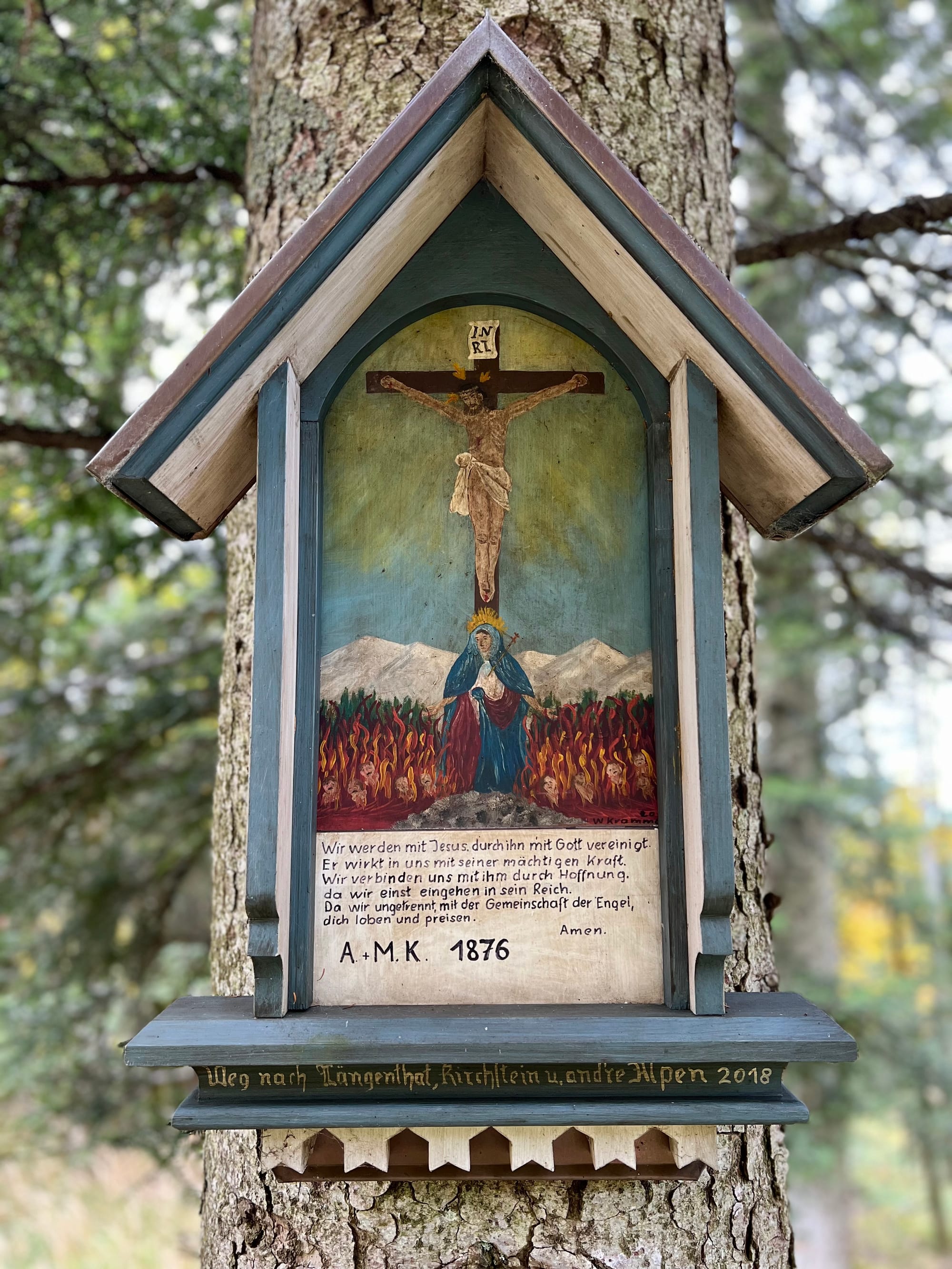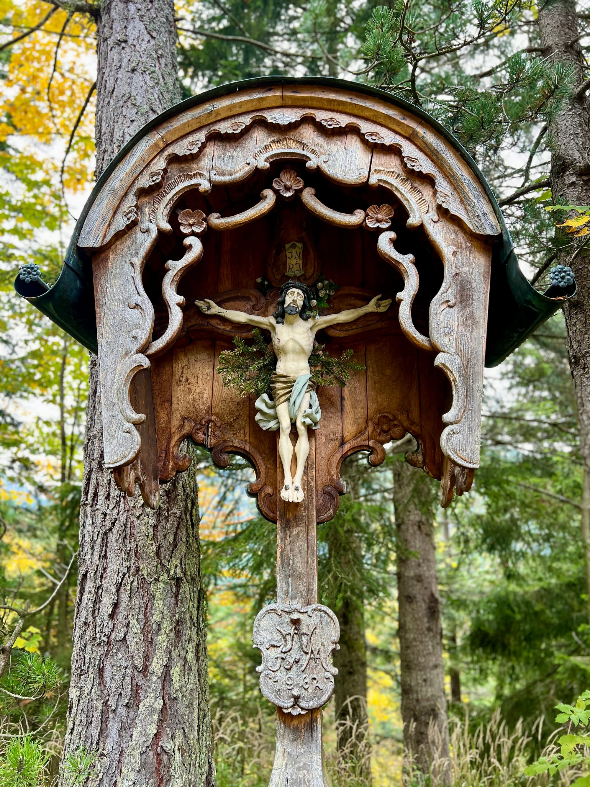 Ale szłam znowu sama, spotkałam tylko jednego faceta. W pewnym momencie wyszłam na polane i otworzył się widok na juz prawie całkowicie słoneczne Lenggries i jesienny las. Zeszłam już ostatnie kilometry do auta, mijając po drodze kilka ładnych kapliczek.