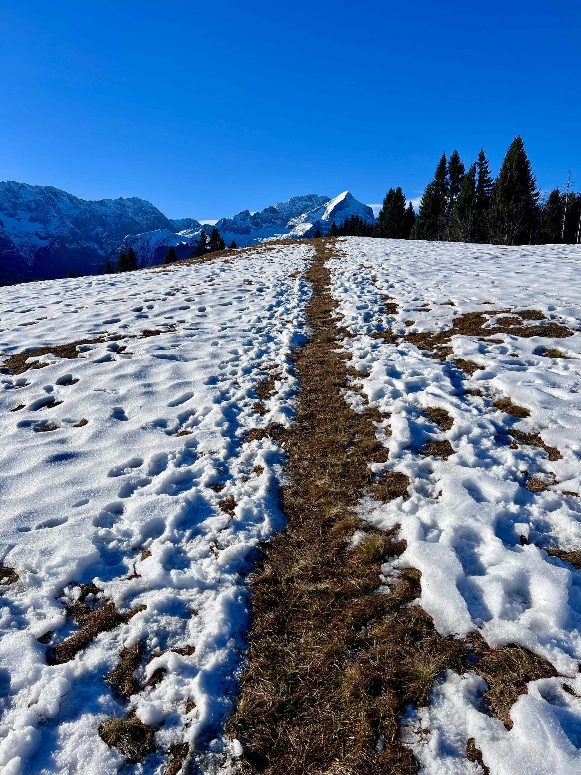 Dzisiaj trochę lodu było, ale jeszcze tak w ramach rozsądku. Śnieg zmrożony, ogólnie dobrze się szło. No i słońce!!! Nad Freising od kilku dni jakaś ciemna mgła wisi, nawet w środku dnia jest ciemno, a tu konkretne słońce i ciepło.