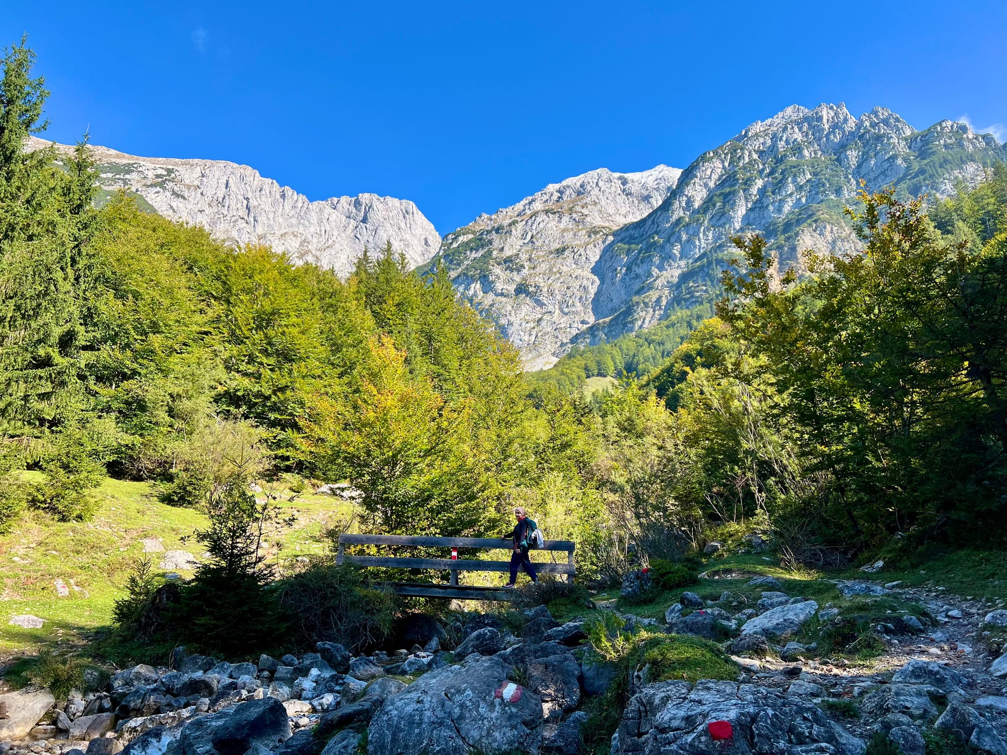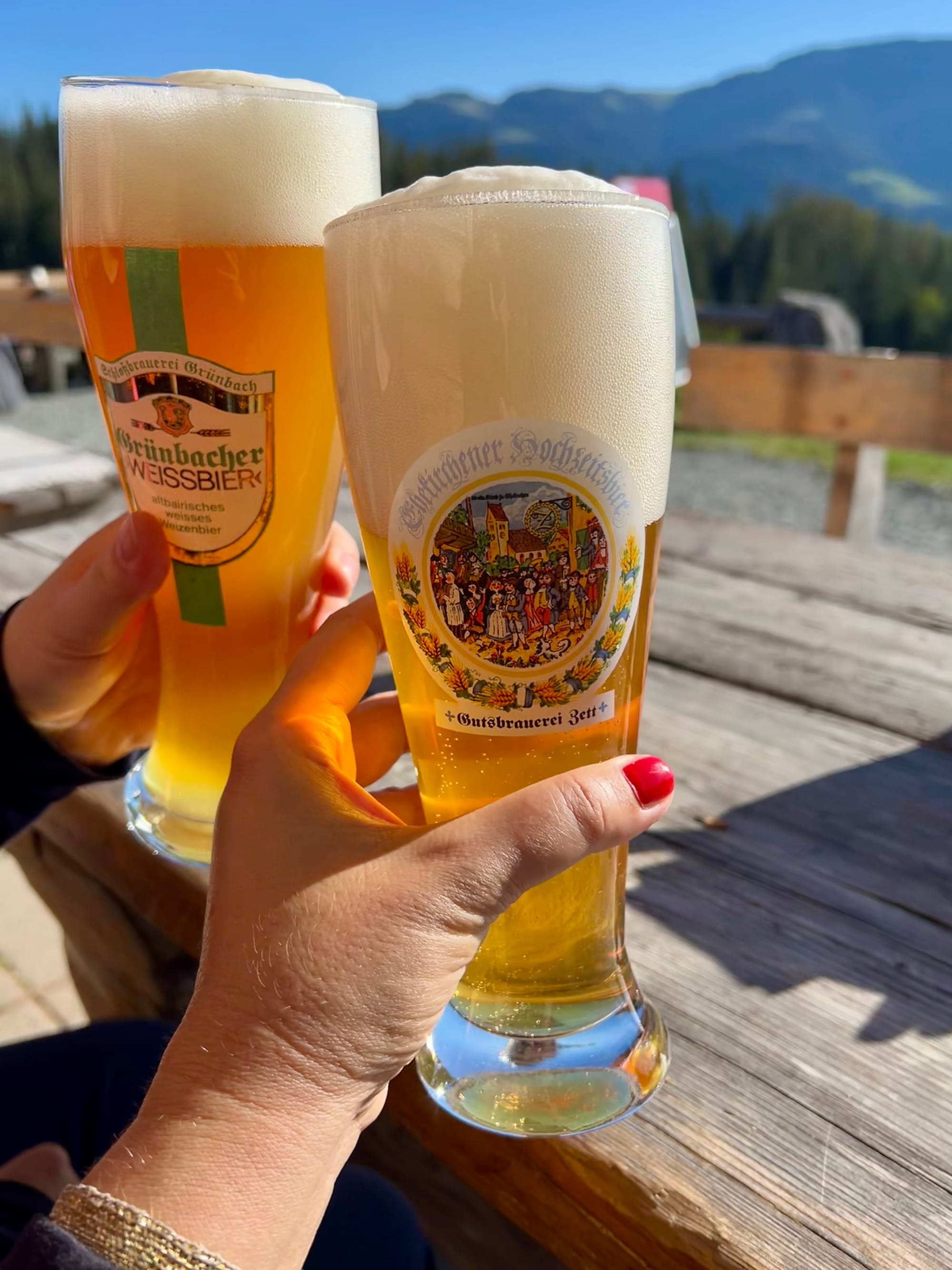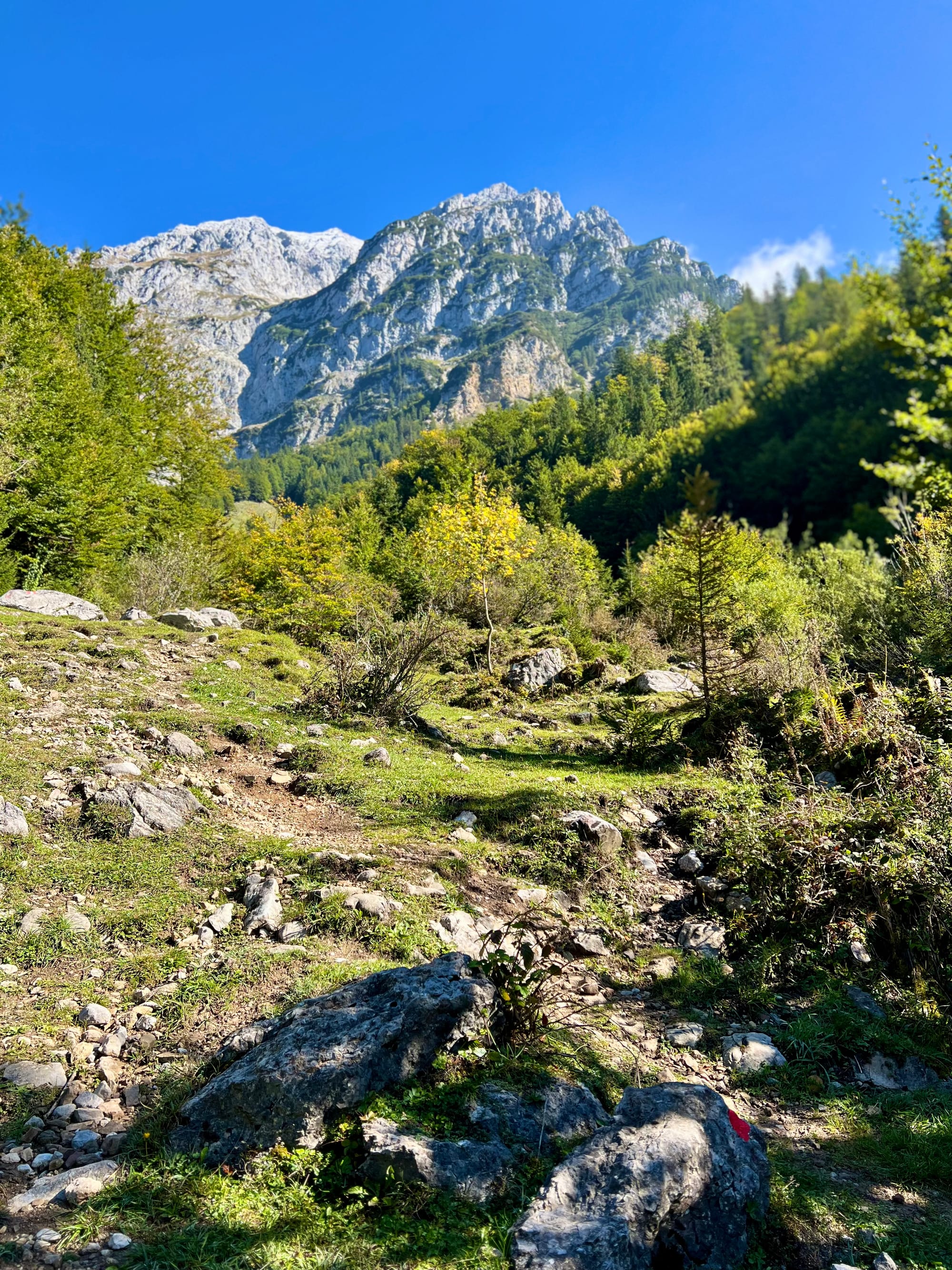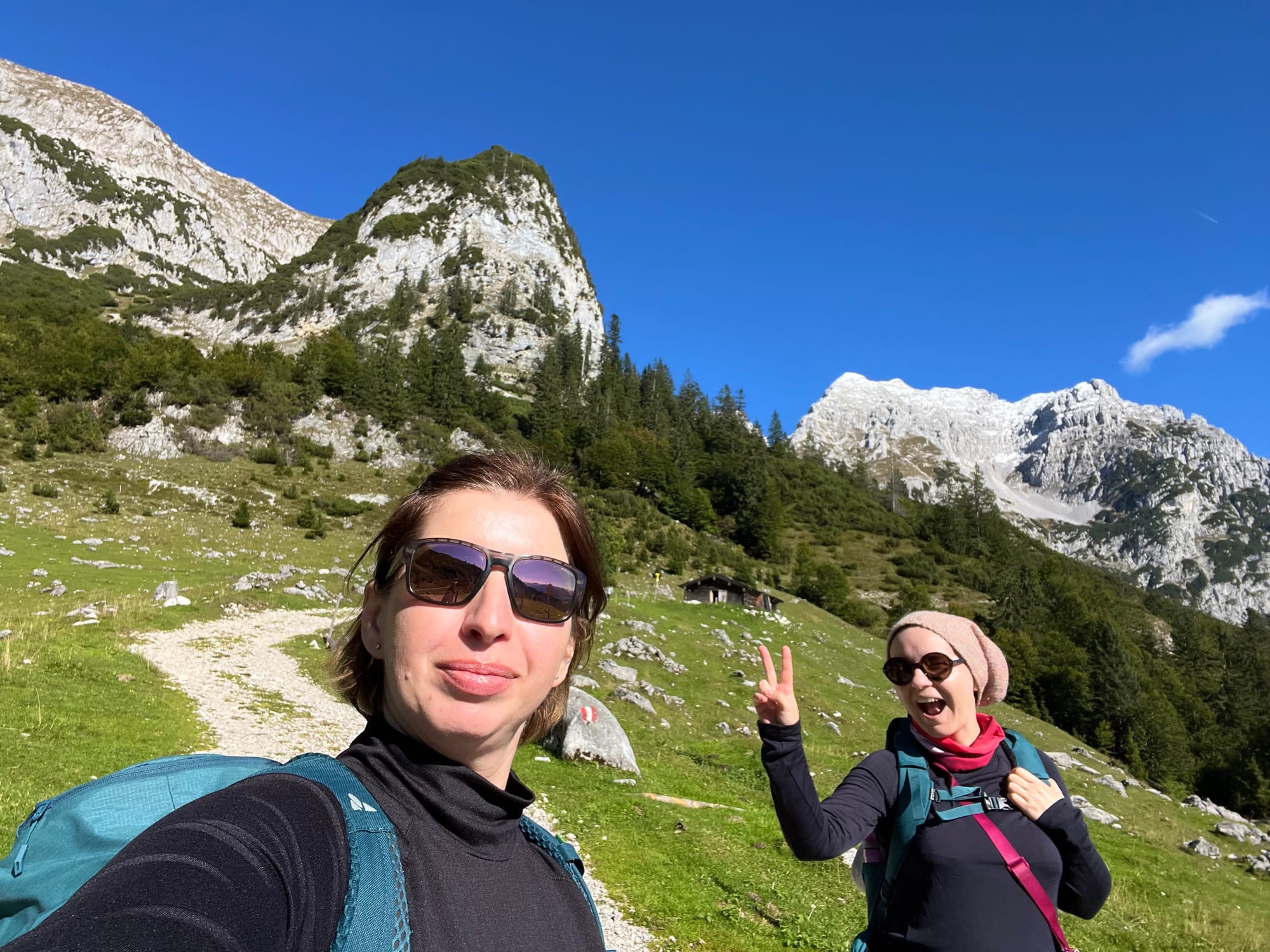 Na początku kawa w bardzo przytulnej, tyrolskiej kawiarence. A później już trzeba było się zbierać i po prostu iść w górę. Startowałyśmy z Scheffau am Widem Kaiser i jest to niesamowite miejsce, bo już z dołu, z wioski widać ogromne ściany skalne. Najpierw trochę szłyśmy przez las, a nawet wąwóz i tam było już widać jesień. Temperatura też nie za wysoka, ale jak się idzie pod górkę z plecakiem, to szybko można się rozgrzać.