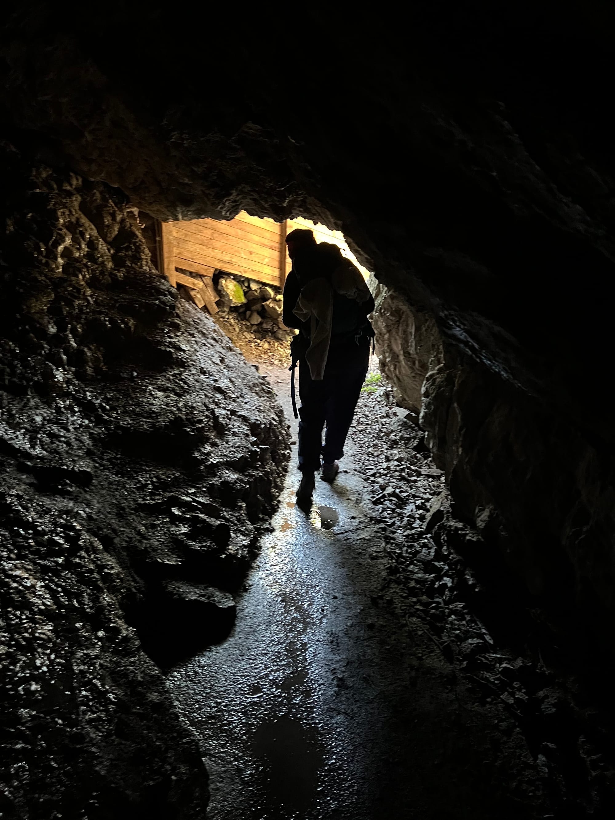 Już blisko wioski wypiłyśmy piwko i zaczęłyśmy iść w stronę auta, ale okazało się że droga idzie przez wąwóz z mostami zawieszonymi wysoko nad strumieniem, a dodatkowo można było wejść do XVI- wiecznej kopalni (tylko trochę weszłyśmy, bo światło było zepsute)!