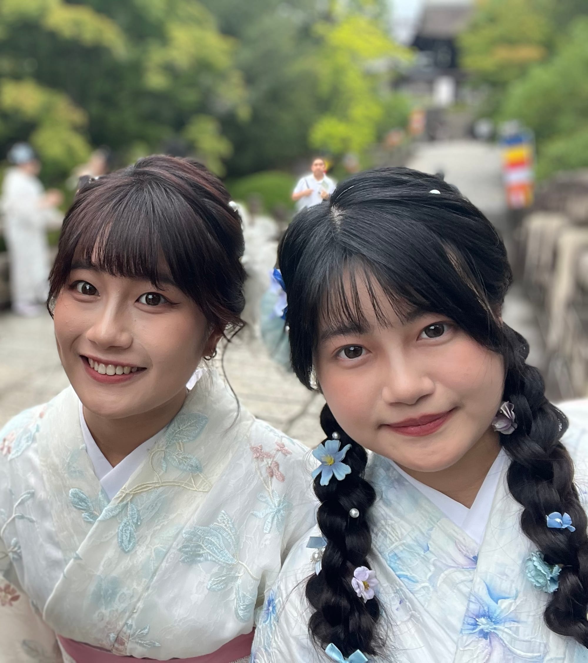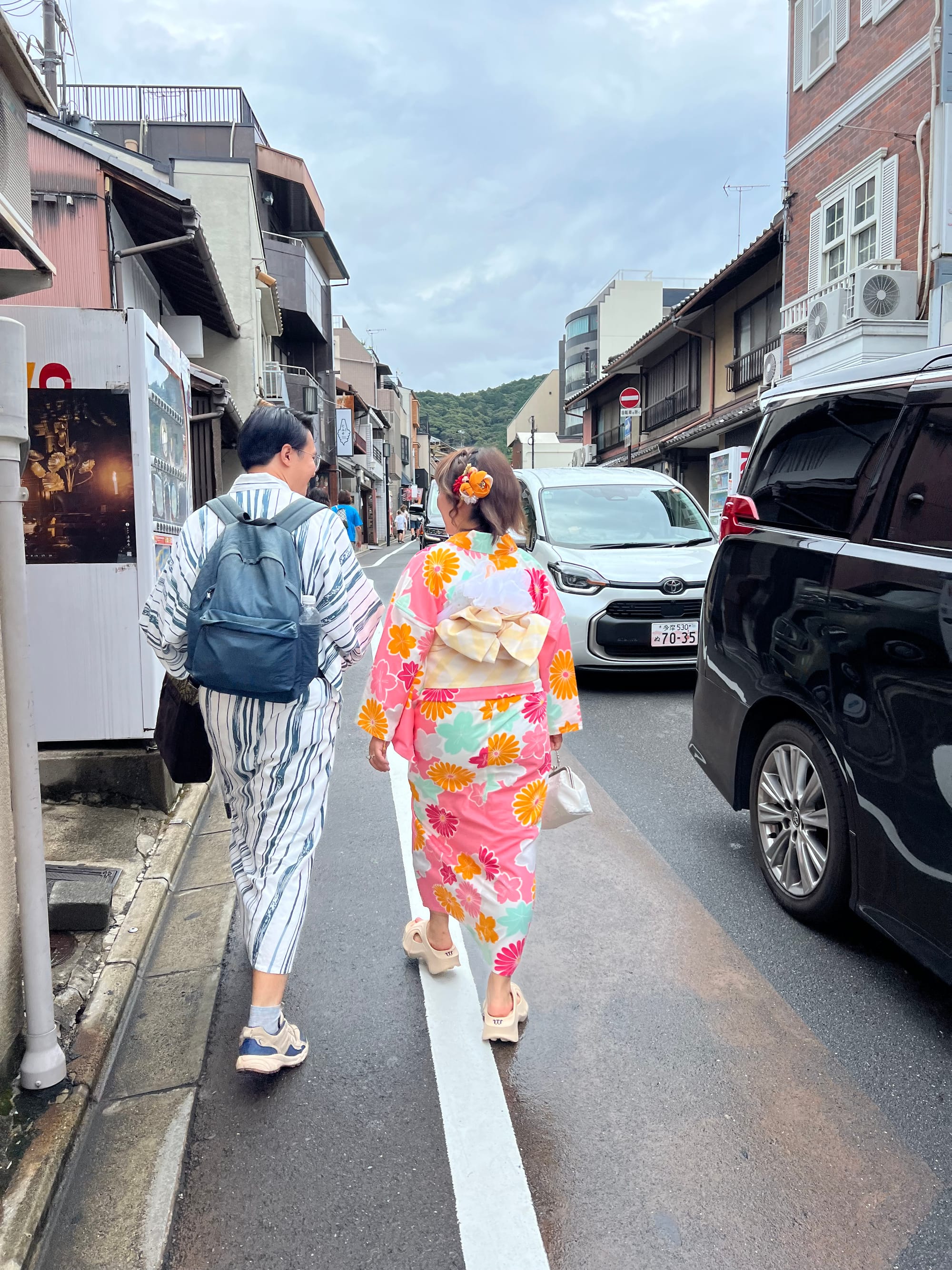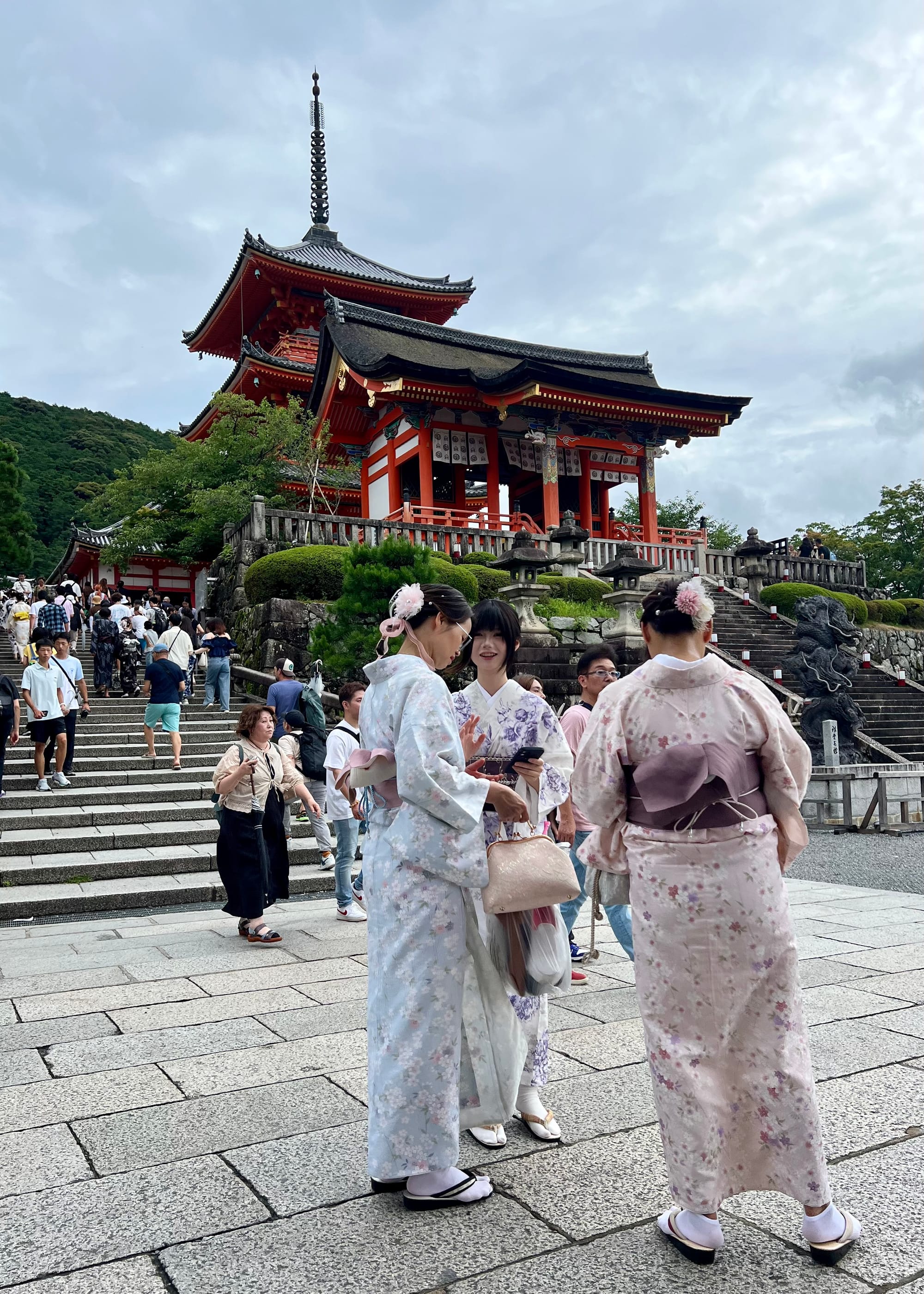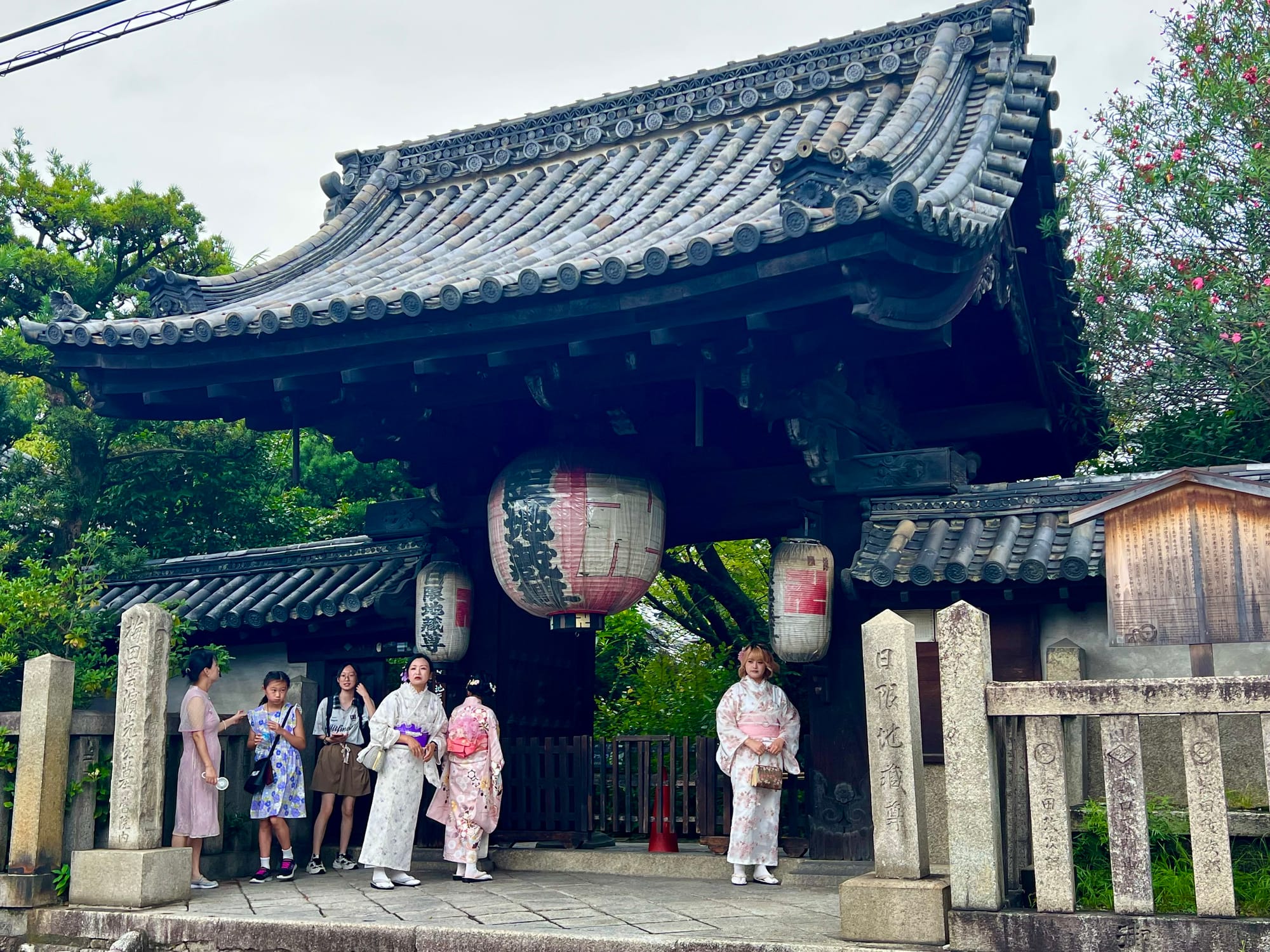 Rano ruszyliśmy zwiedzać miasto, najstarsza część. Najpierw pociąg, później autobus. Już w autobusie był tłok, bo Kyoto bardzo turystyczne jest. Wysiedliśmy i od razu możne natknąć się na turystów, którzy przebierają się w kimona i tak sobie spacerują po uliczkach.