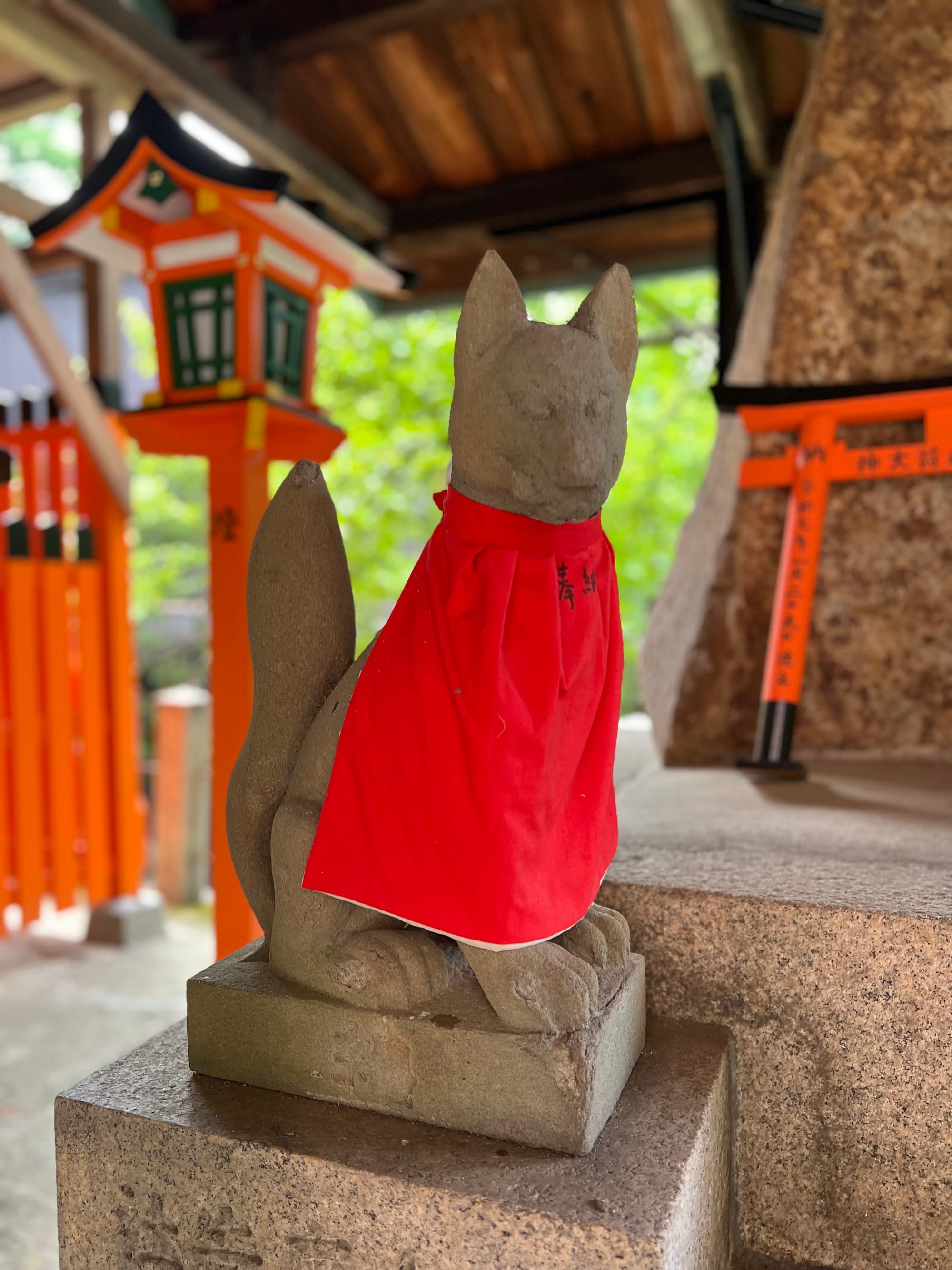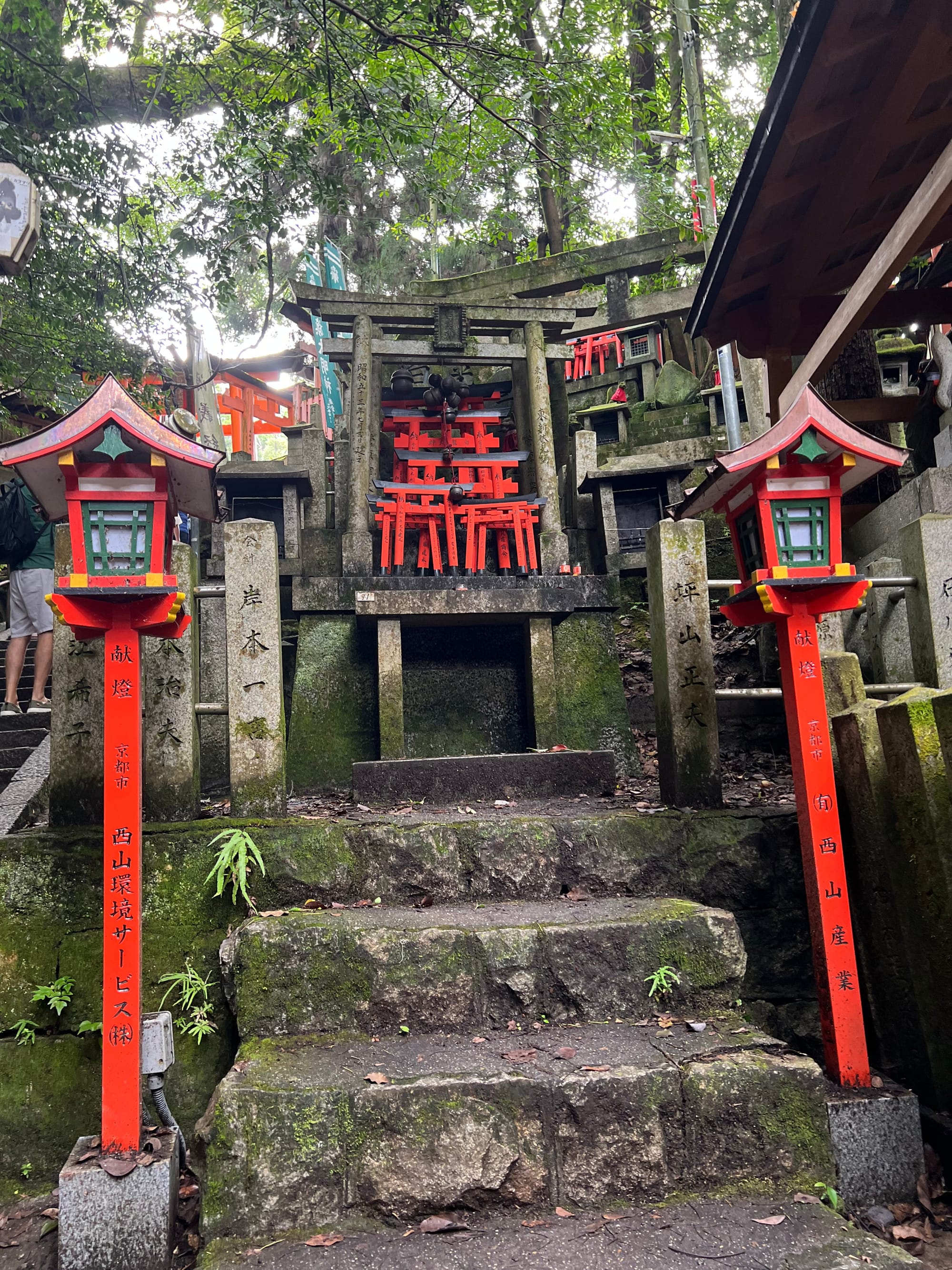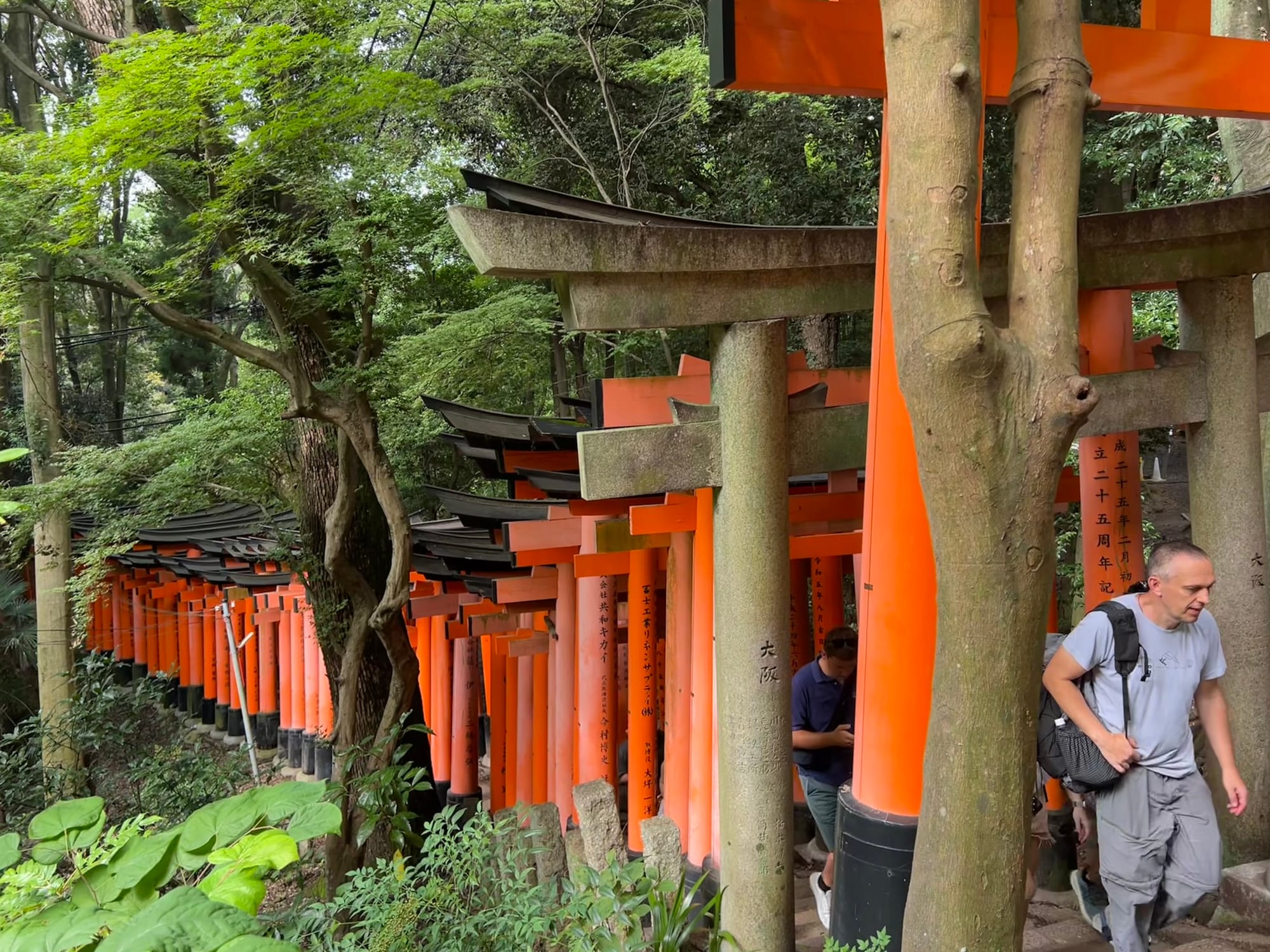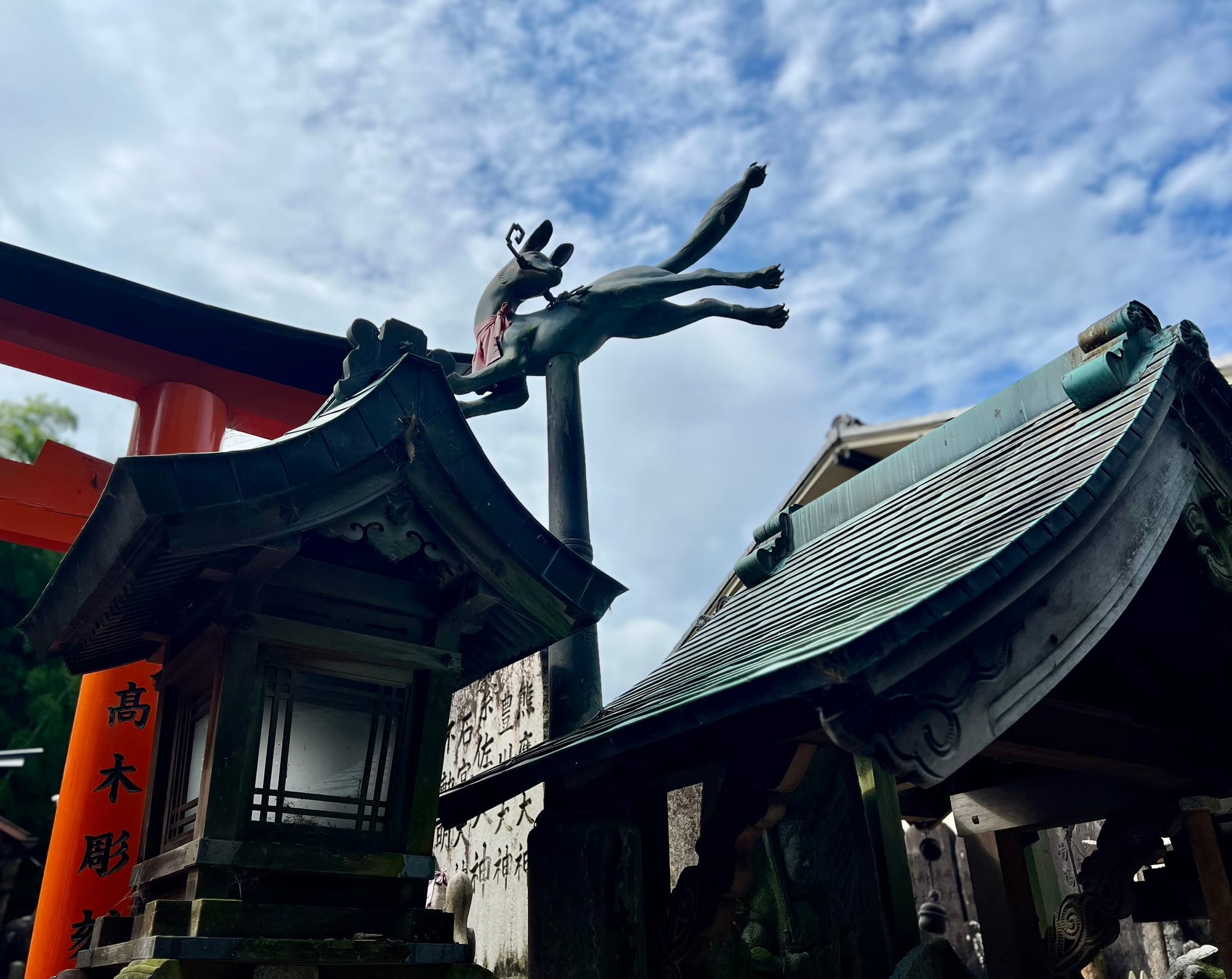 Na parking przed świątynię dojechaliśmy już krótko po ósmej a i tak połowa parkingu była już pełna. Ale nie było źle. Przyjechaliśmy pod świątynię 1000 bram tori, ale miałam wrażenie, że było ich o wiele więcej. Startuje się u podnóża wzgórza, przy świątyni i pod ustawionymi gęsto tori idzie się wyżej i wyżej do różnych ołtarzyków.
