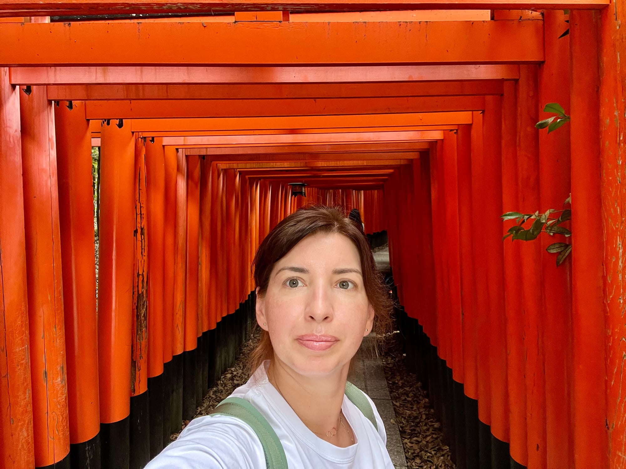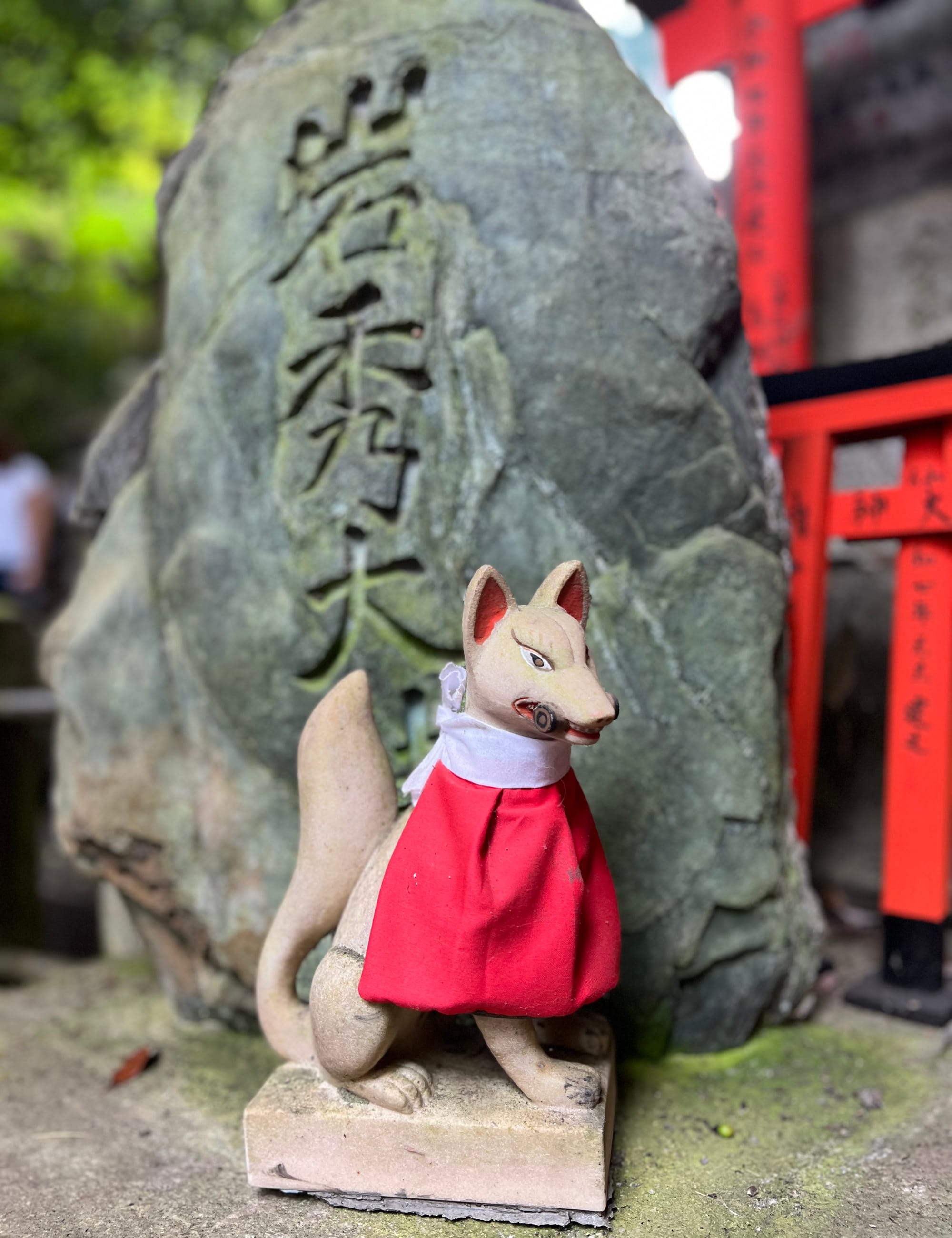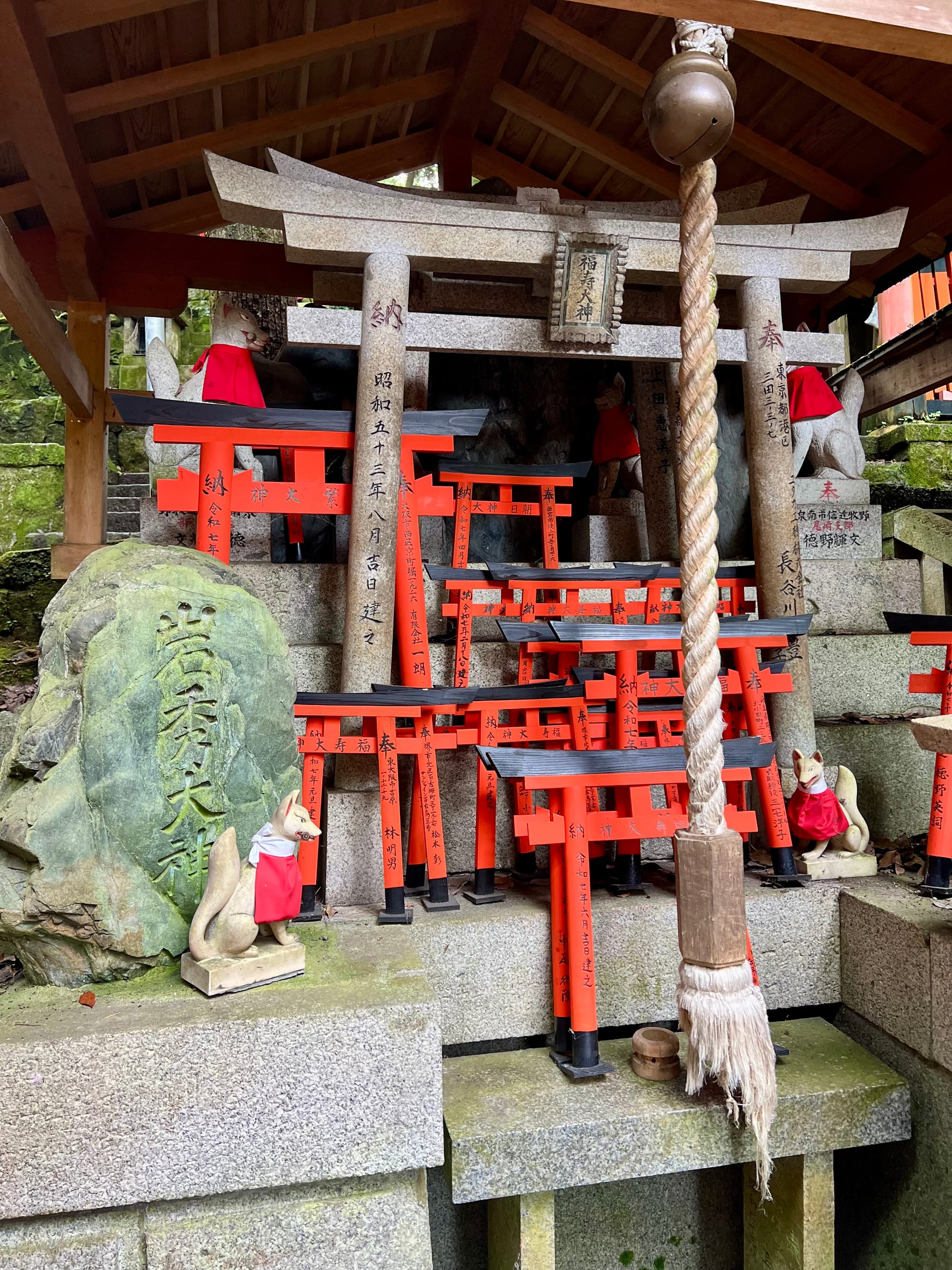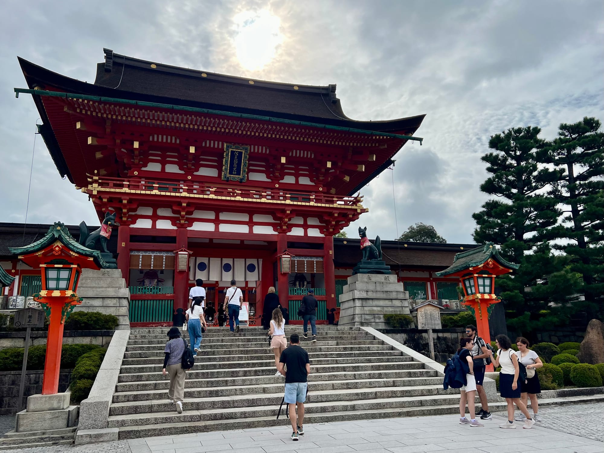 Na parking przed świątynię dojechaliśmy już krótko po ósmej a i tak połowa parkingu była już pełna. Ale nie było źle. Przyjechaliśmy pod świątynię 1000 bram tori, ale miałam wrażenie, że było ich o wiele więcej. Startuje się u podnóża wzgórza, przy świątyni i pod ustawionymi gęsto tori idzie się wyżej i wyżej do różnych ołtarzyków.