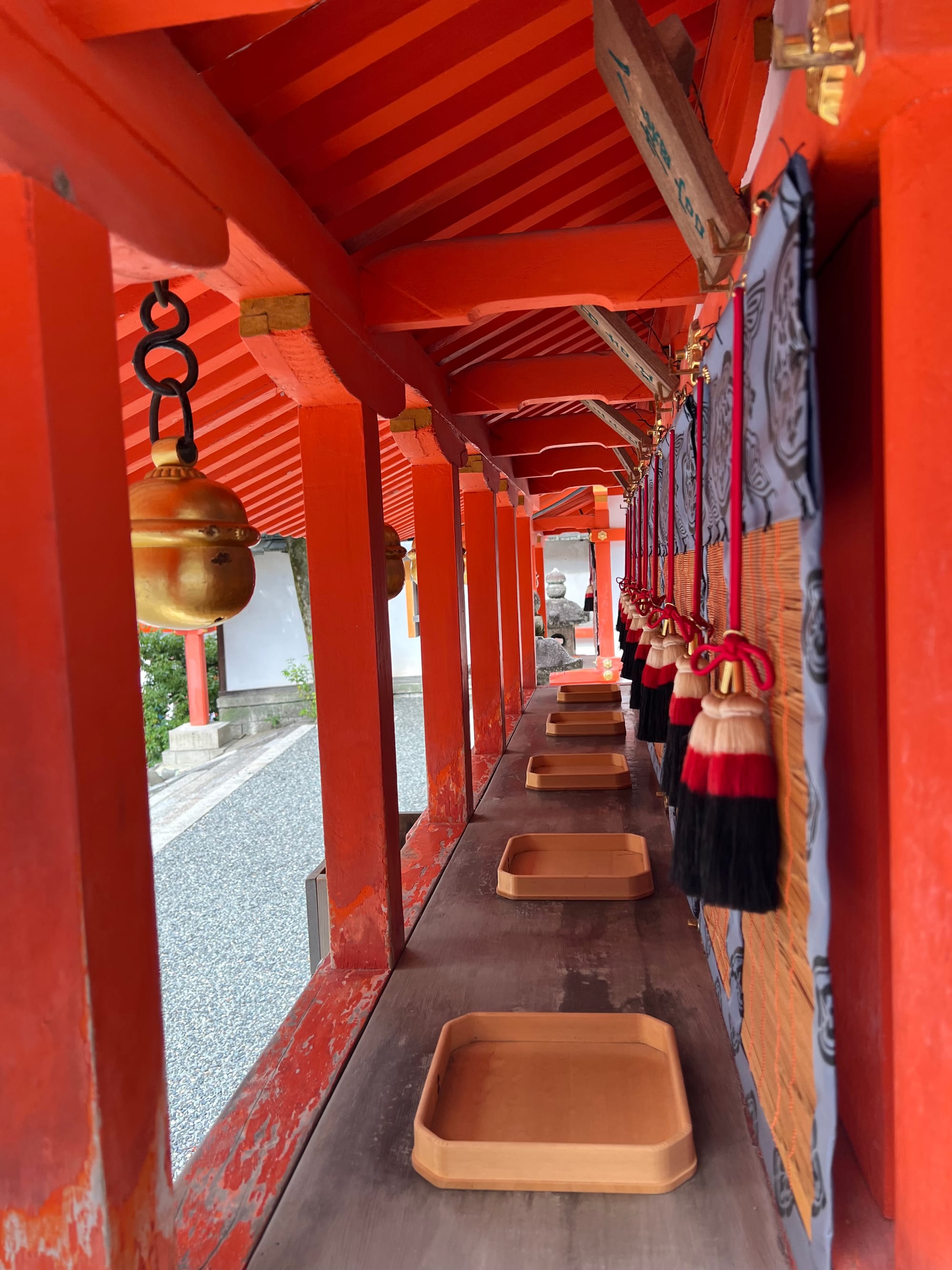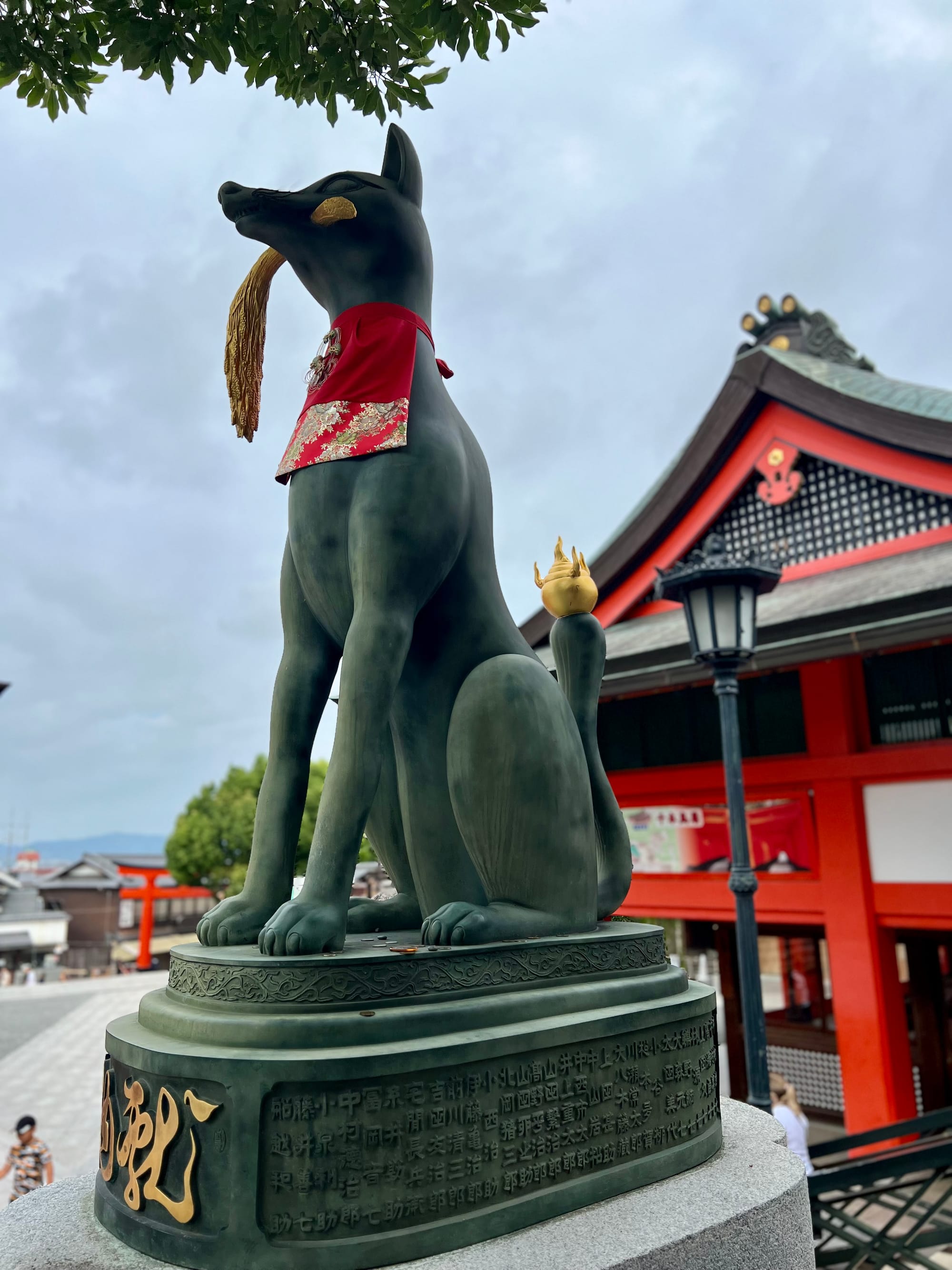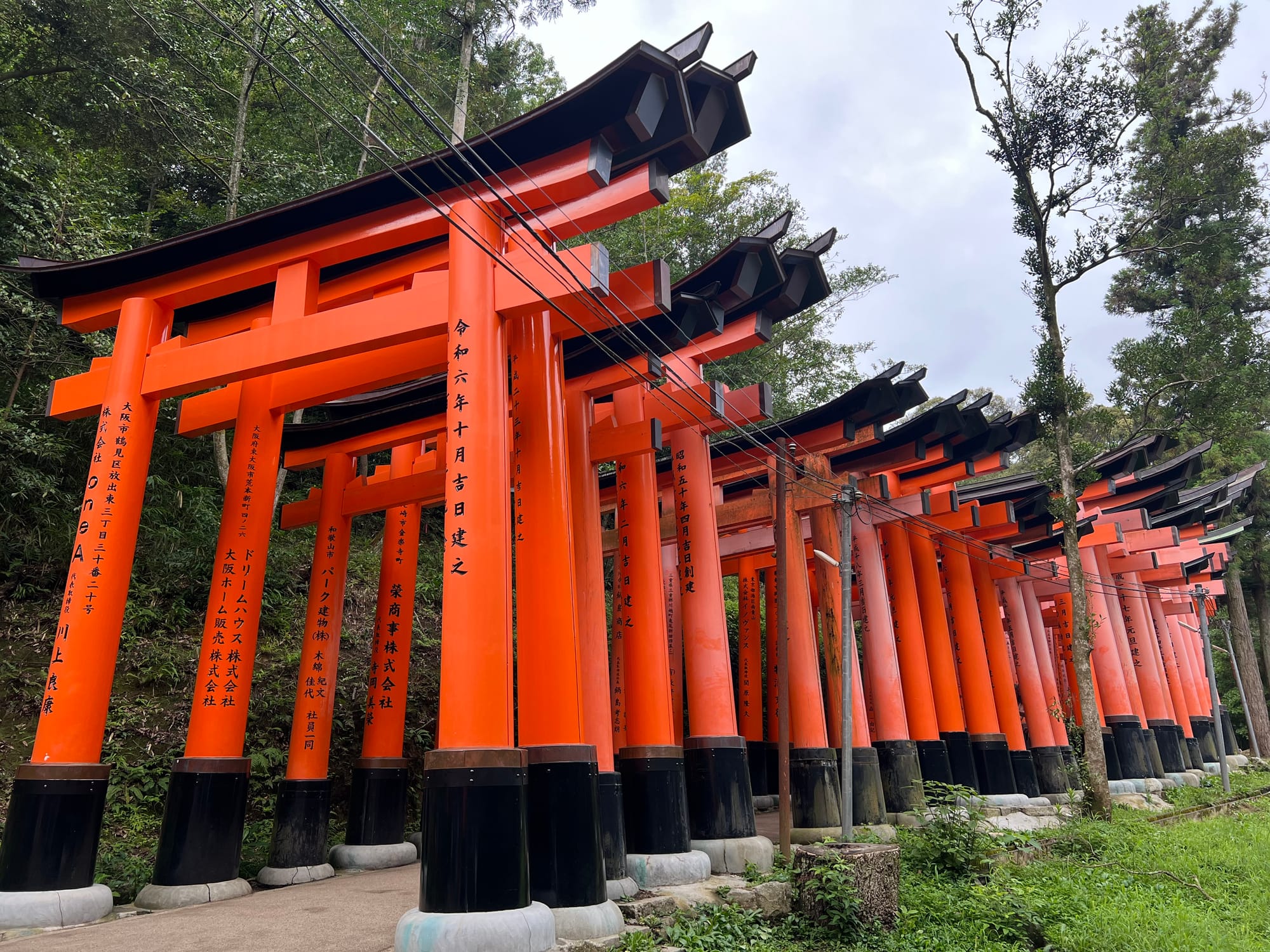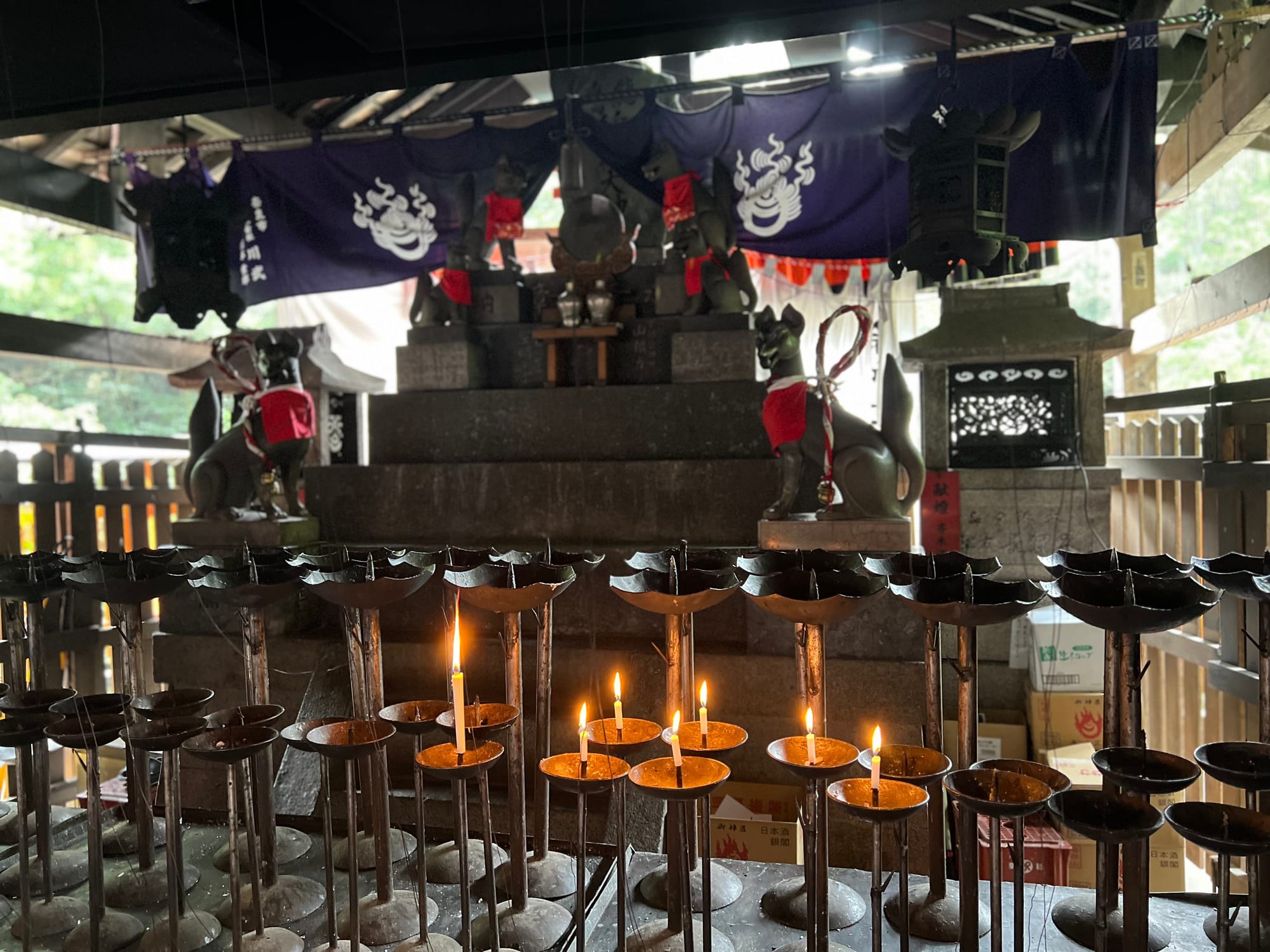 Na parking przed świątynię dojechaliśmy już krótko po ósmej a i tak połowa parkingu była już pełna. Ale nie było źle. Przyjechaliśmy pod świątynię 1000 bram tori, ale miałam wrażenie, że było ich o wiele więcej. Startuje się u podnóża wzgórza, przy świątyni i pod ustawionymi gęsto tori idzie się wyżej i wyżej do różnych ołtarzyków.