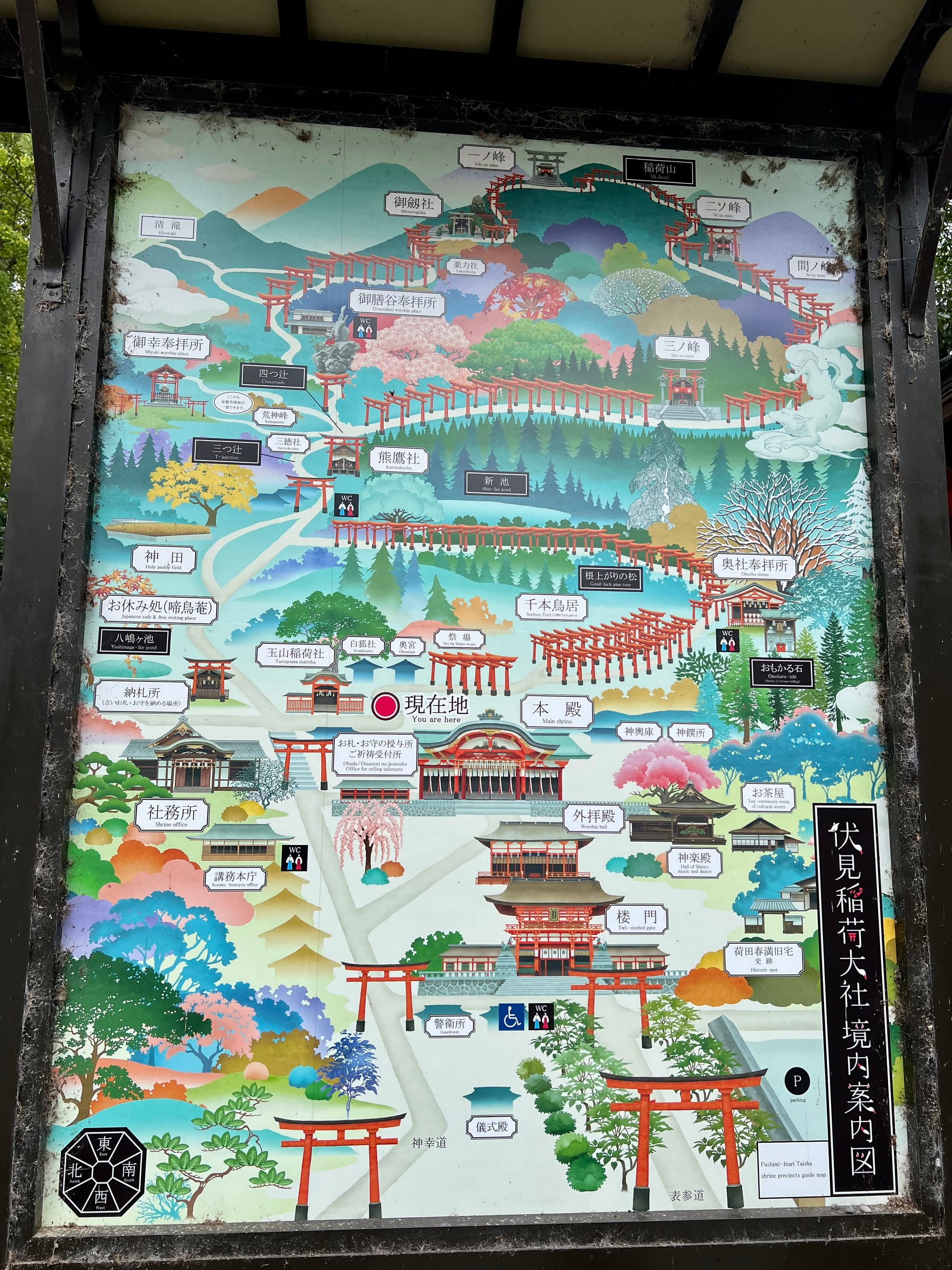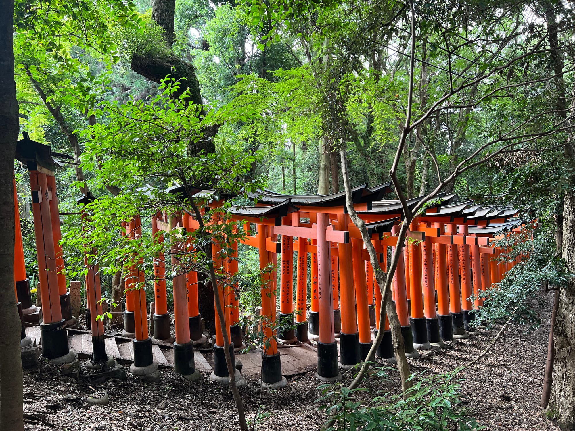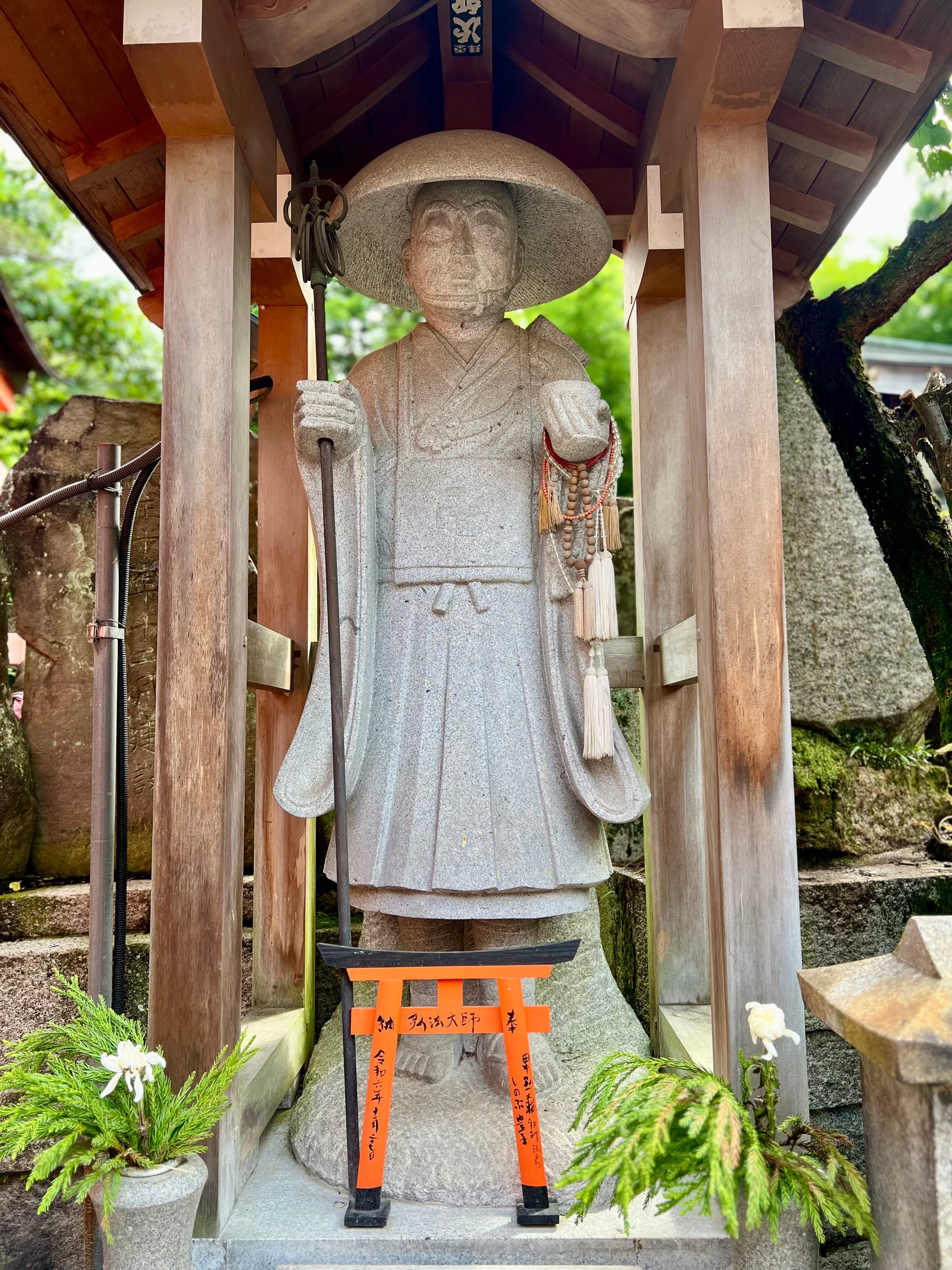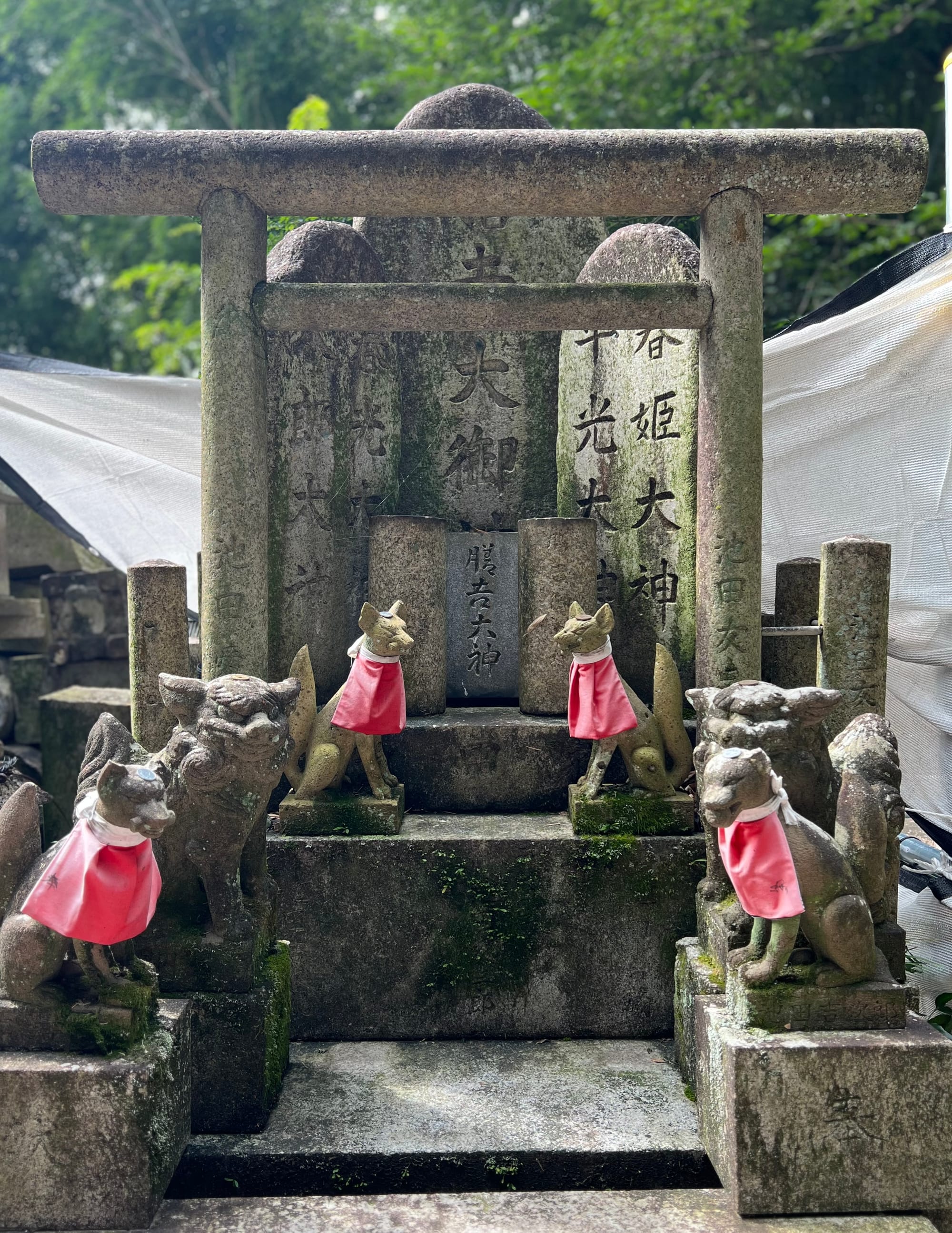 Na parking przed świątynię dojechaliśmy już krótko po ósmej a i tak połowa parkingu była już pełna. Ale nie było źle. Przyjechaliśmy pod świątynię 1000 bram tori, ale miałam wrażenie, że było ich o wiele więcej. Startuje się u podnóża wzgórza, przy świątyni i pod ustawionymi gęsto tori idzie się wyżej i wyżej do różnych ołtarzyków.