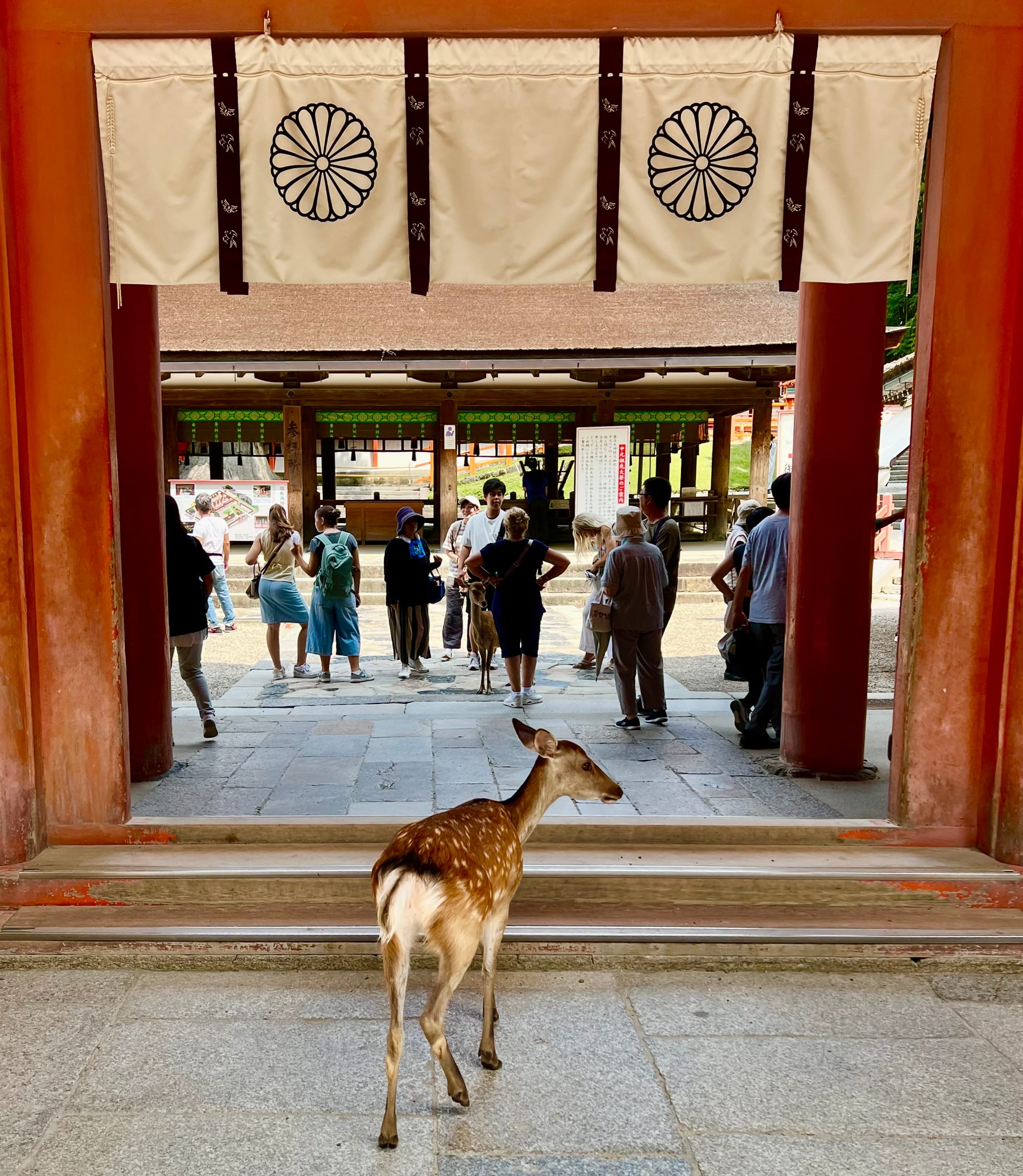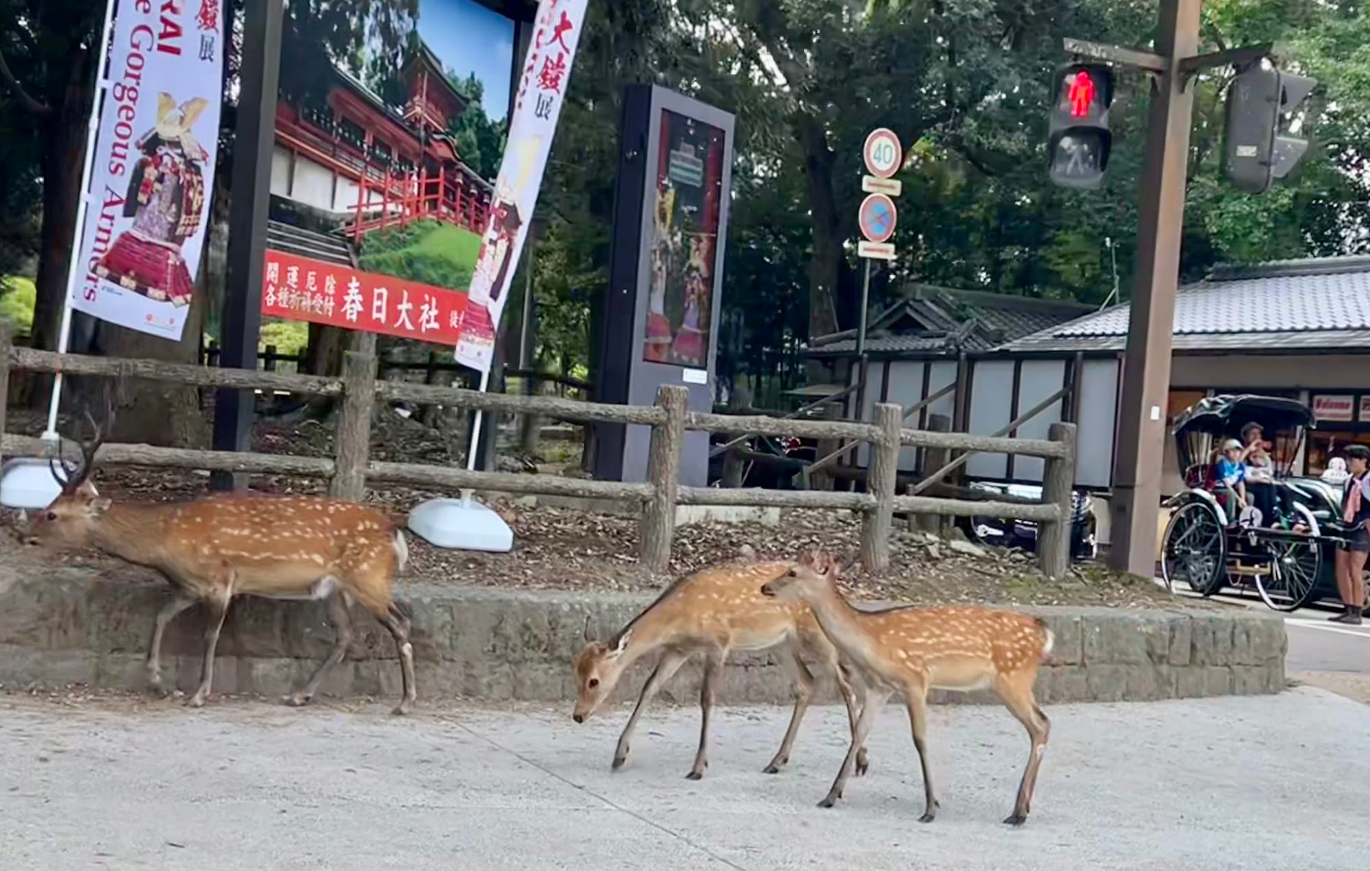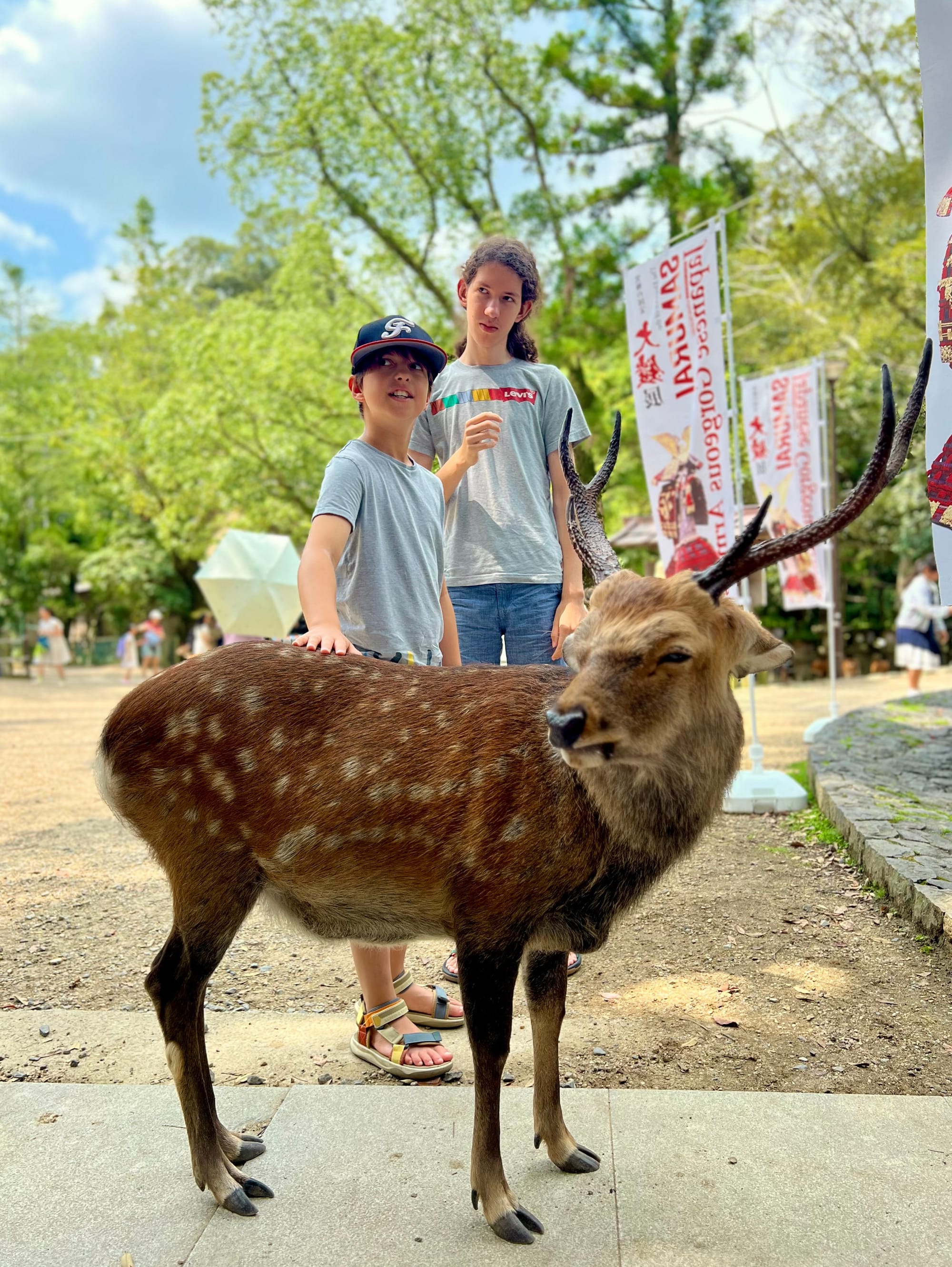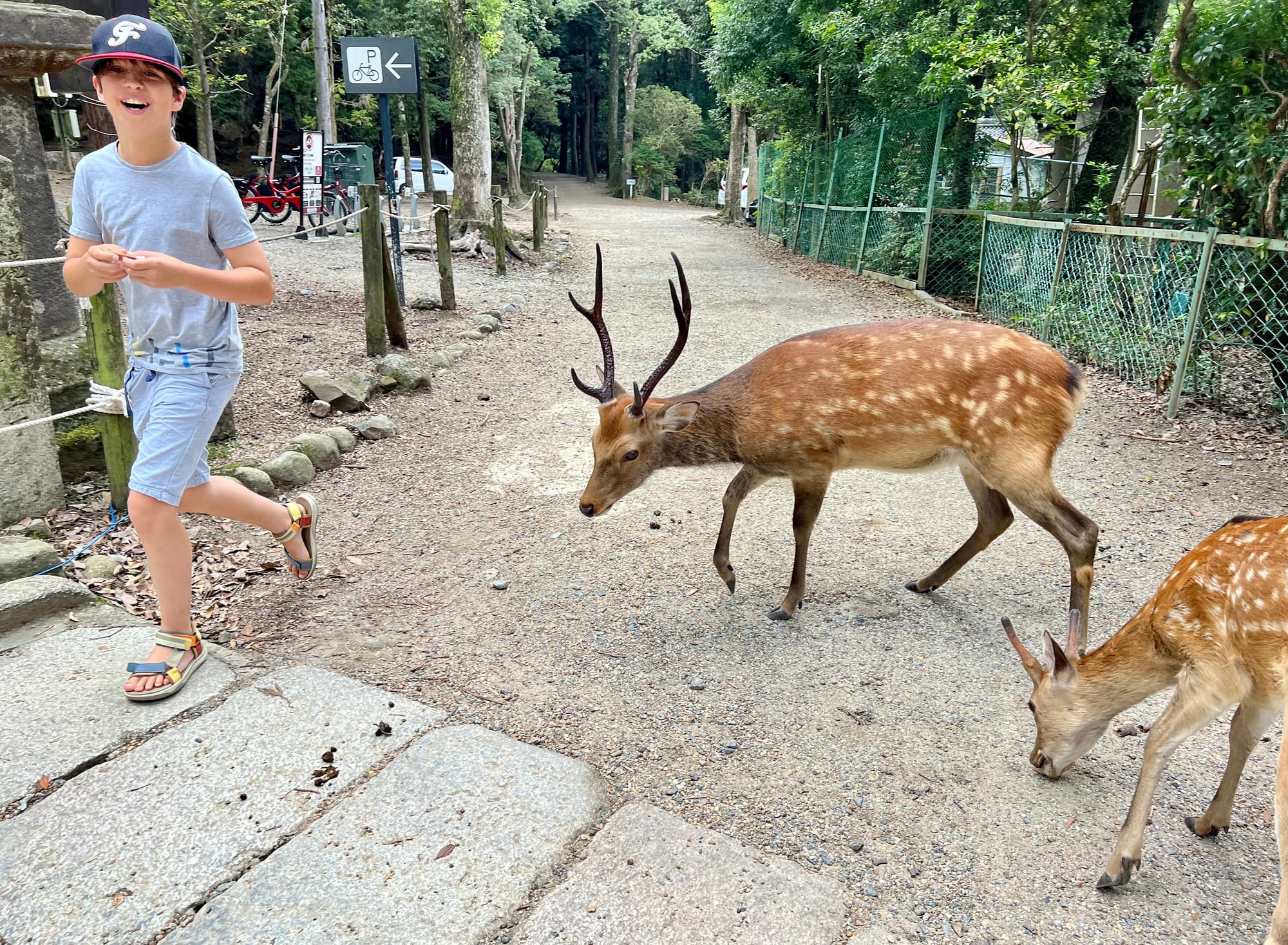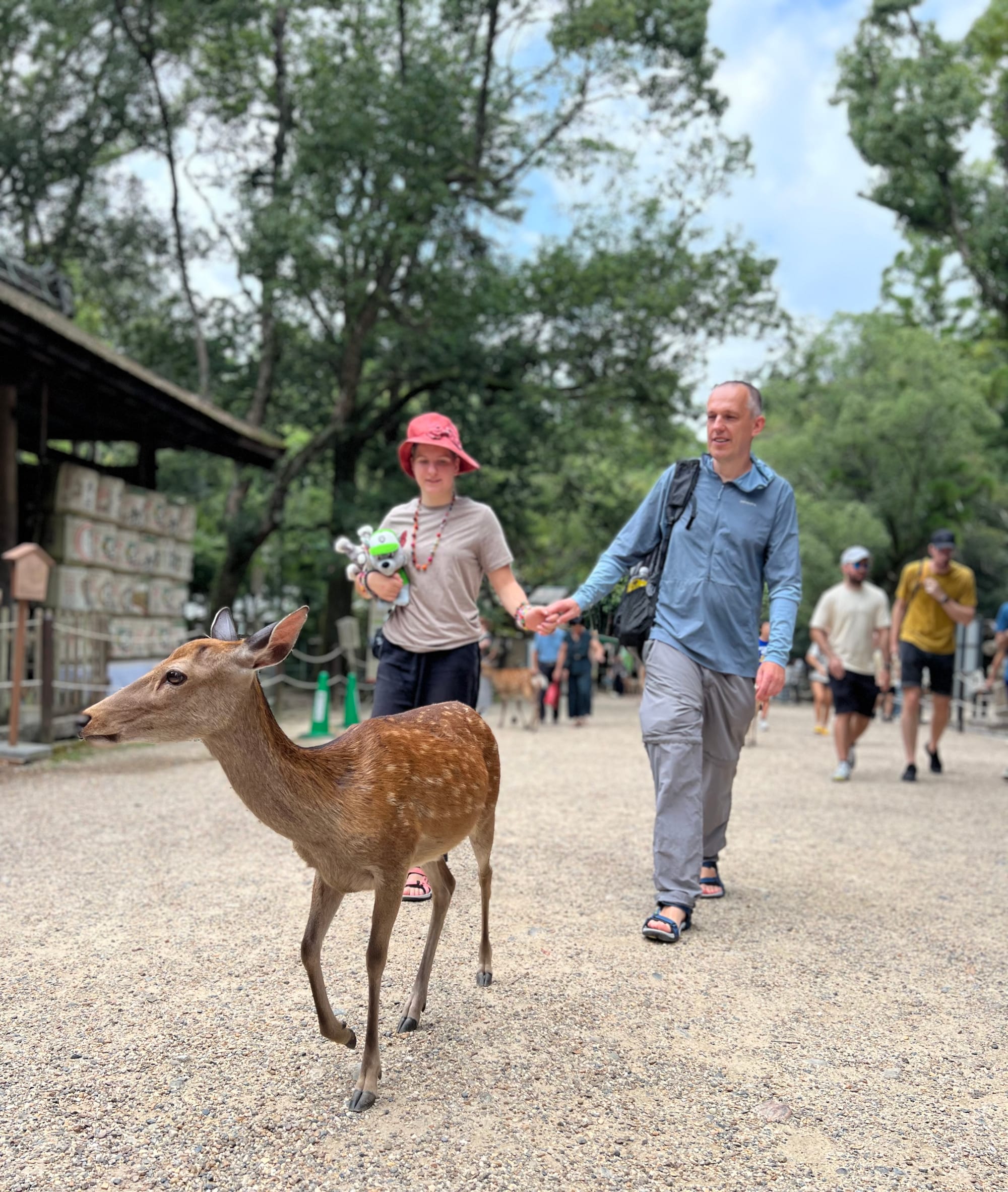 Jedziemy z Kyoto nad morze, trochę odpocząć od miast. Po drodze jest akurat miasto Nara i ma wiele wspaniałych zabytków, ale nas interesują sarenki 😀 W Nara jest ogromny park, tak duży, że idą przez niego ulice, jeżdżą autobusy i jest kiła świątyń. Myślałam, ze te sarenki tylko w jednym, wydzielonym miejscu są, a one sobie tak luzem łażą, same i w stadach po całym tym parku! Siedzą przy ulicach, przechodzą przez pasy.