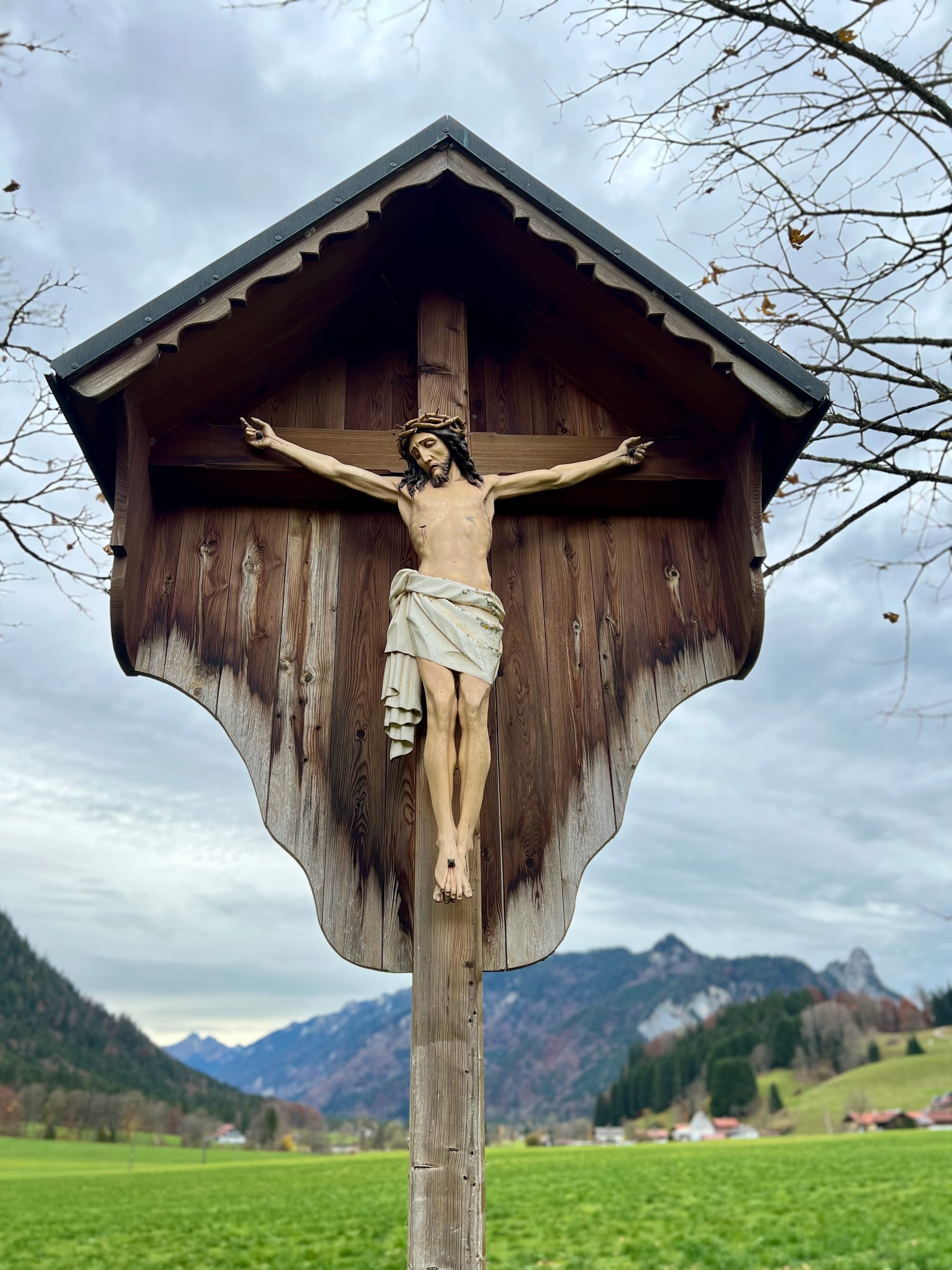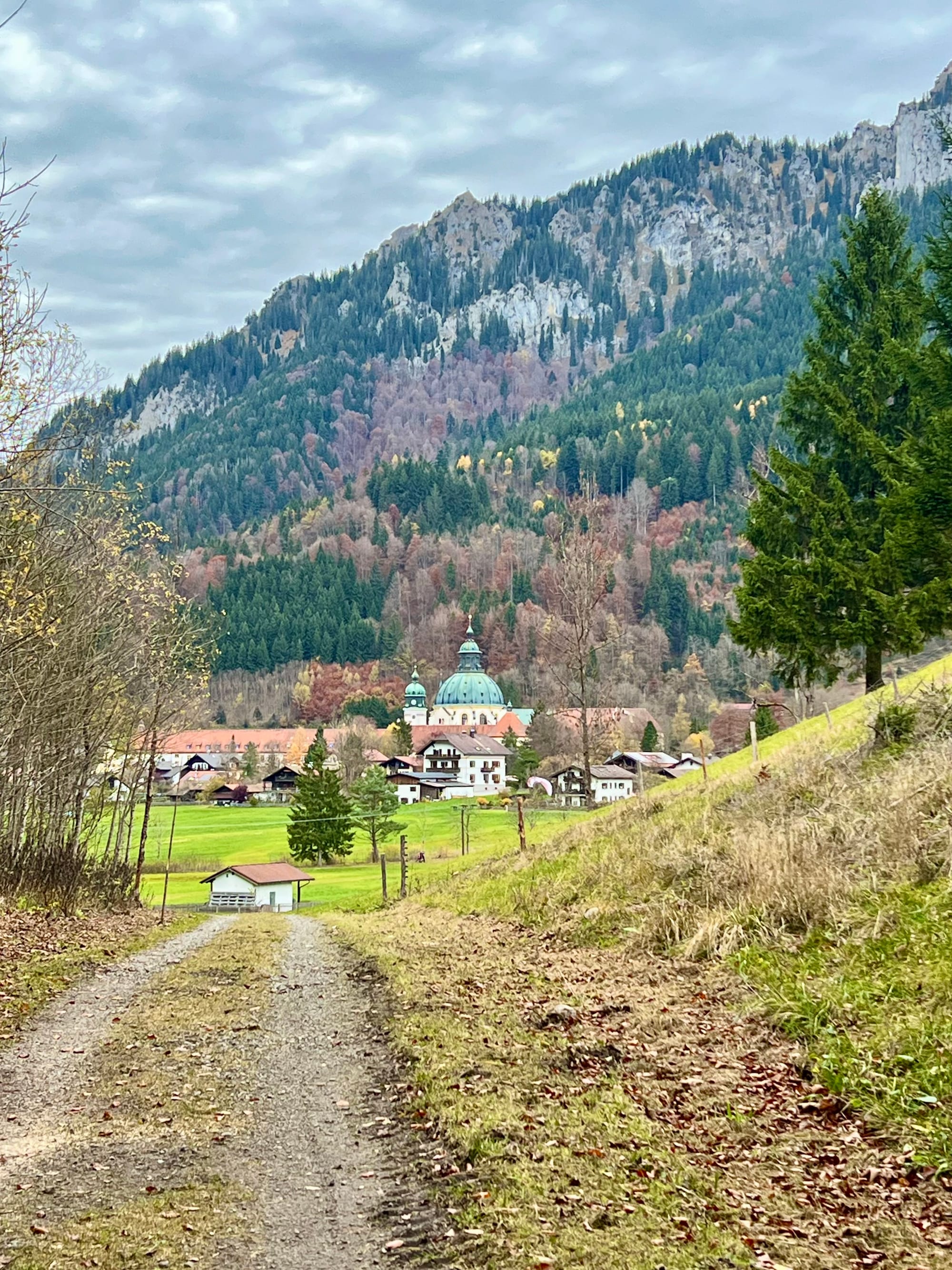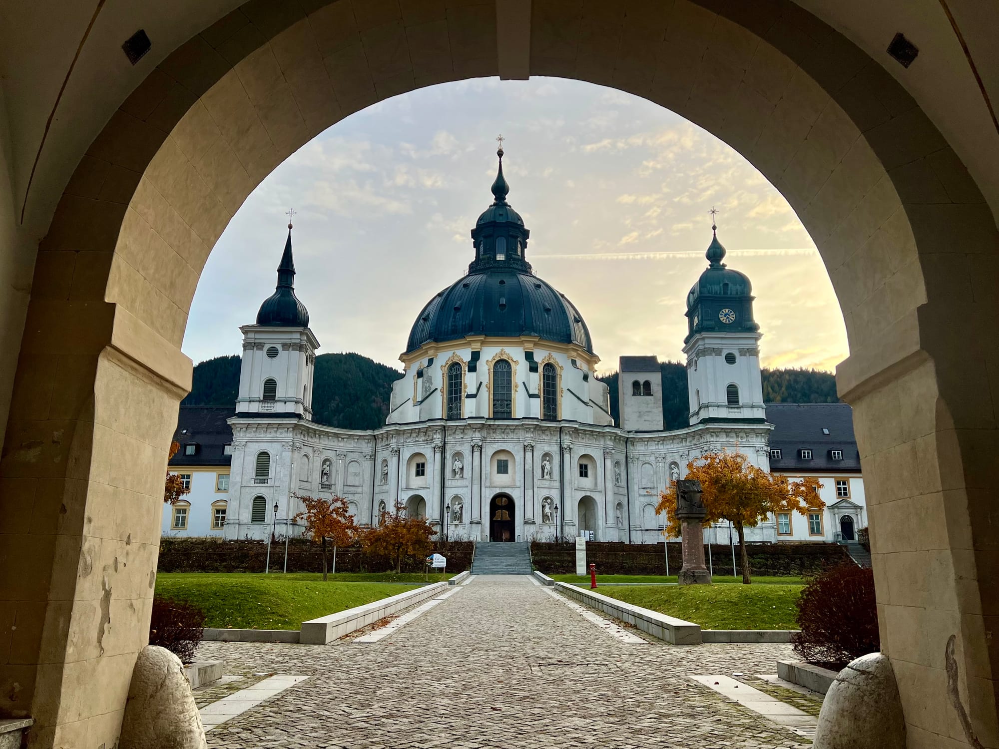 First things first, więc najpierw parkuje przy klasztorze w Ettal i idę na Mszę. Ksiądz kazał nam się patrzeć na kopułę bazyliki, żeby oglądać świętych w niebie i odkryłam tam naszego Korbiniana z niedźwiedziem.
