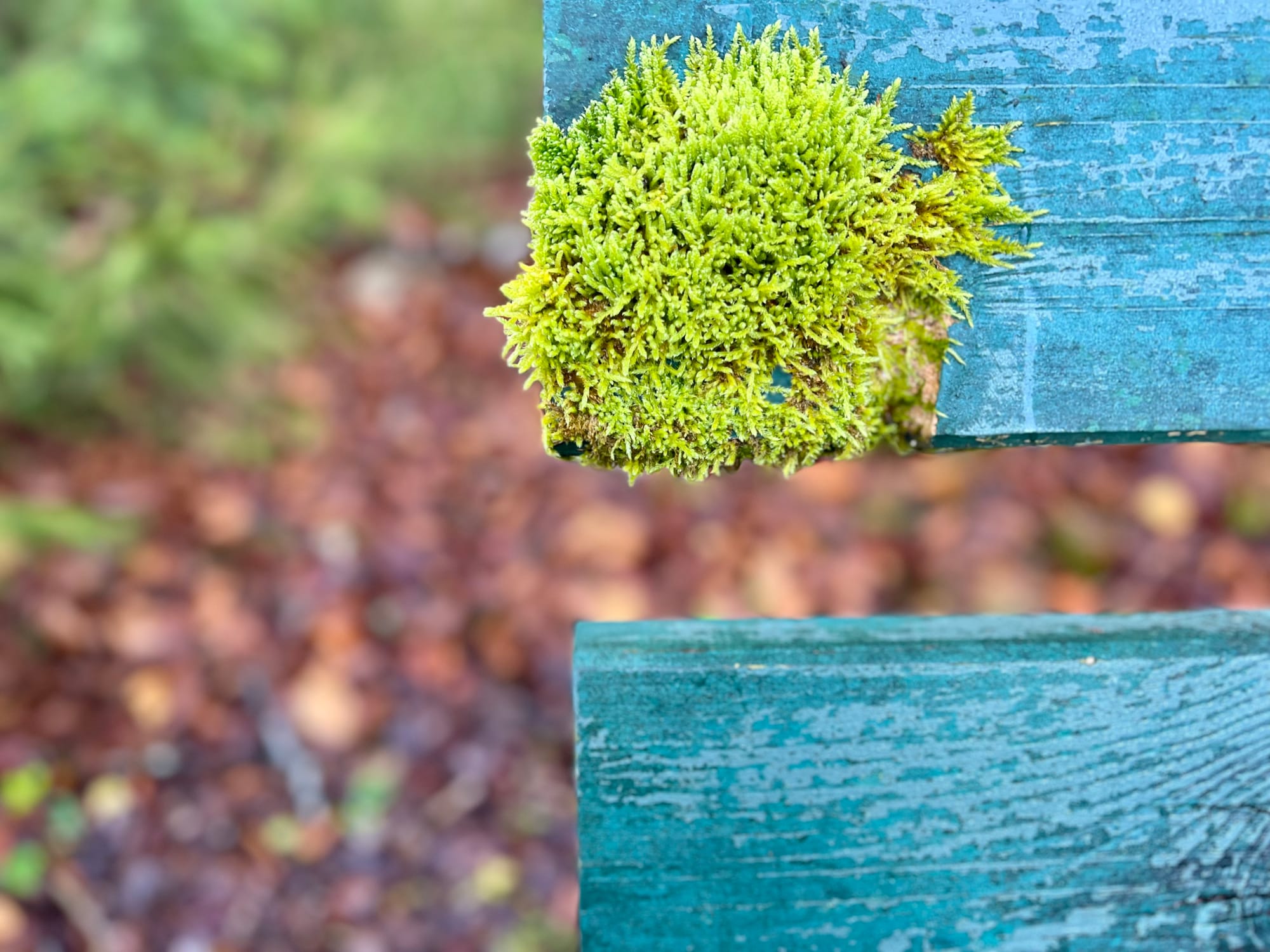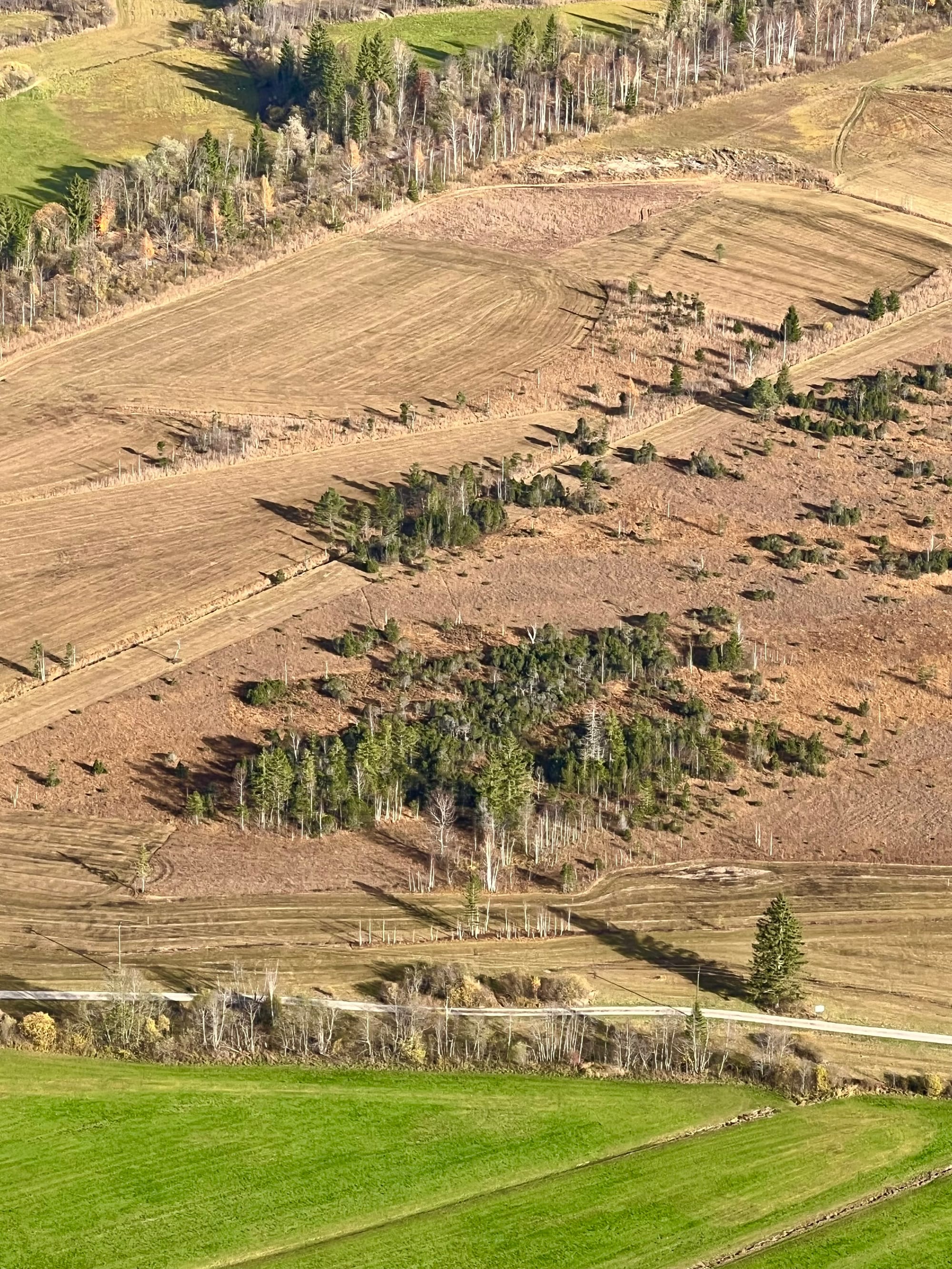 Przez pola szybko dochodzę na szlak i się zaczyna: stroma ścieżka w górę i tylko w górę i stromo w górę. Czasem jeszcze przez korzenie. Jest tak stromo, że tak jak nie lubię, tak jestem zmuszona robić pauzy. Ale za to widok na dolinę robi się co raz lepszy, można z góry oglądać klasztor i torfowiska.