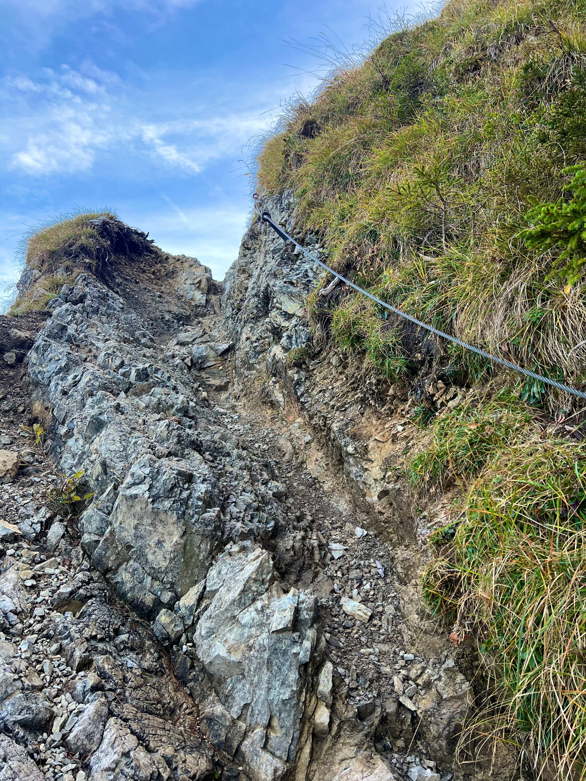 Droga prowadzi grania przez dwa mniejsze szczyty. Jest czasem stromo, ale nie trzeba tak balansować nad przepaścią.