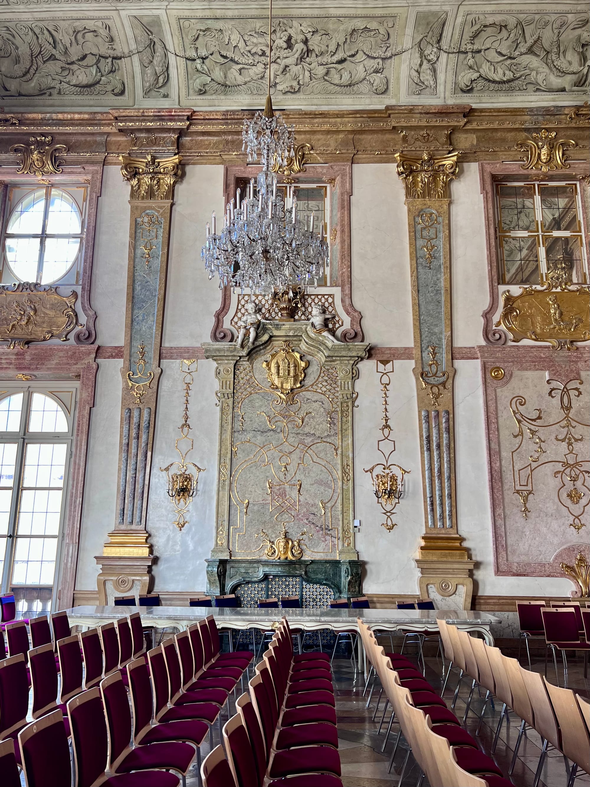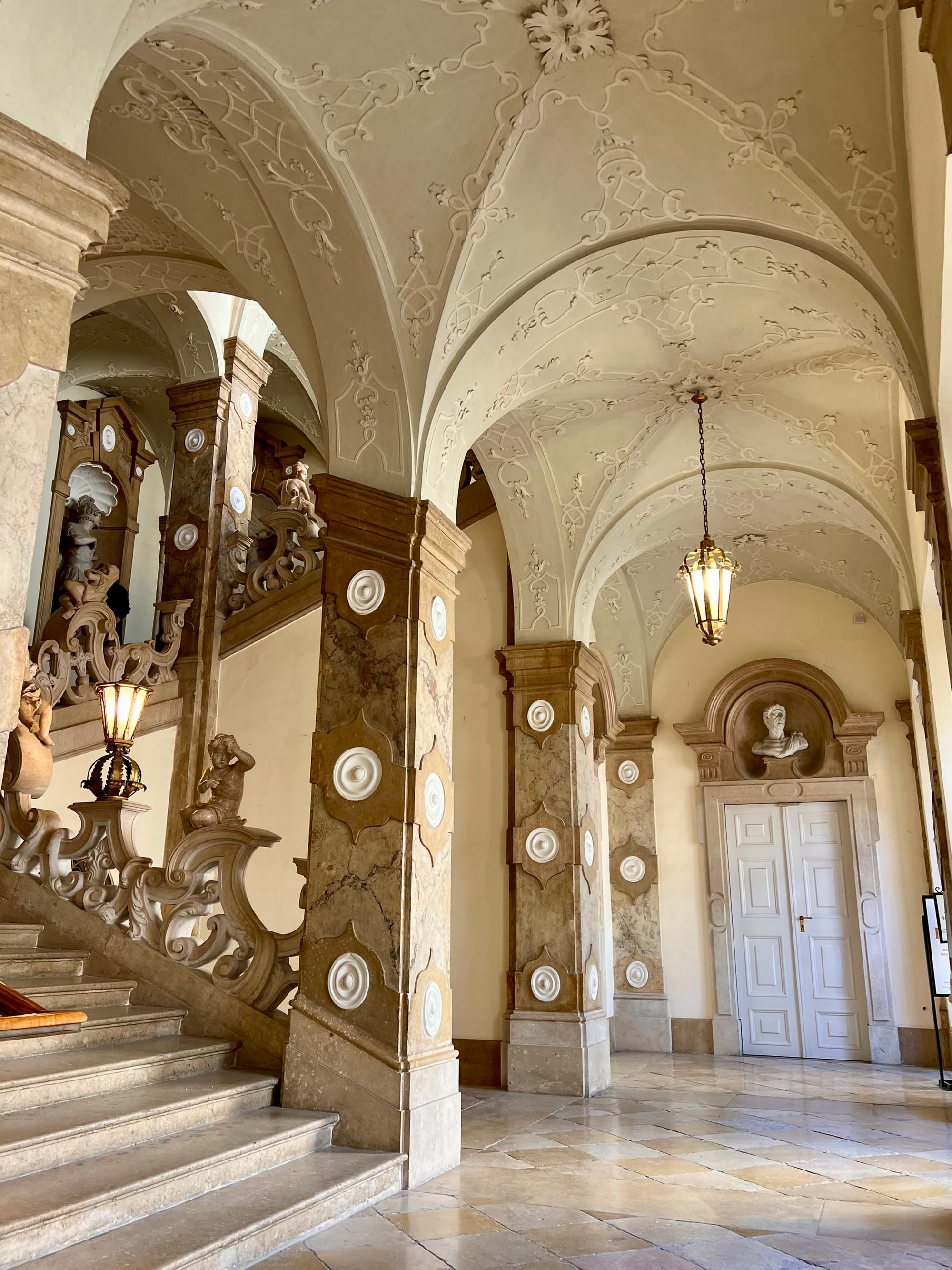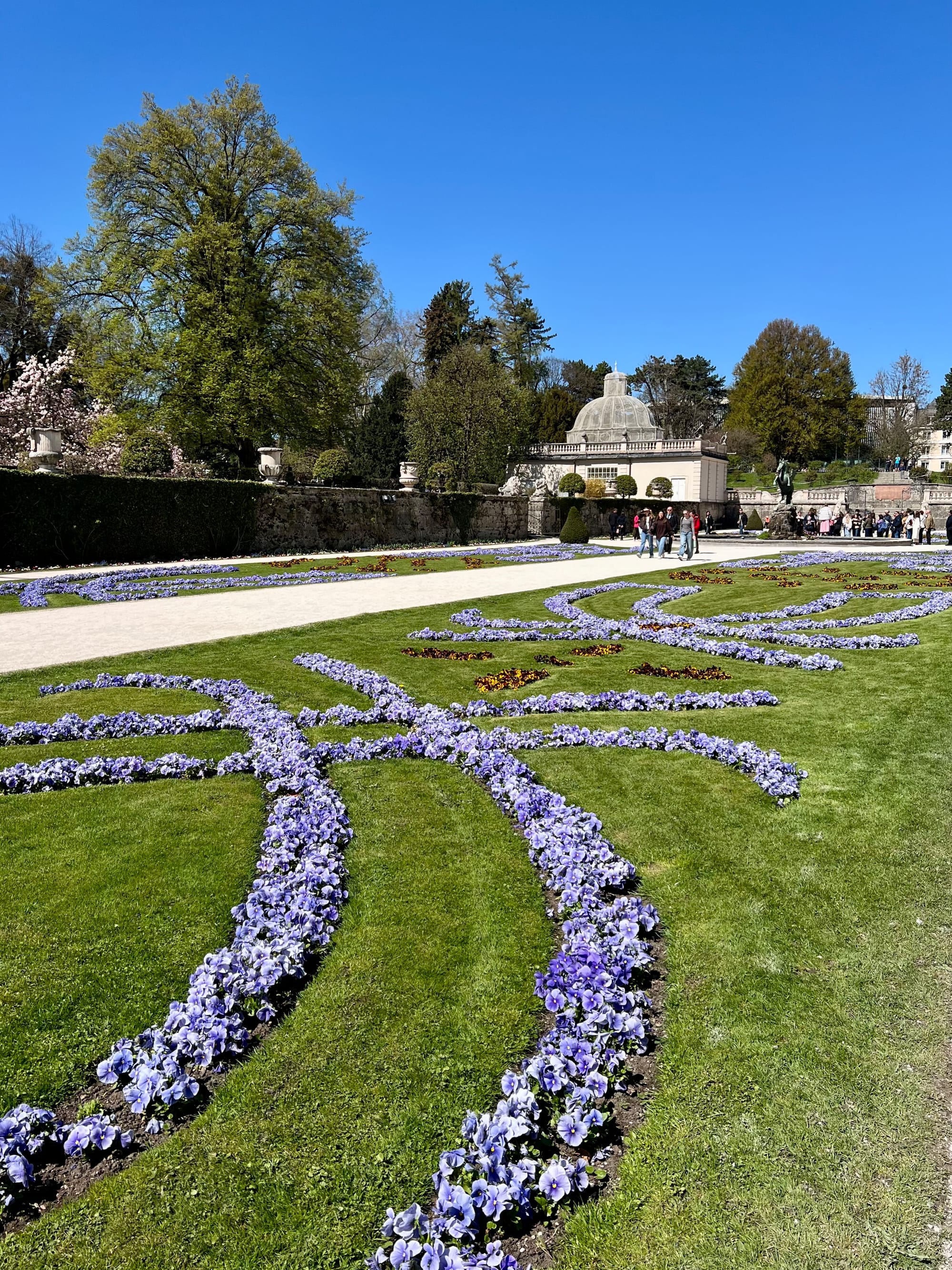 Dalej ciucholand Humana, który znam z Włoch, bo jest w prawie każdym większym mieście. A tutaj to dla mnie nowość; super bluzkę sobie kupiłam za pół darmo. Naprzeciw ogrody z palmiarnią i pałac Mirabell. W ogrodach zrobiliśmy sobie piknik z obowiązkową kulką Mozarta, a w pałacu można za darmo oglądać salę marmurowa. Cała reszta jest zajęta przez jakiś urząd.