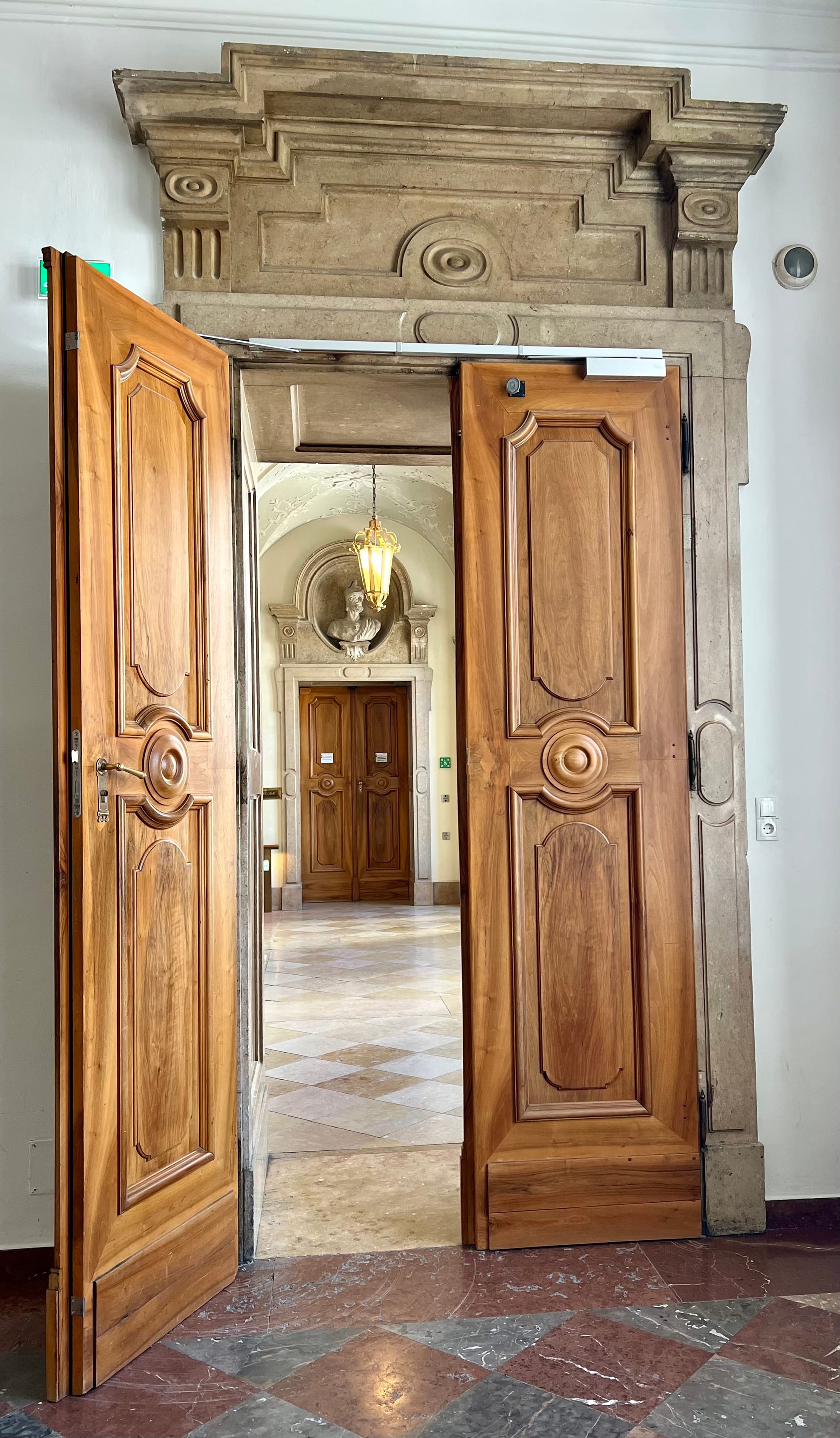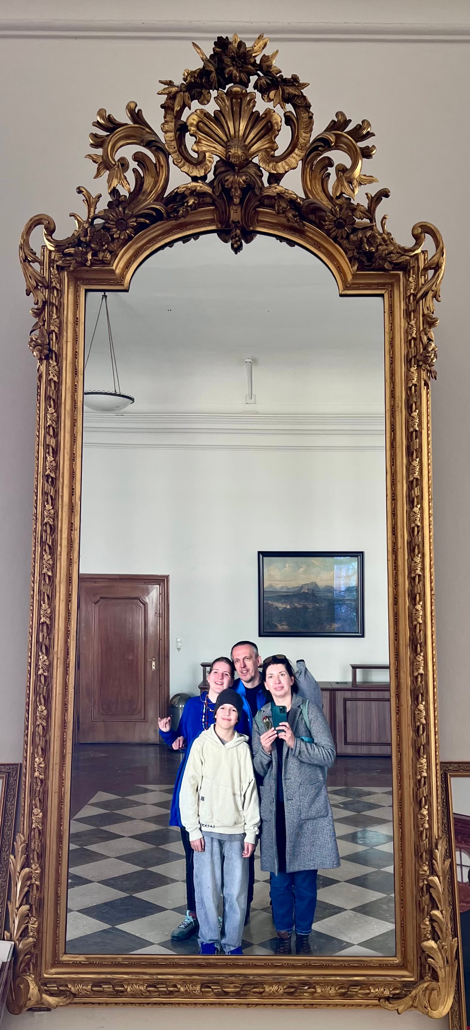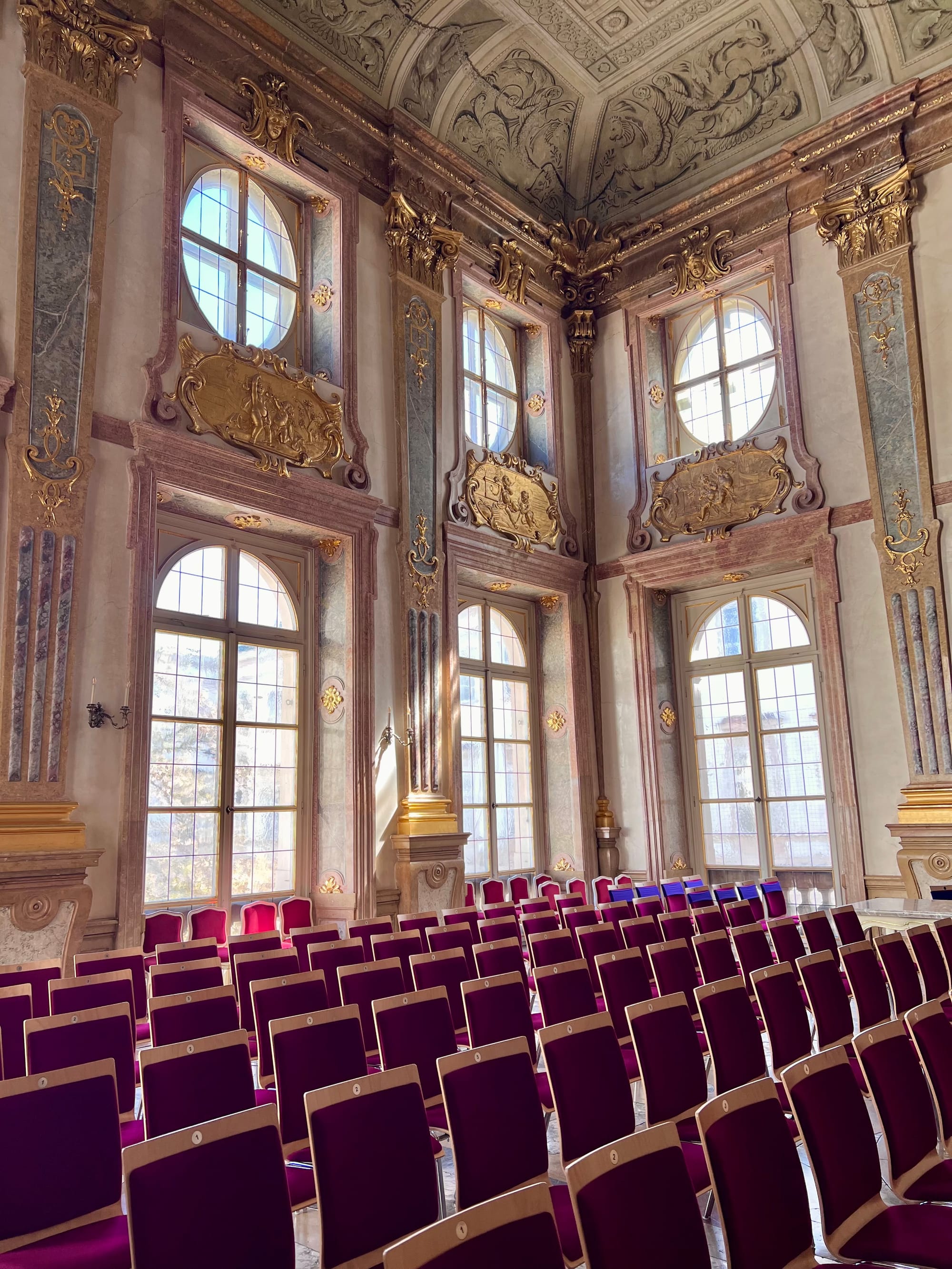 Dalej ciucholand Humana, który znam z Włoch, bo jest w prawie każdym większym mieście. A tutaj to dla mnie nowość; super bluzkę sobie kupiłam za pół darmo. Naprzeciw ogrody z palmiarnią i pałac Mirabell. W ogrodach zrobiliśmy sobie piknik z obowiązkową kulką Mozarta, a w pałacu można za darmo oglądać salę marmurowa. Cała reszta jest zajęta przez jakiś urząd.