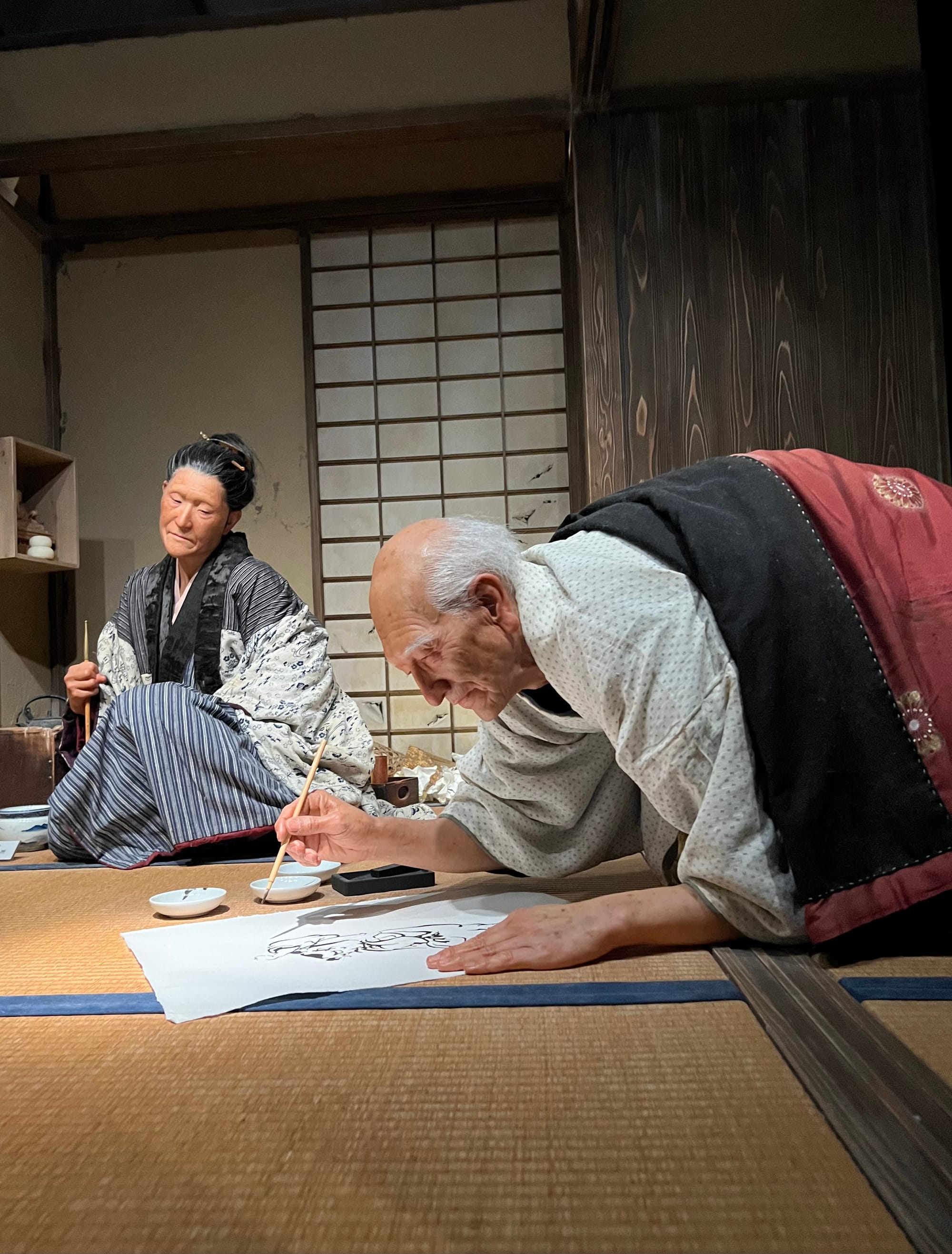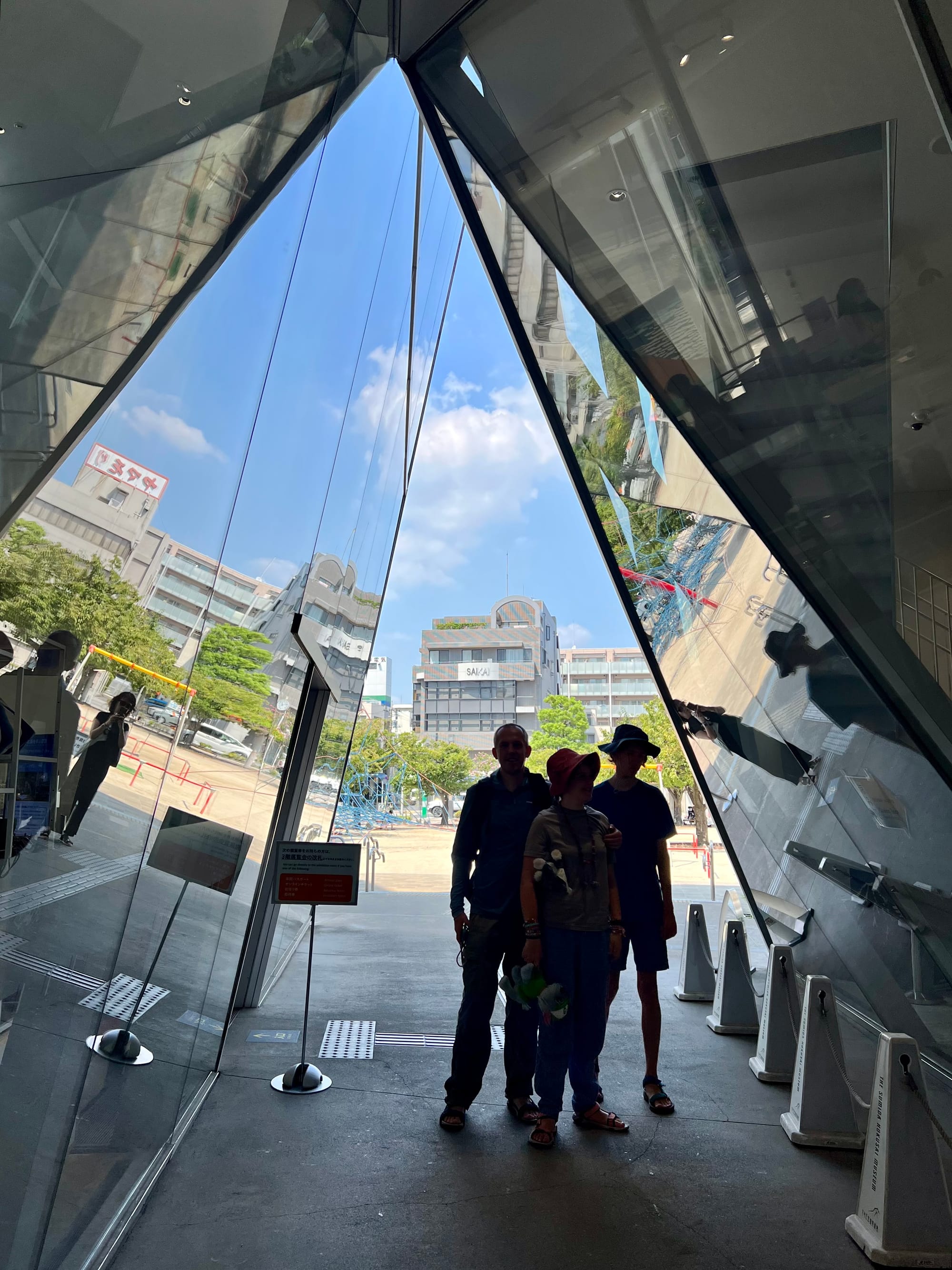 W kościele siedzą za nami biali ludzie i tak mi się zdaje, że słyszę Polski, ale facet po japońsku śpiewa. Dzieci jednak ich zdradziły: to Polacy byli! Ale jakoś niezbyt rozmowni, więc tylko krótka wymiana uprzejmości i poszliśmy dalej do muzeum Sumida Hokusai, tego, co malował fale i górę Fuji. Sam budynek jest już bardzo ładny, futurystyczny. I bez koszy na śmieci 😀