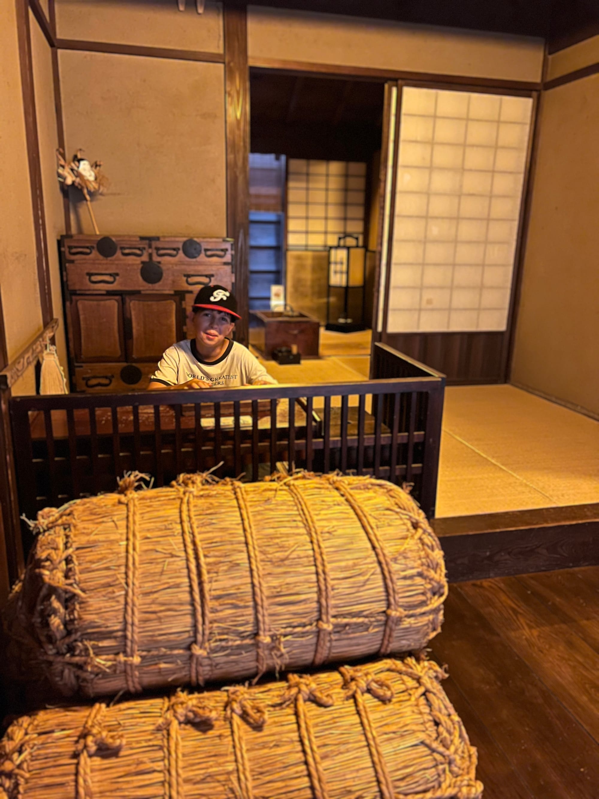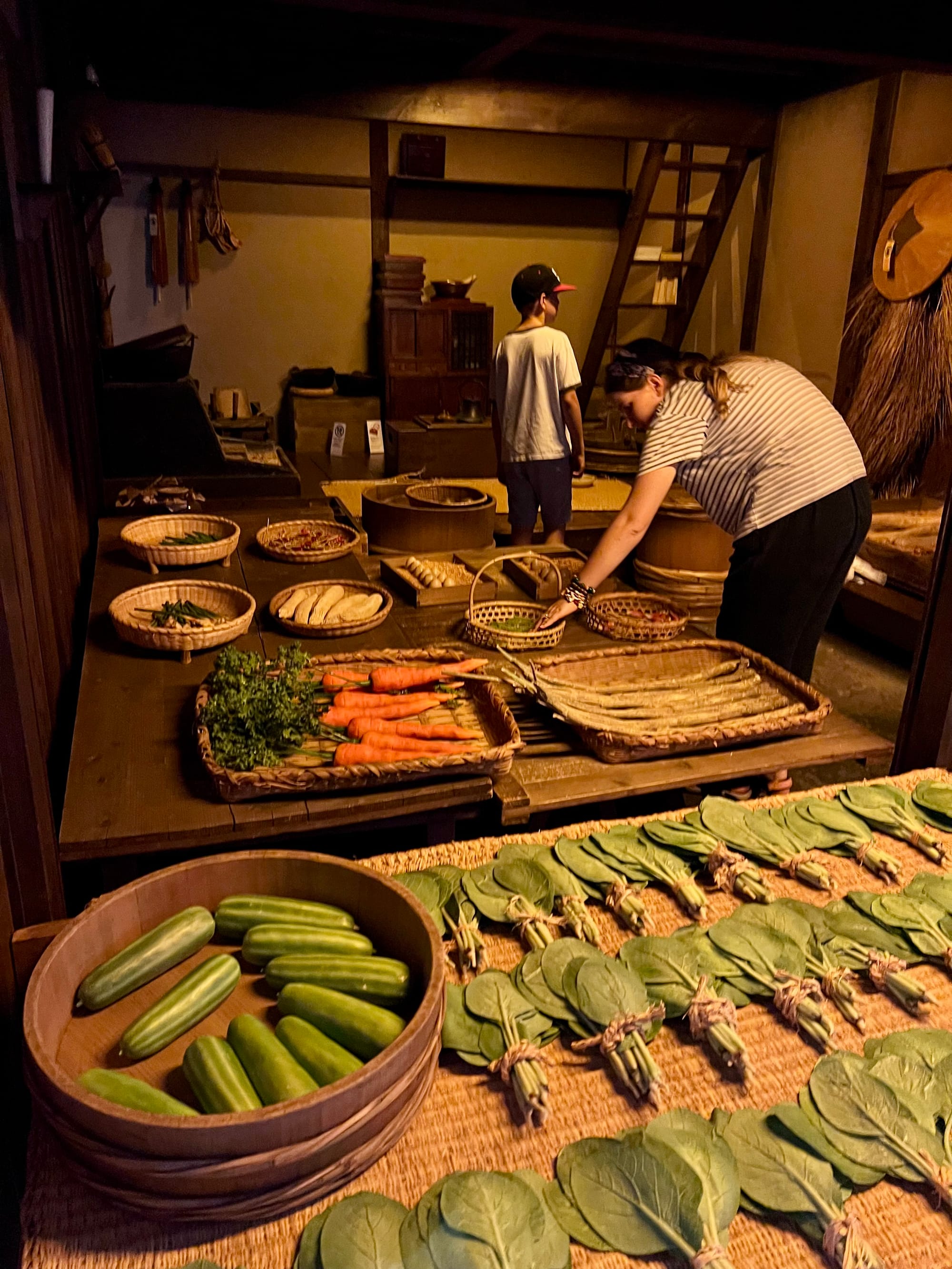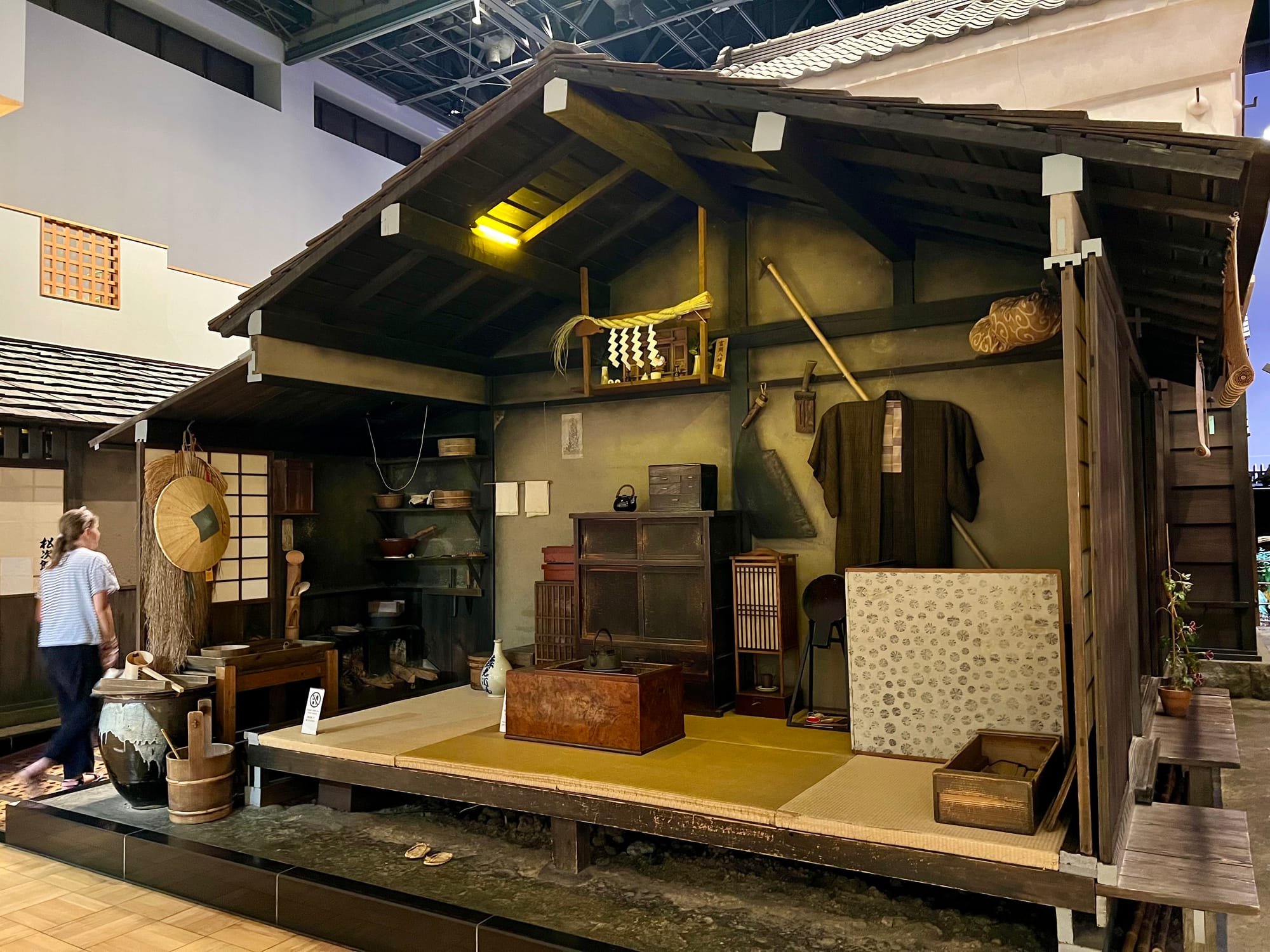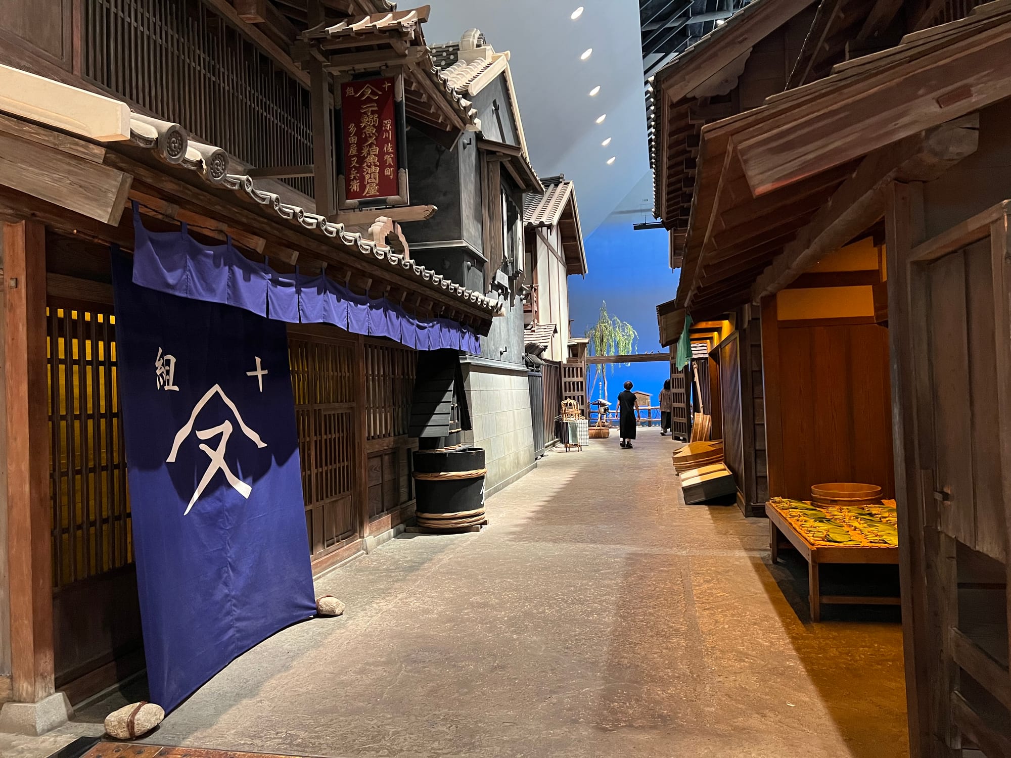Najpierw pojechaliśmy na stację zamknąć bagaże w szafkach, żeby się z nimi nie tarabanic przez gorące Tokyo. Dalej wszystko już było mniej więcej w tej samej okolicy. Na początek muzeum Edo, czyli dawnego Tokyo (jeszcze przed 160 laty Tokyo nazywało się Edo). Jest to niewielkie muzeum, ale bardzo ciekawie zrobione, bo w wielkiej hali jest po prostu zbudowane całe miasteczko. Można wejść do każdego domu, dotykać, sprawdzać. Jeszcze zmieniają się pory dnia i pogoda 😀