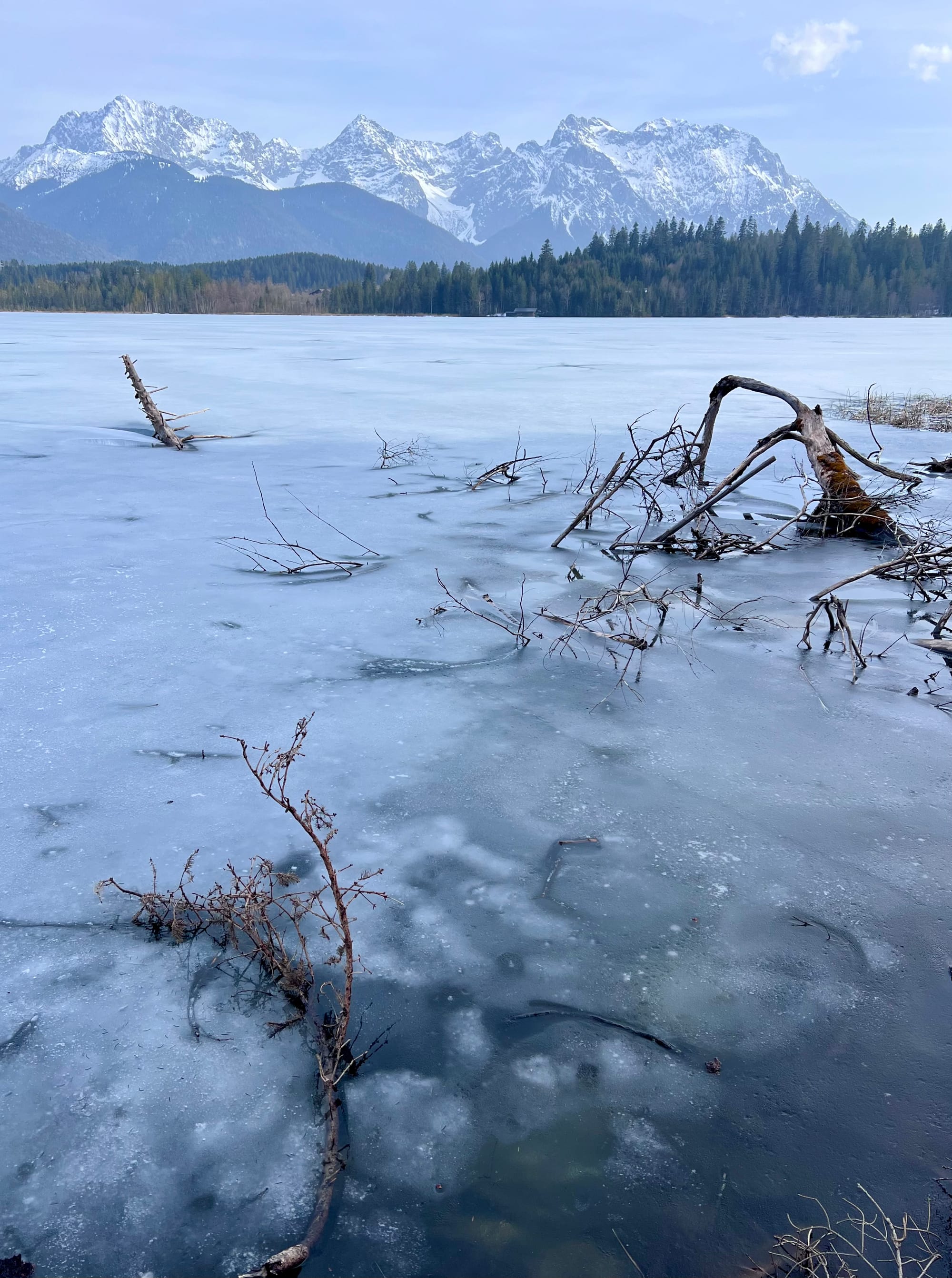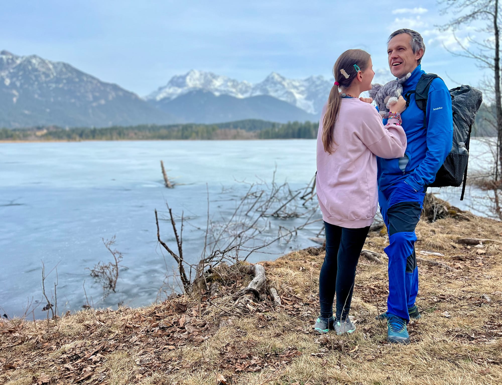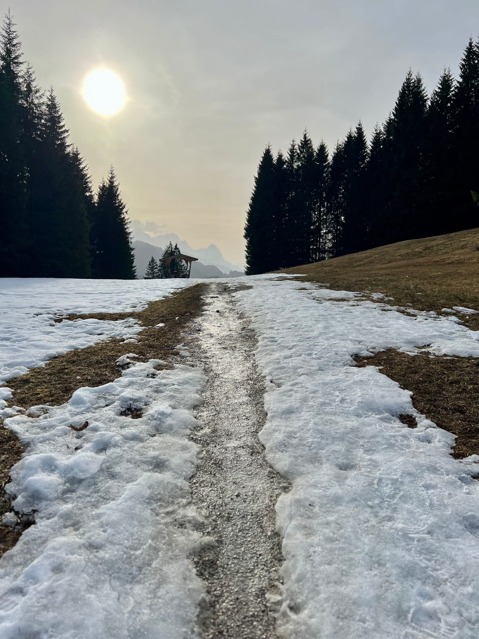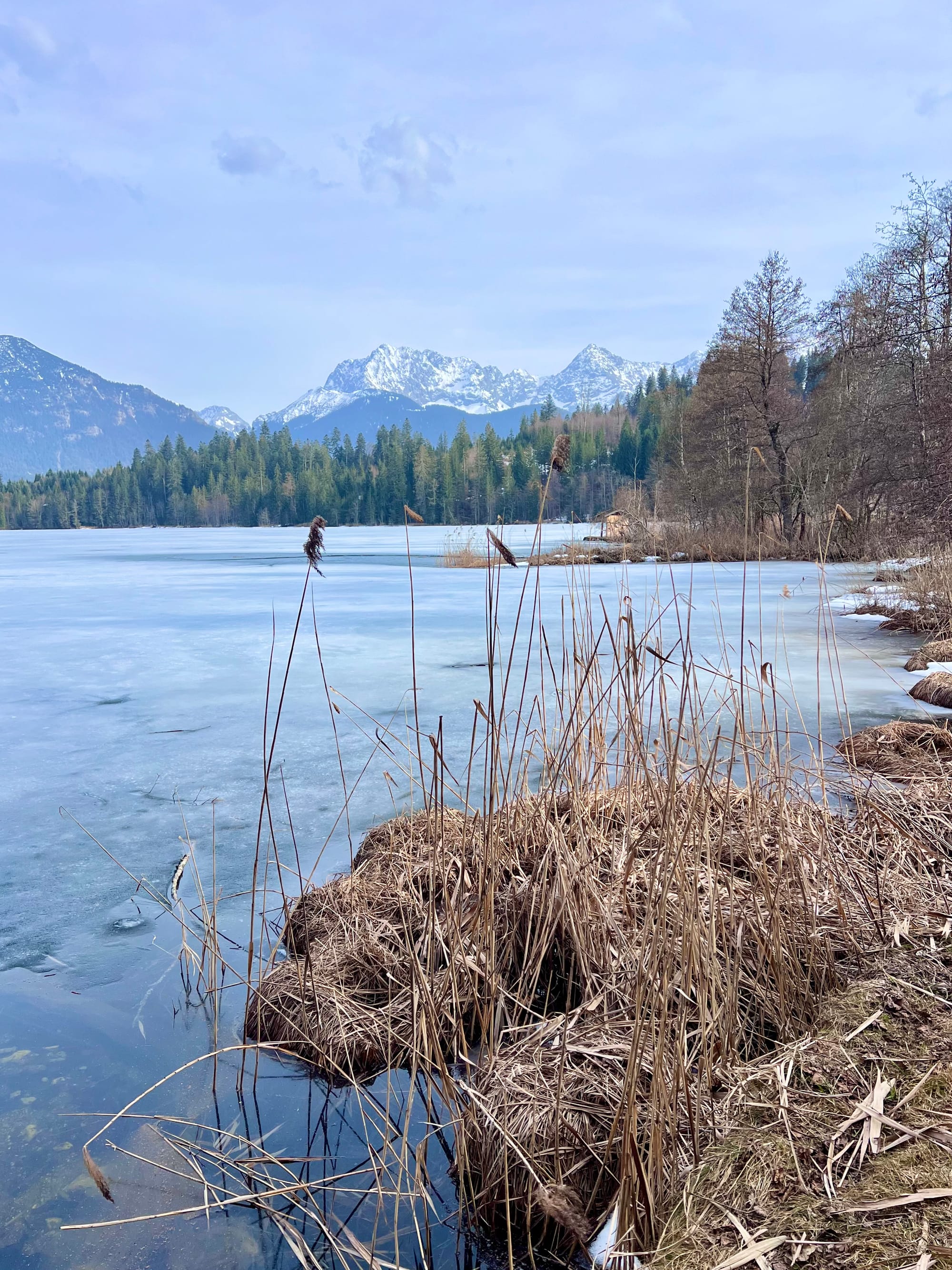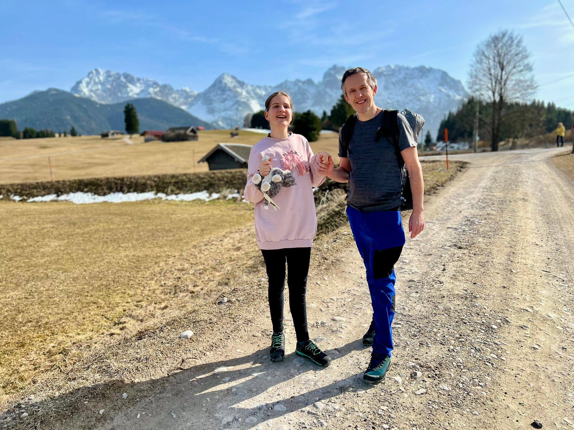Internet mnie oszukał i zapewnił, że na alpejskich łąkach już kwitną krokusy. Pojechaliśmy w okolice Krün na spacer dookoła trzech jezior. Były pierwsze kwiatki, było słońce i śnieg, i nawet rzymska droga była, ale ani jednego krokusa. Ale i tak warto było, bo to spacer po płaskim z widokami wysokogórskimi.