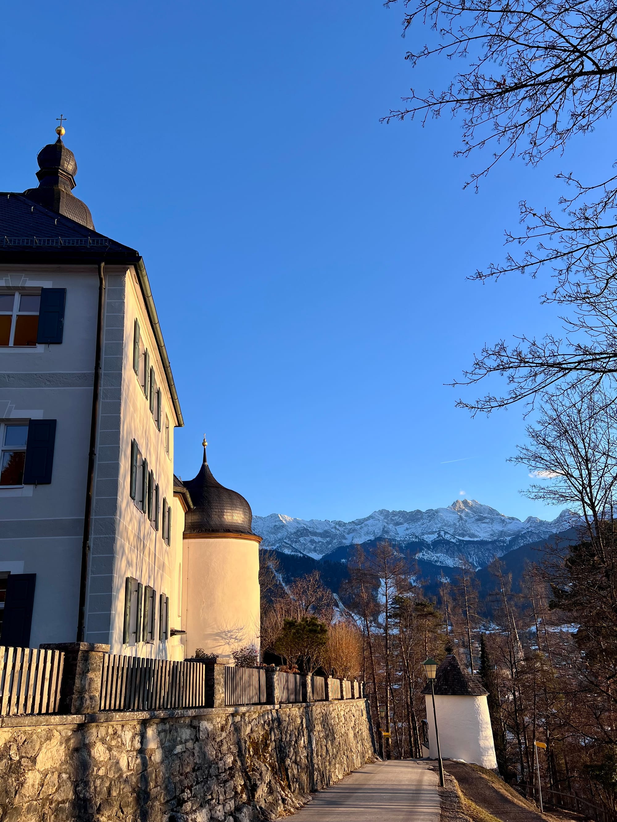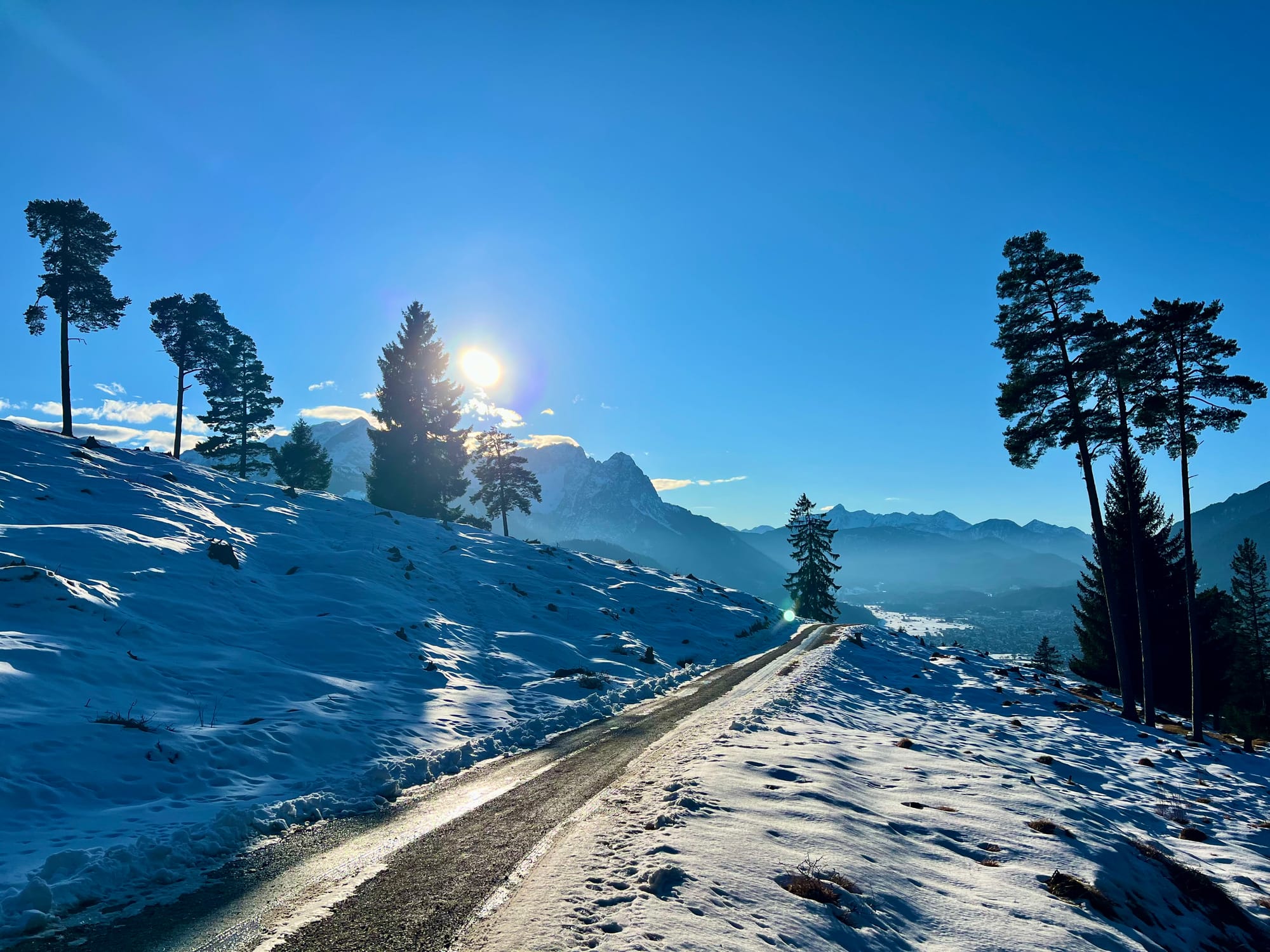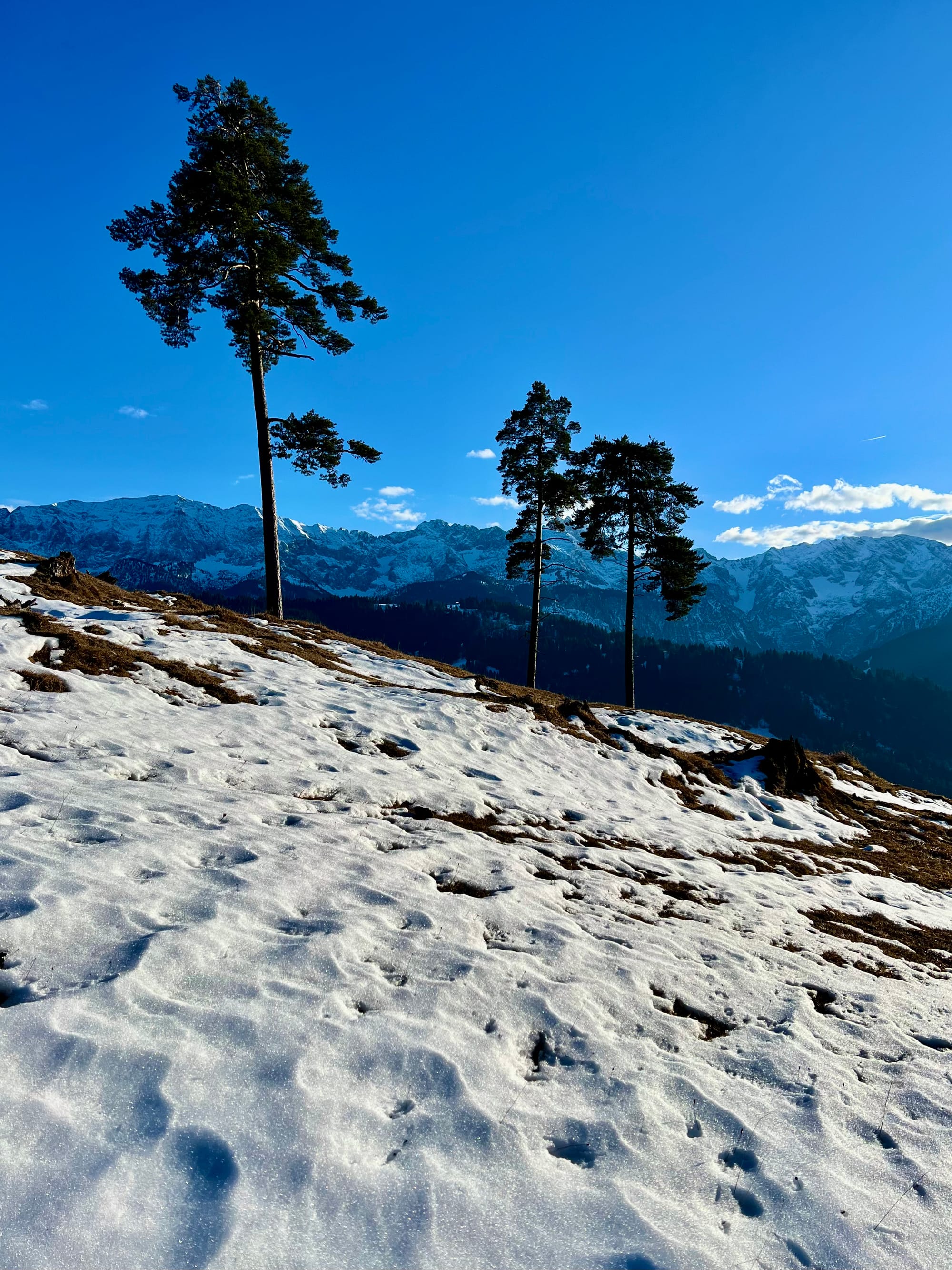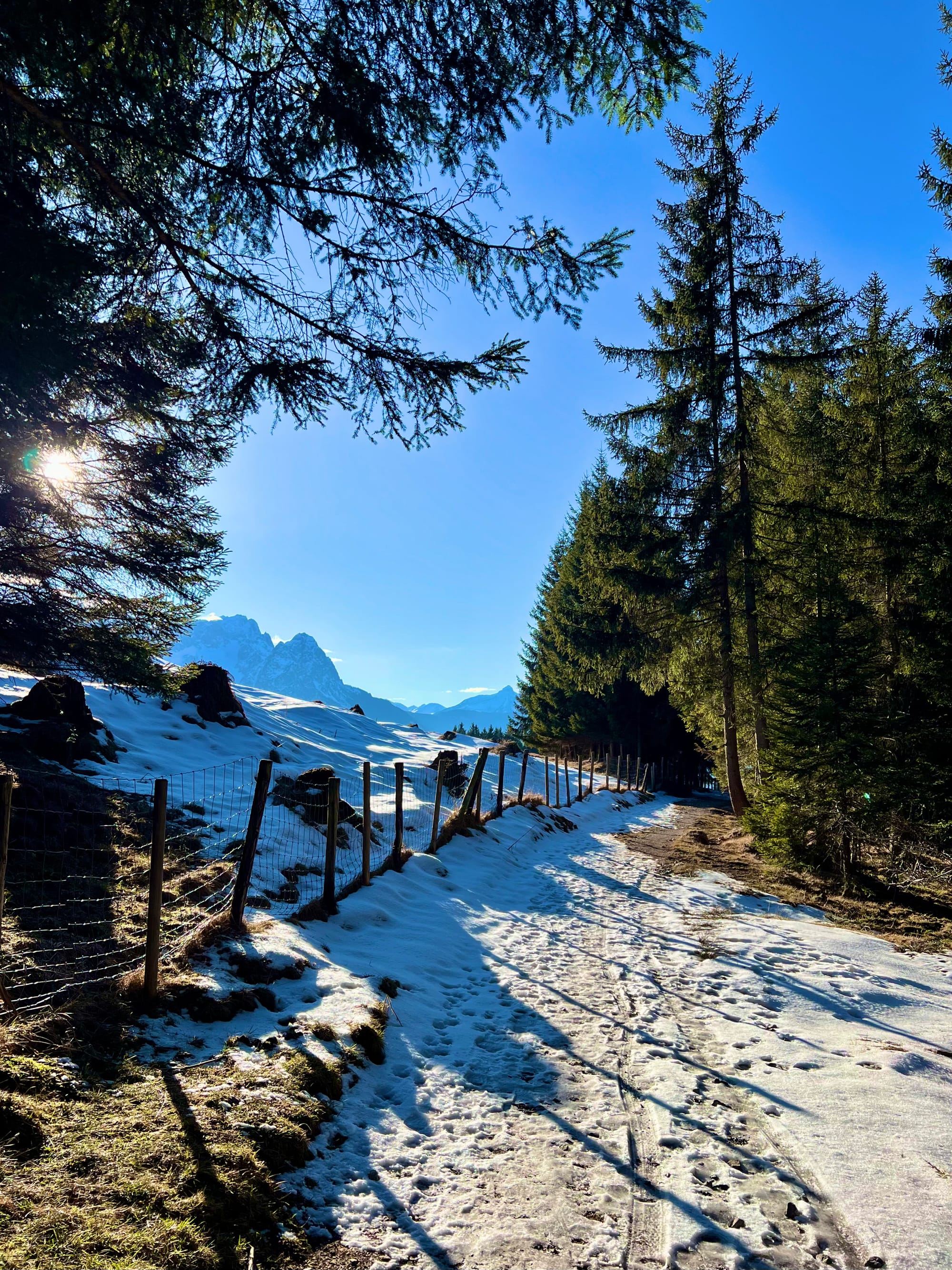 Było tak, jak zapowiadali: rano mżawka na pierwszym podejściu sam lód, no koniec świata. Ale im wyżej wychodziłam, tym lepsza pogoda się robiła. W końcu wyszło słońce! Podejście długie i strome, ale widoki na pierwszym szczycie (Eckenberg) były tego warte. Przeszłam dalej na Wank i tam zrobiłam dłuższy prostuj z grochówka z termosika. Najlepsza część: na górze był jeden facet tylko, ale akurat szykował się do zejścia. Cała góra dla mnie 😀 a wokol słońca pojawiła się tęcza!