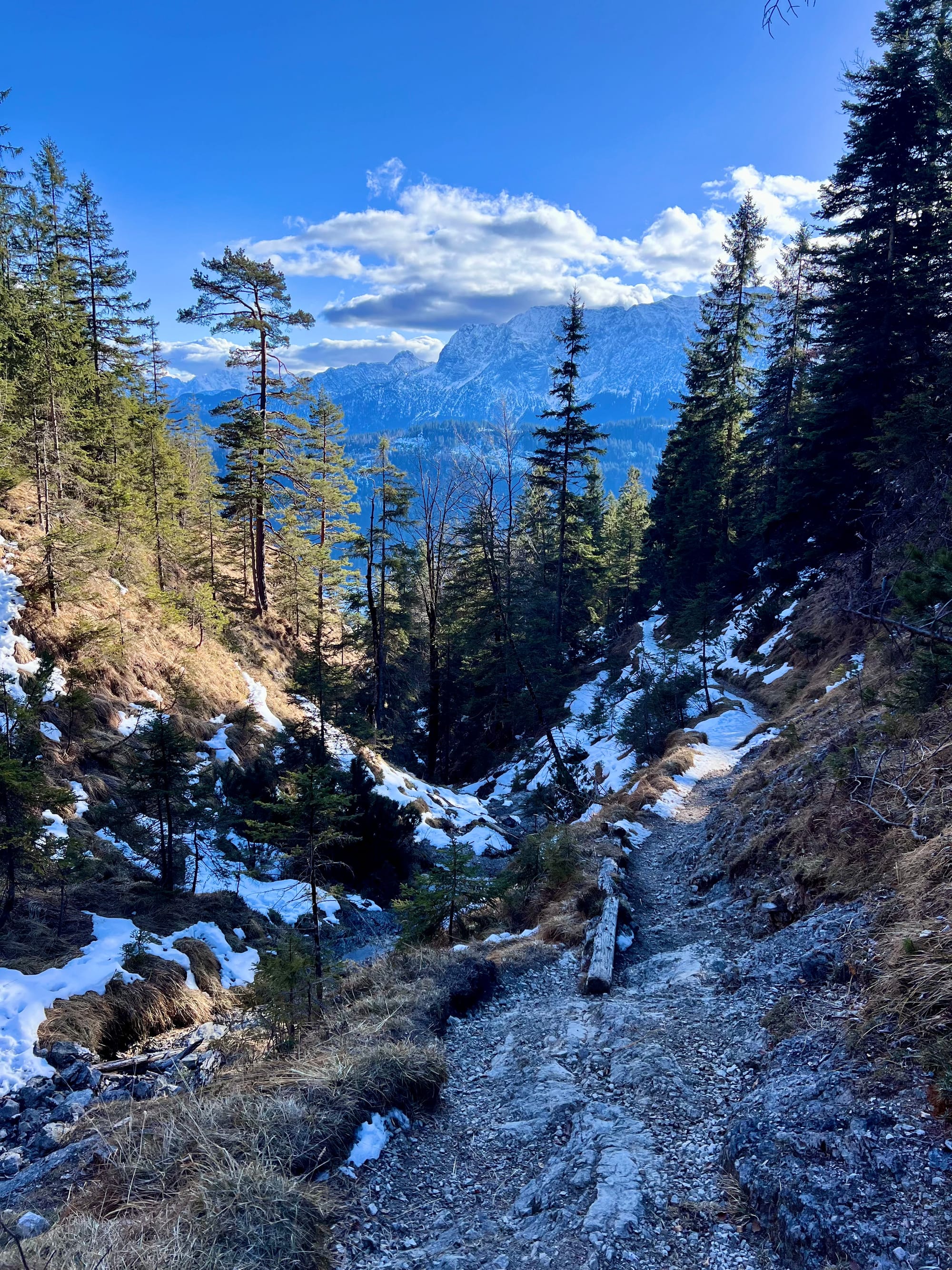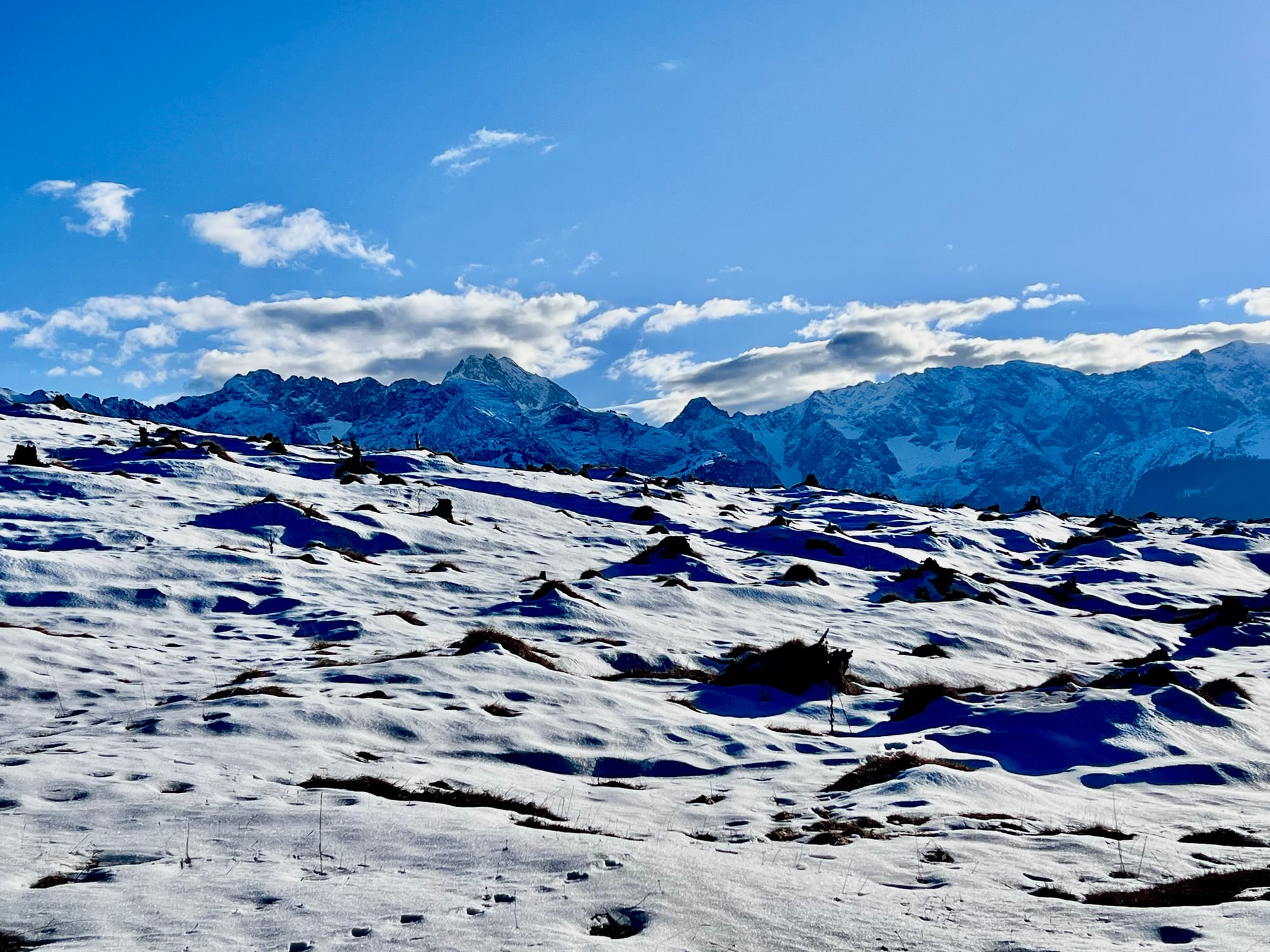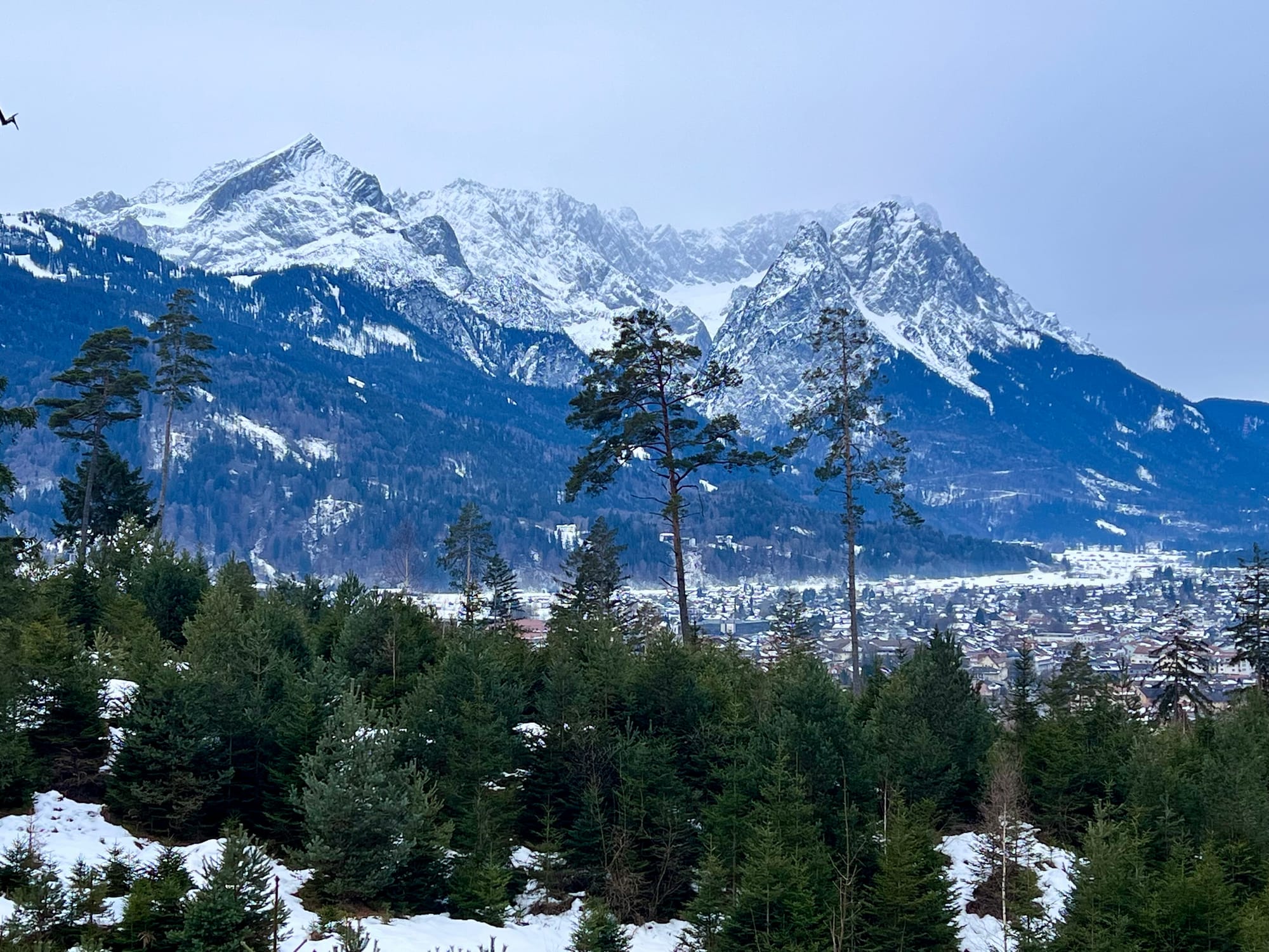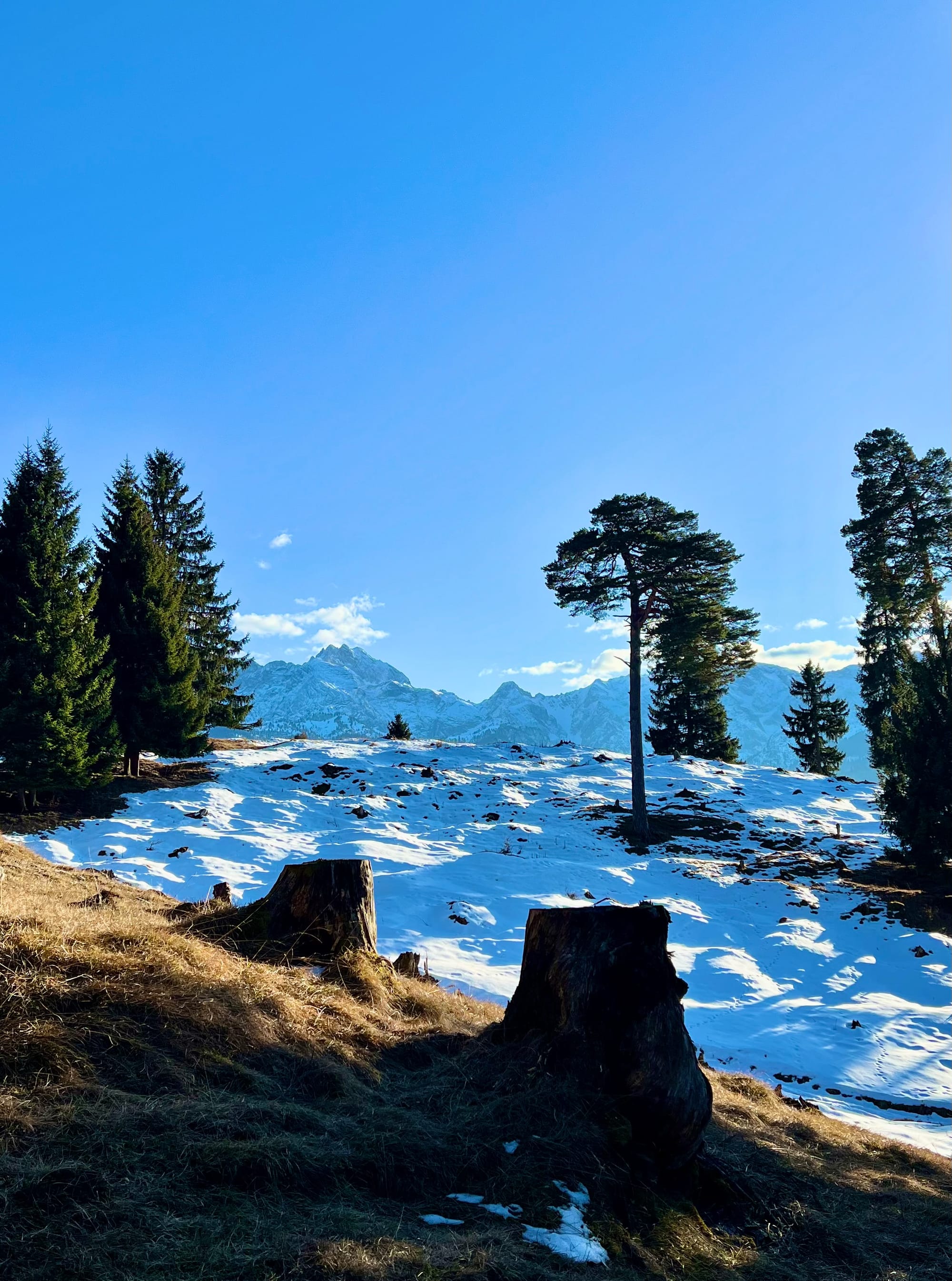 Było tak, jak zapowiadali: rano mżawka na pierwszym podejściu sam lód, no koniec świata. Ale im wyżej wychodziłam, tym lepsza pogoda się robiła. W końcu wyszło słońce! Podejście długie i strome, ale widoki na pierwszym szczycie (Eckenberg) były tego warte. Przeszłam dalej na Wank i tam zrobiłam dłuższy prostuj z grochówka z termosika. Najlepsza część: na górze był jeden facet tylko, ale akurat szykował się do zejścia. Cała góra dla mnie 😀 a wokol słońca pojawiła się tęcza!